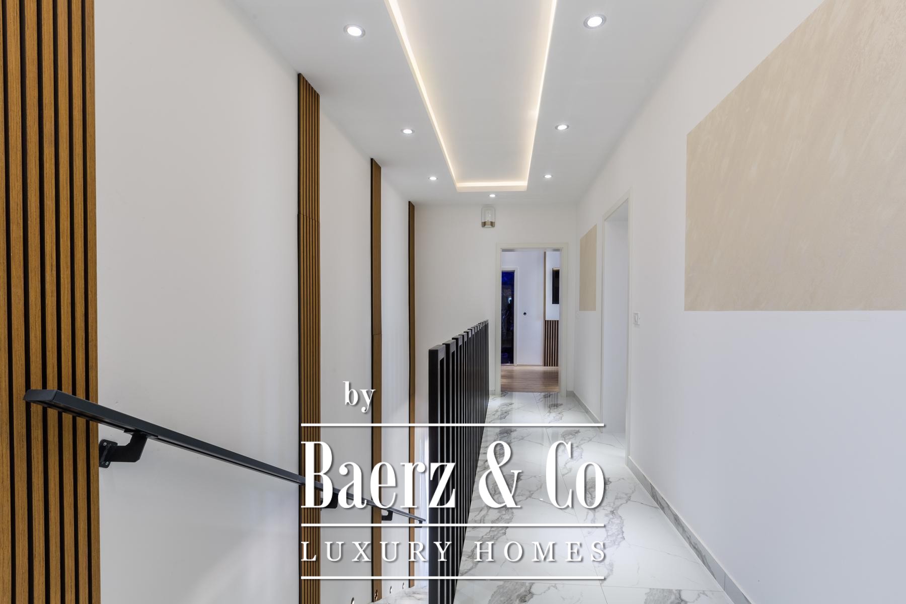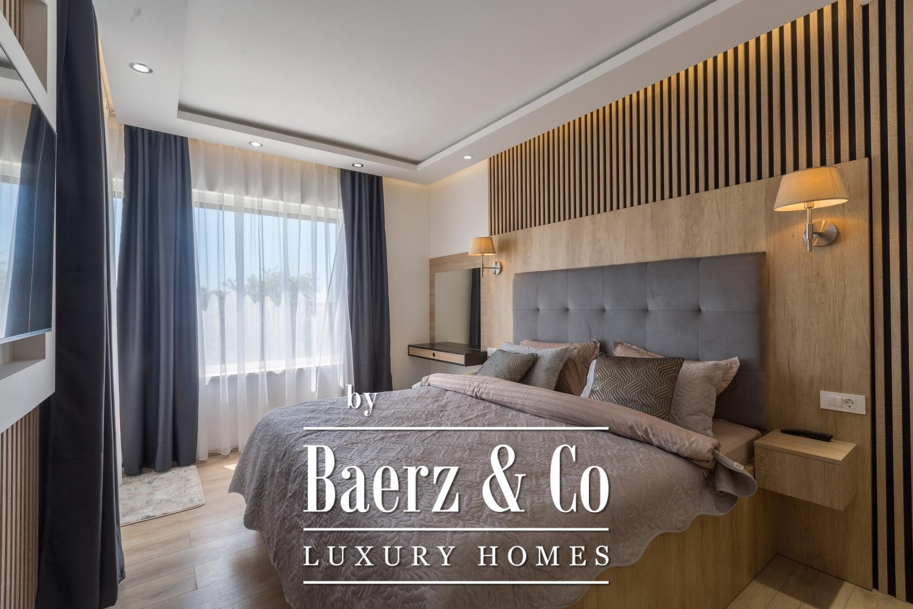 Medulin, one of the most prestigious tourist destinations on the southwestern coast of Istria, where this extraordinary, modern villa awaits, setting new standards of luxury and comfort. Situated on a 450 m2 plot, this meticulously designed new construction from 2024 spans an impressive 200 m2 of net usable area across two levels, offering a perfect blend of sophisticated design and functionality. The proximity of just 400 meters from the sea and beautiful beaches ensures easy access to the crystal-clear Adriatic, while its south orientation guarantees abundant sunlight throughout the day.Upon entering the ground floor of the villa, you will immediately be captivated by the spaciousness and open-plan concept that seamlessly connects the indoor and outdoor living areas. The contemporarily equipped kitchen, featuring the latest appliances and elegant lines, forms the heart of the home, perfect for preparing gastronomic delights. It naturally flows into the opulent living room, bathed in natural light filtering through large glass walls. These expansive glass surfaces not only provide a magnificent view of the meticulously landscaped exterior but also offer direct access to the covered terrace and the main highlight of the outdoor space - an impressive swimming pool.The outdoor area is a true oasis of peace and relaxation. The swimming pool, surrounded by a high stone wall from which a calming waterfall cascades, creates a unique ambiance. Carefully selected green foliage dominates the entire courtyard, creating the impression of a tropical garden that perfectly blends with the villa's architecture, imbuing it with warmth and natural charm. Adjacent to the pool, there is a summer kitchen and a barbecue area, ideal for gatherings and enjoying Mediterranean evenings under the stars. The entire exterior is designed with the aim of providing maximum privacy and relaxation, inviting you to carefree enjoyment in a luxurious setting.An internal staircase, a masterpiece of modern design and lighting, leads you to the upper floor of the villa. Specially designed lighting, subtly highlighted in the evenings, creates an atmosphere of warmth and elegance