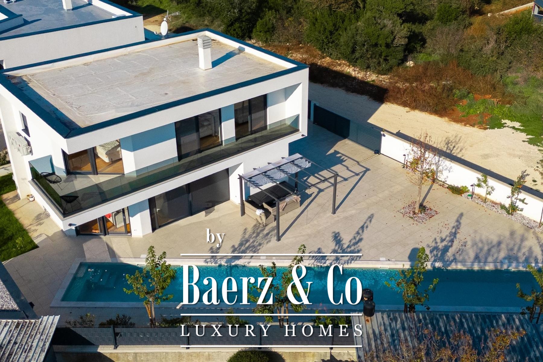 Outdoors, a 4 by 4 meter pergola, summer kitchen, barbecue, and video surveillance invite relaxed gatherings and comfort, while smart home systems and parking for three to four vehicles ensure convenience and security. Modern villa Medulin stands as an exceptional offering for those seeking a luxurious residence or investment in a serene coastal setting.