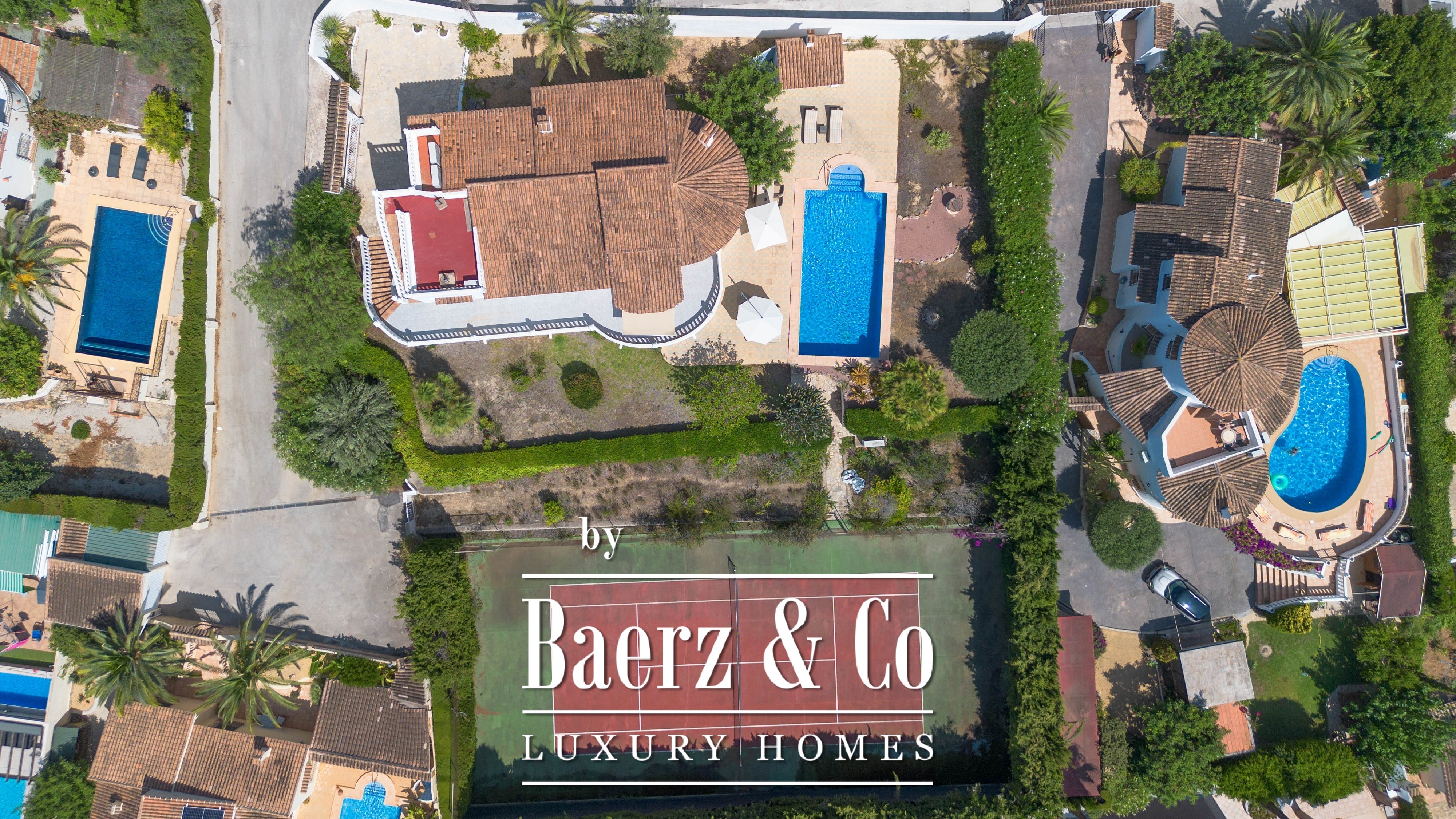 An additional highlight is the double plot, which currently features a private tennis court. This extra space offers numerous possibilities: build a second home, a guesthouse, a pool house, or an additional garage—the options are endless.