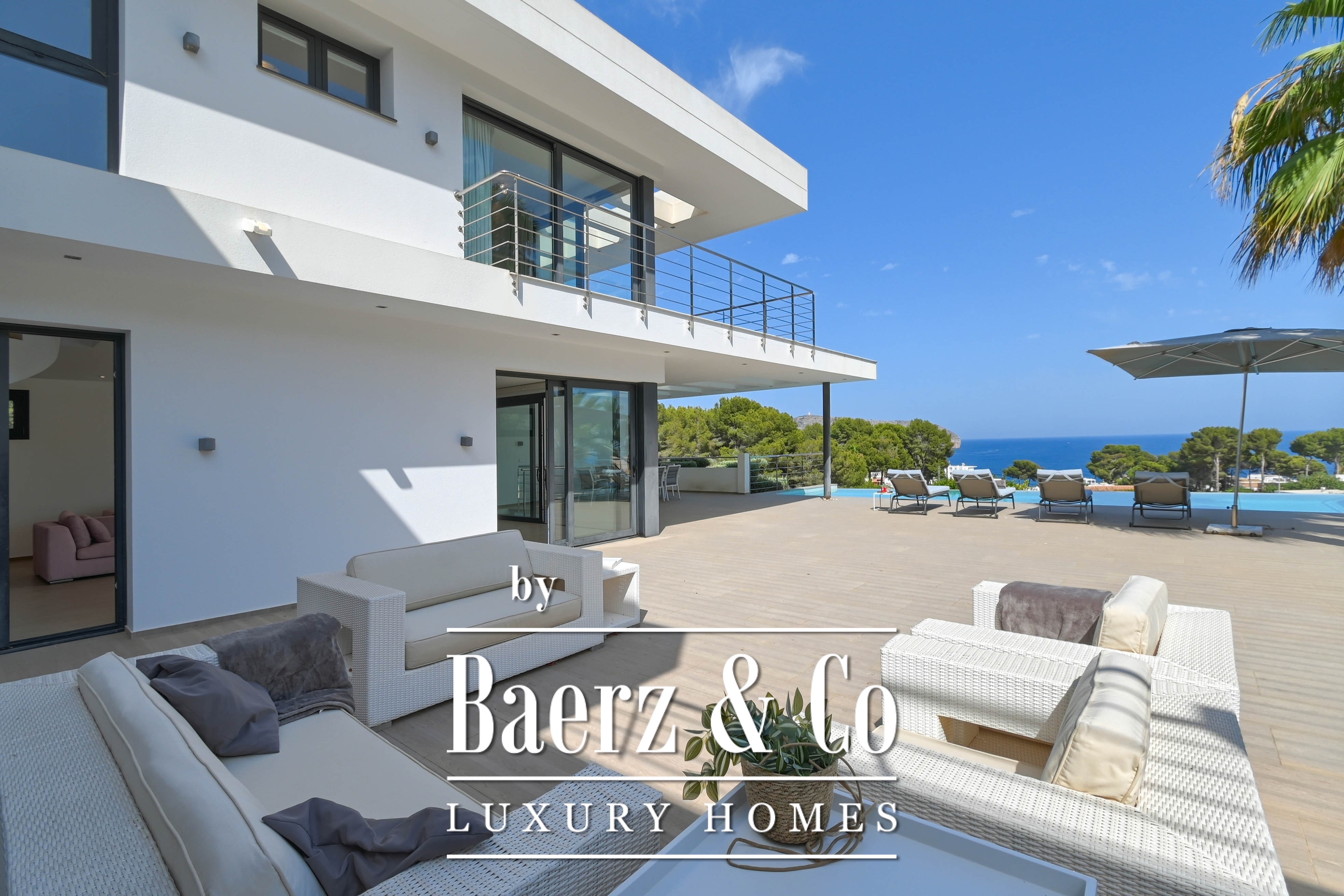 Just a short walk from the beach and the charming restaurants of Moraira, discover this modern villa with breathtaking sea views