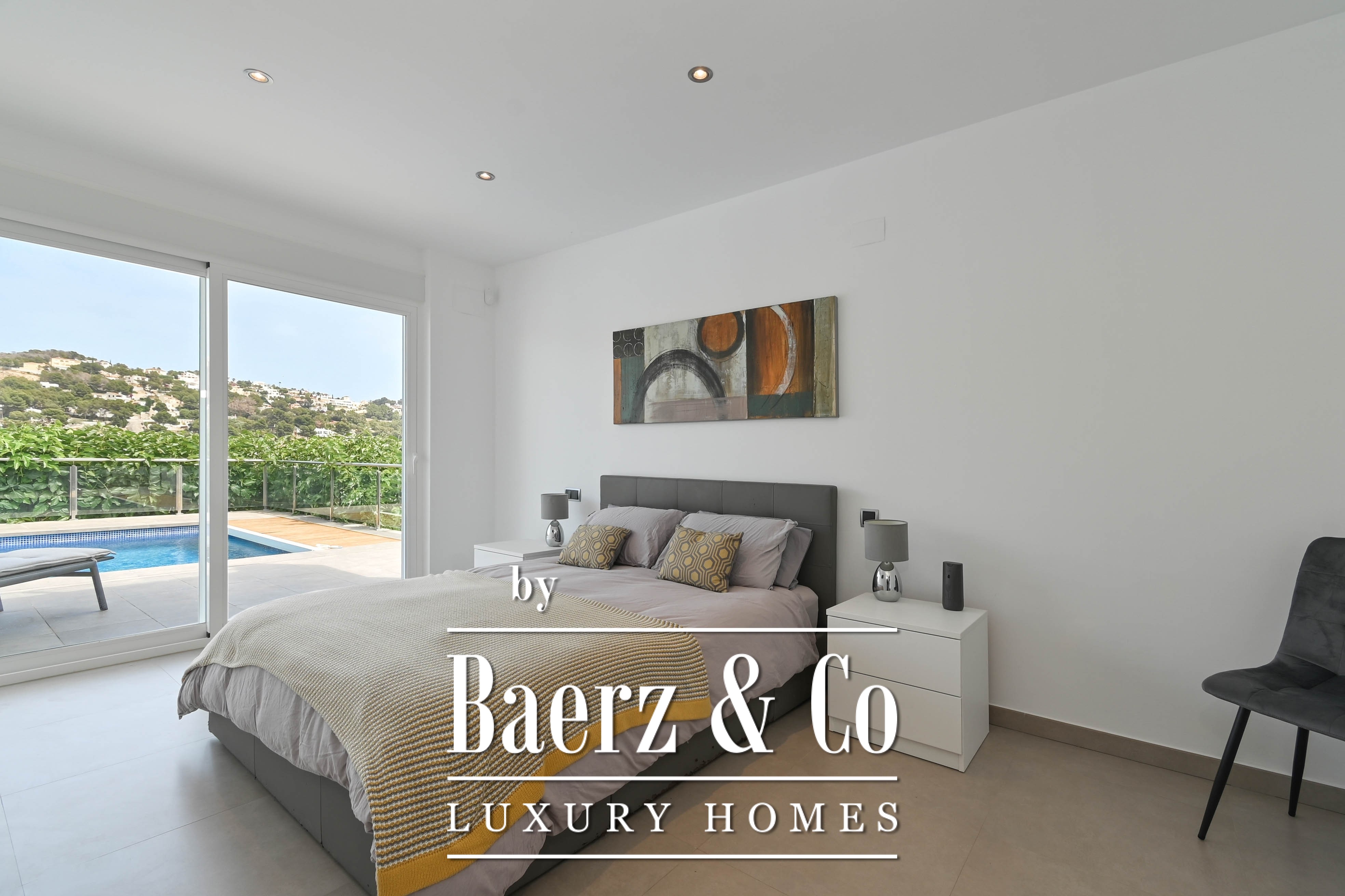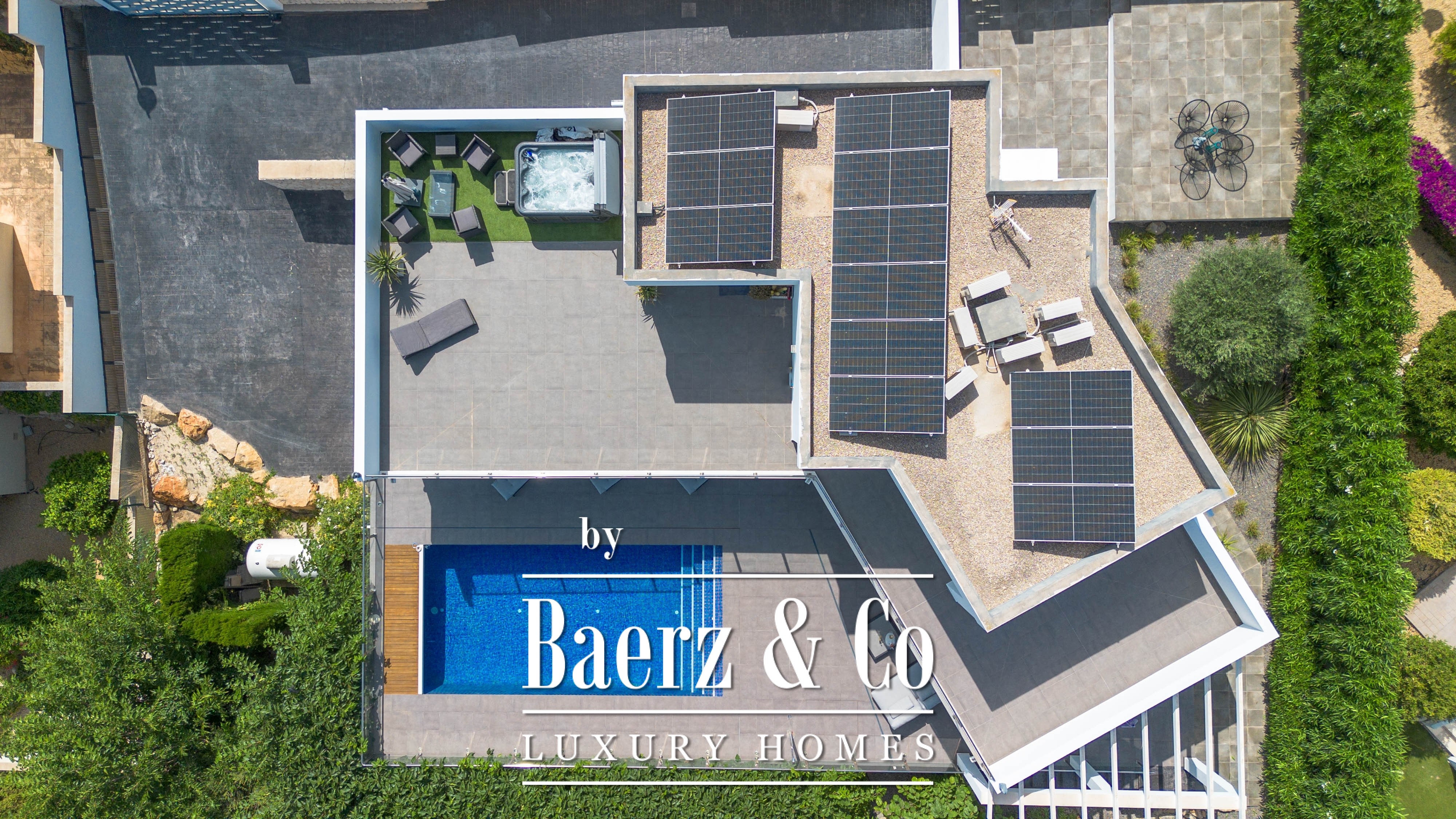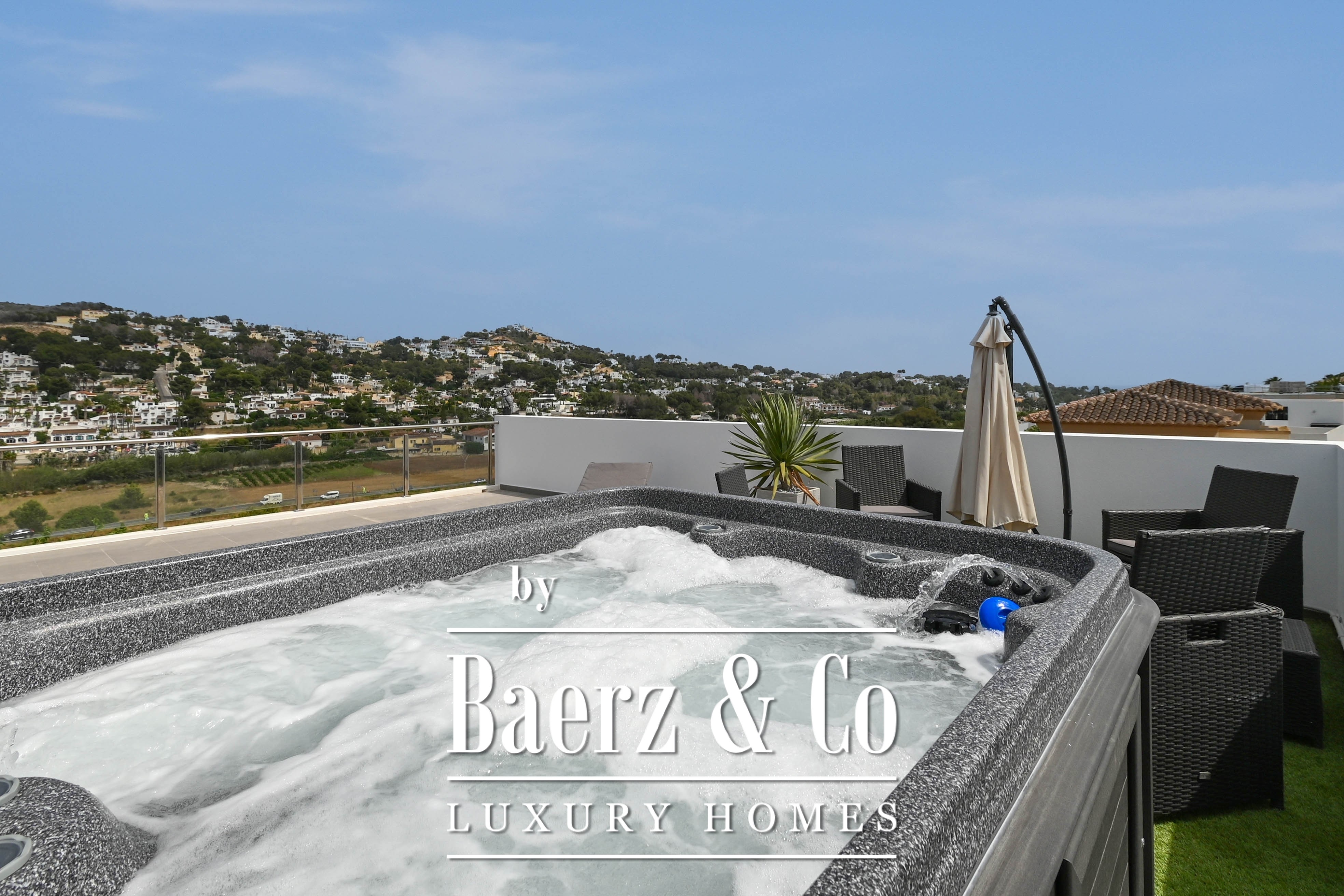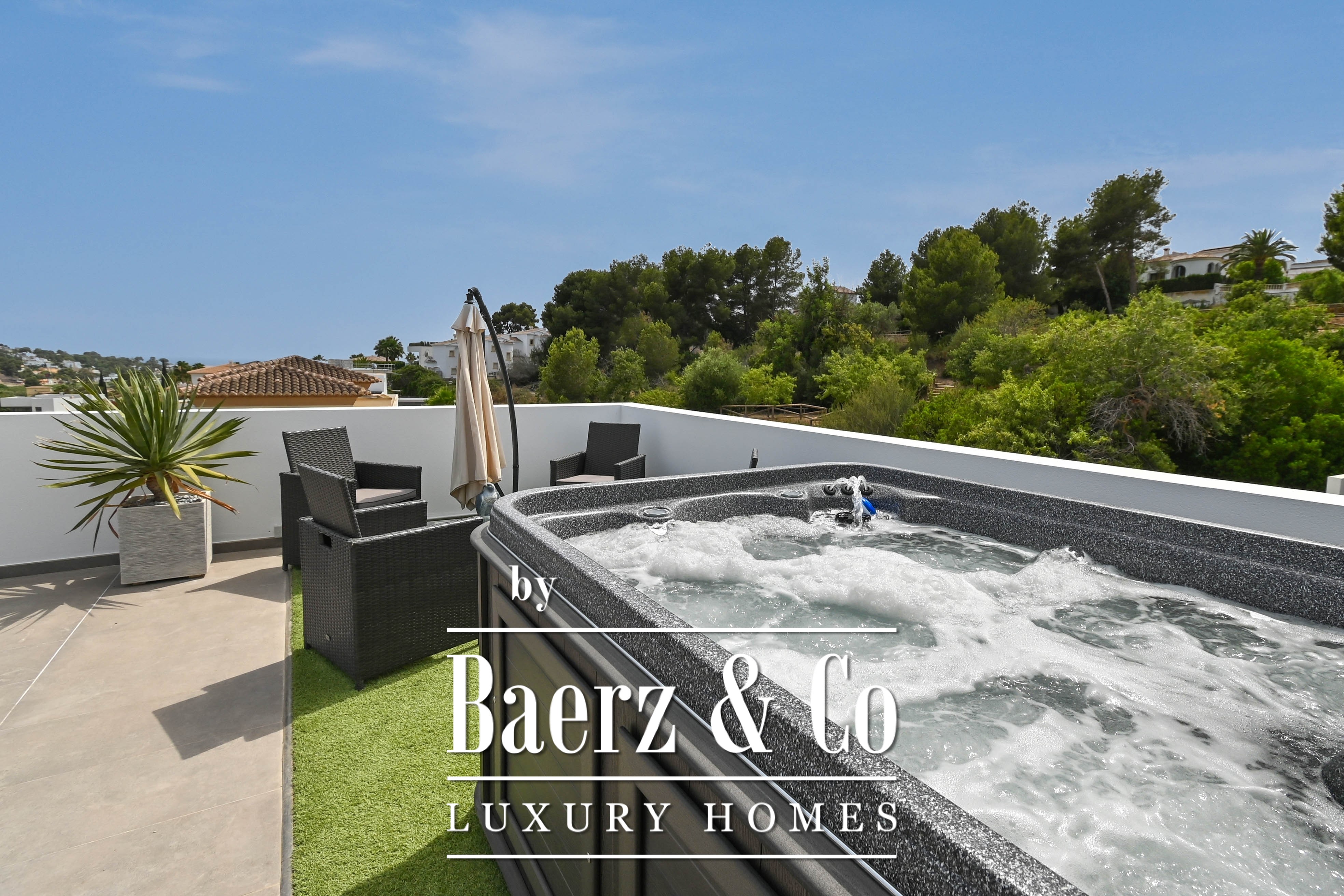 The villa offers five bedrooms. There are three fully equipped bathrooms, designed with attention to detail. The master suite on the first floor has direct access to a spacious sun terrace where you can relax in your own private jacuzzi.
