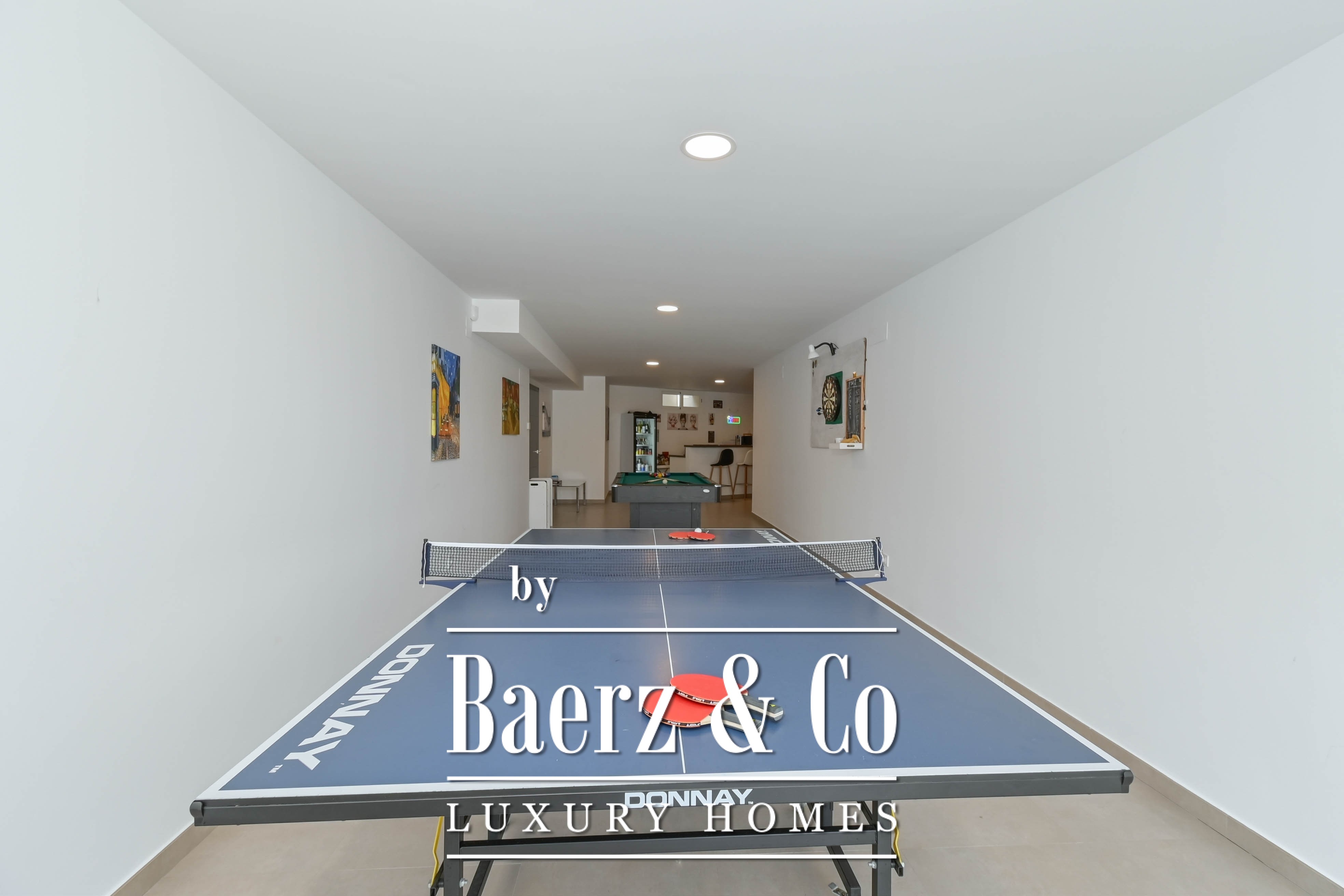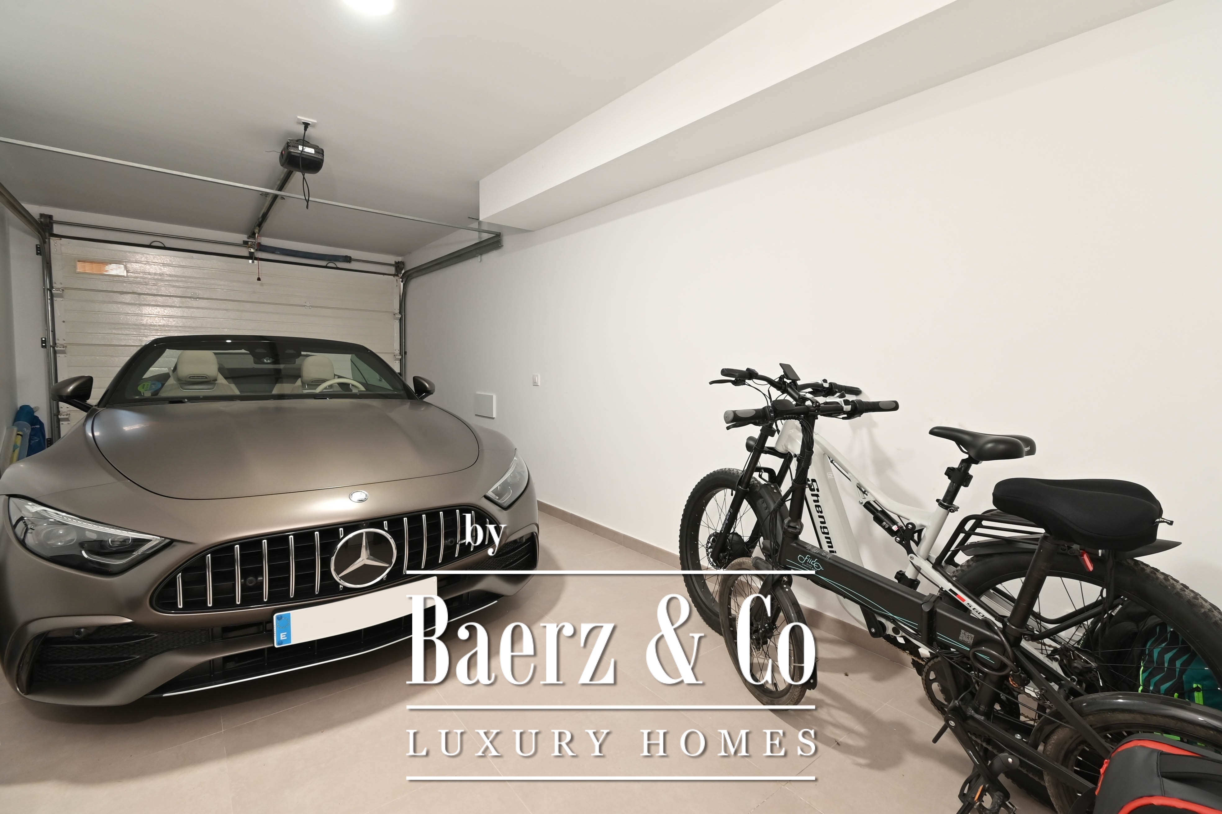 On the lower level, a pleasant surprise awaits: a stylish leisure area, currently set up as a bar – ideal for cosy evenings or as a hobby room. A fitness area is also an option. The spacious garage provides room for one car as well as additional storage.