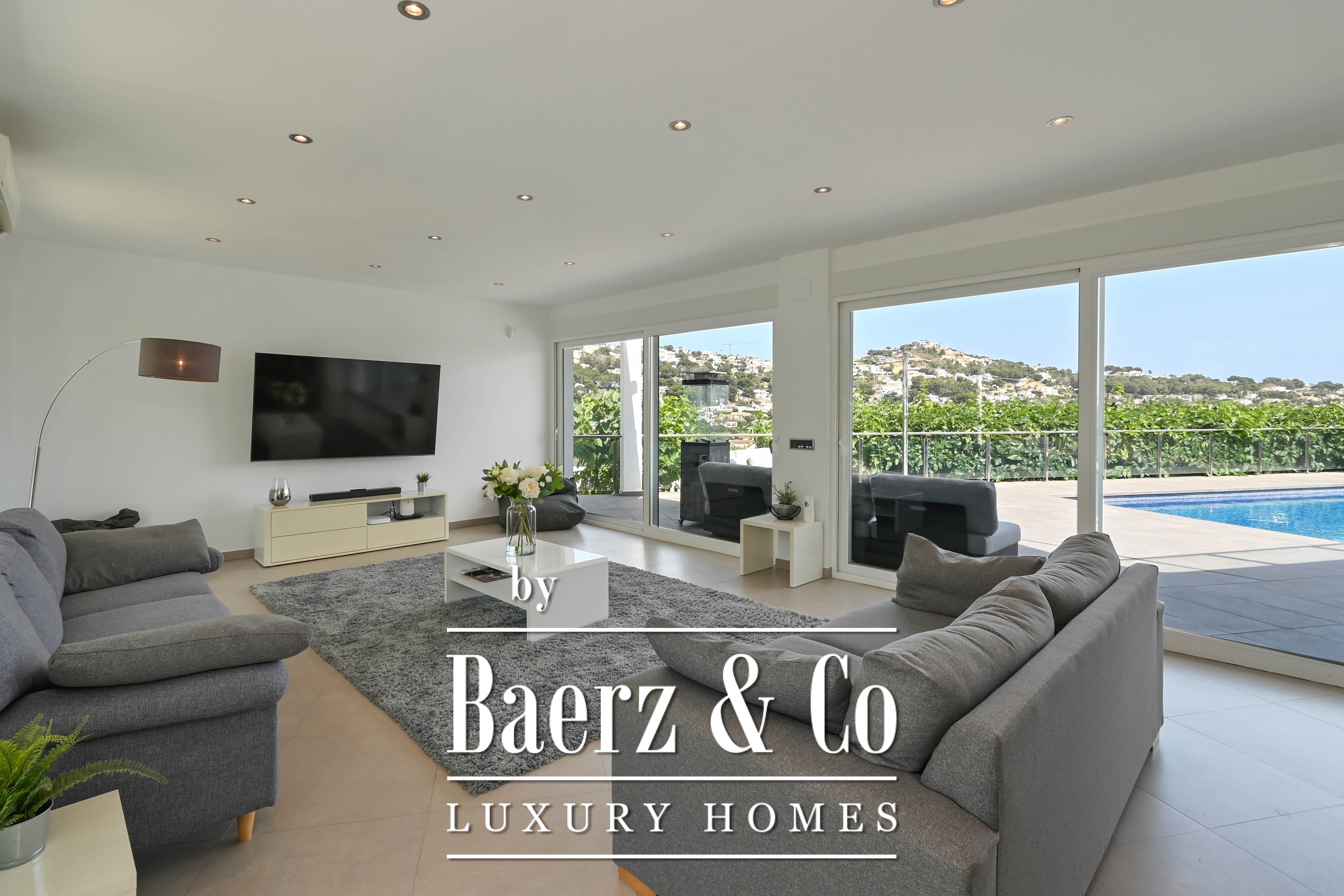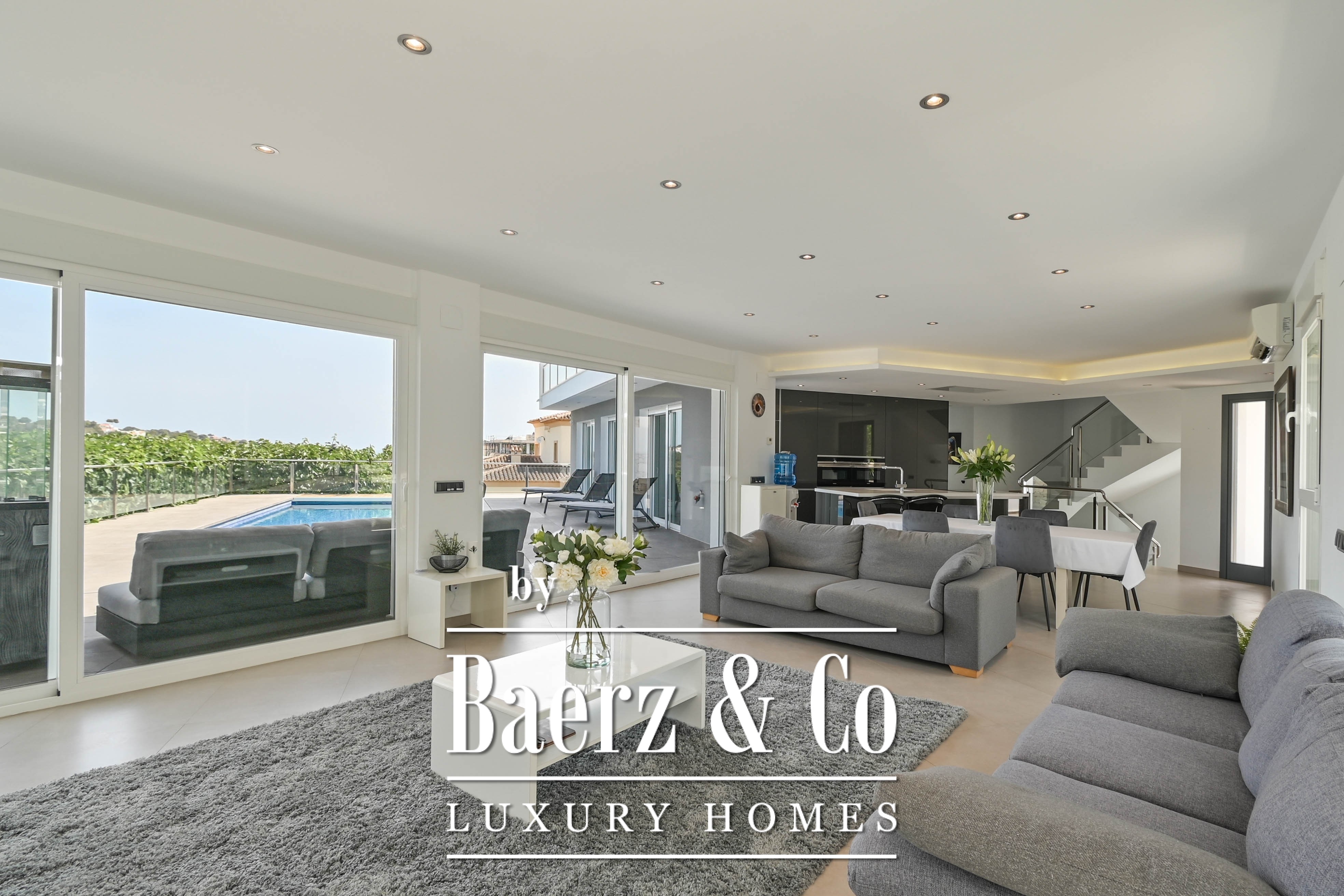 This modern and light-filled villa in the popular residential area of Sol Park, close to the centre of Moraira, offers everything you would expect from contemporary comfort and refined finishes.