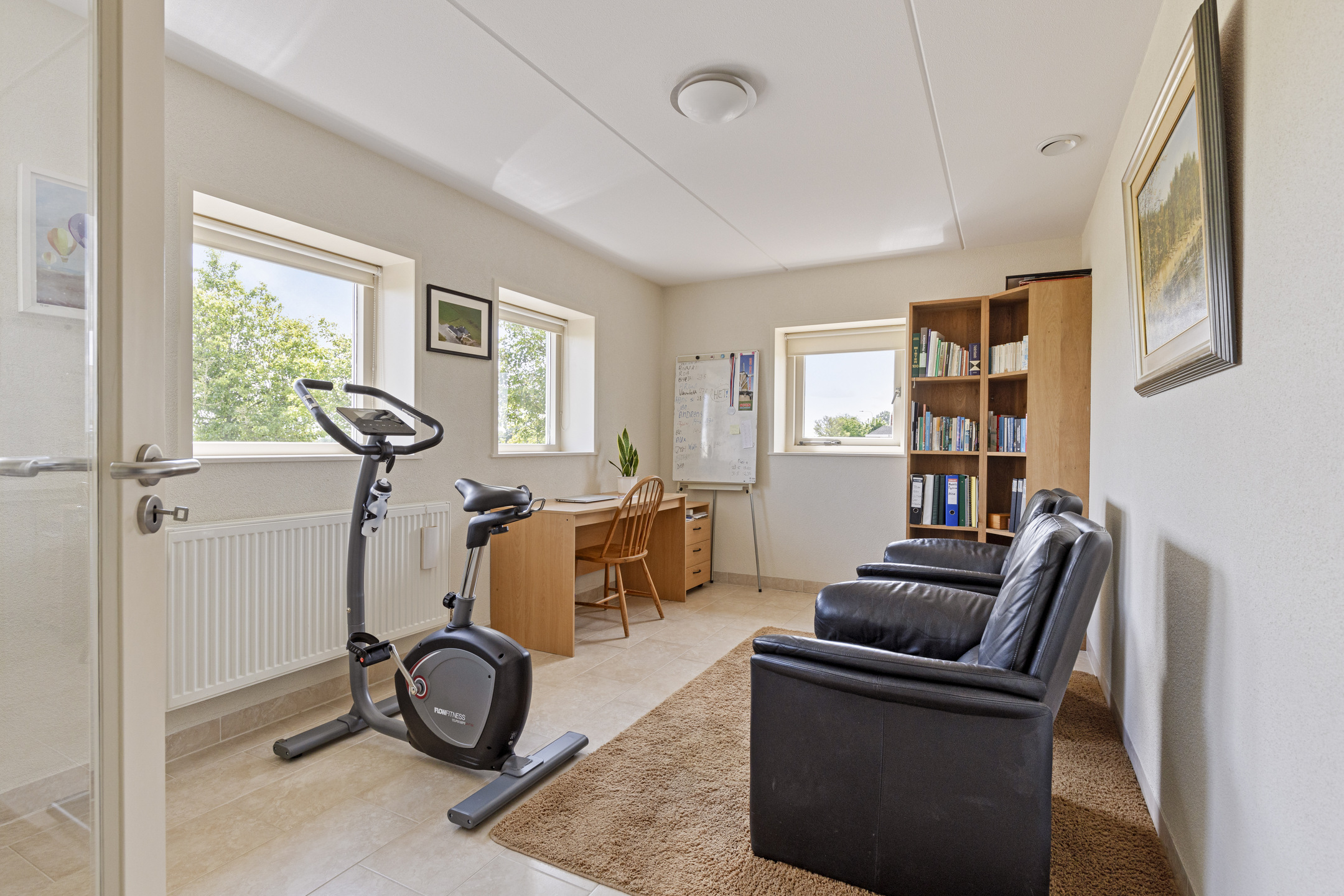 Left is the front bedroom, now used as a study and gym.