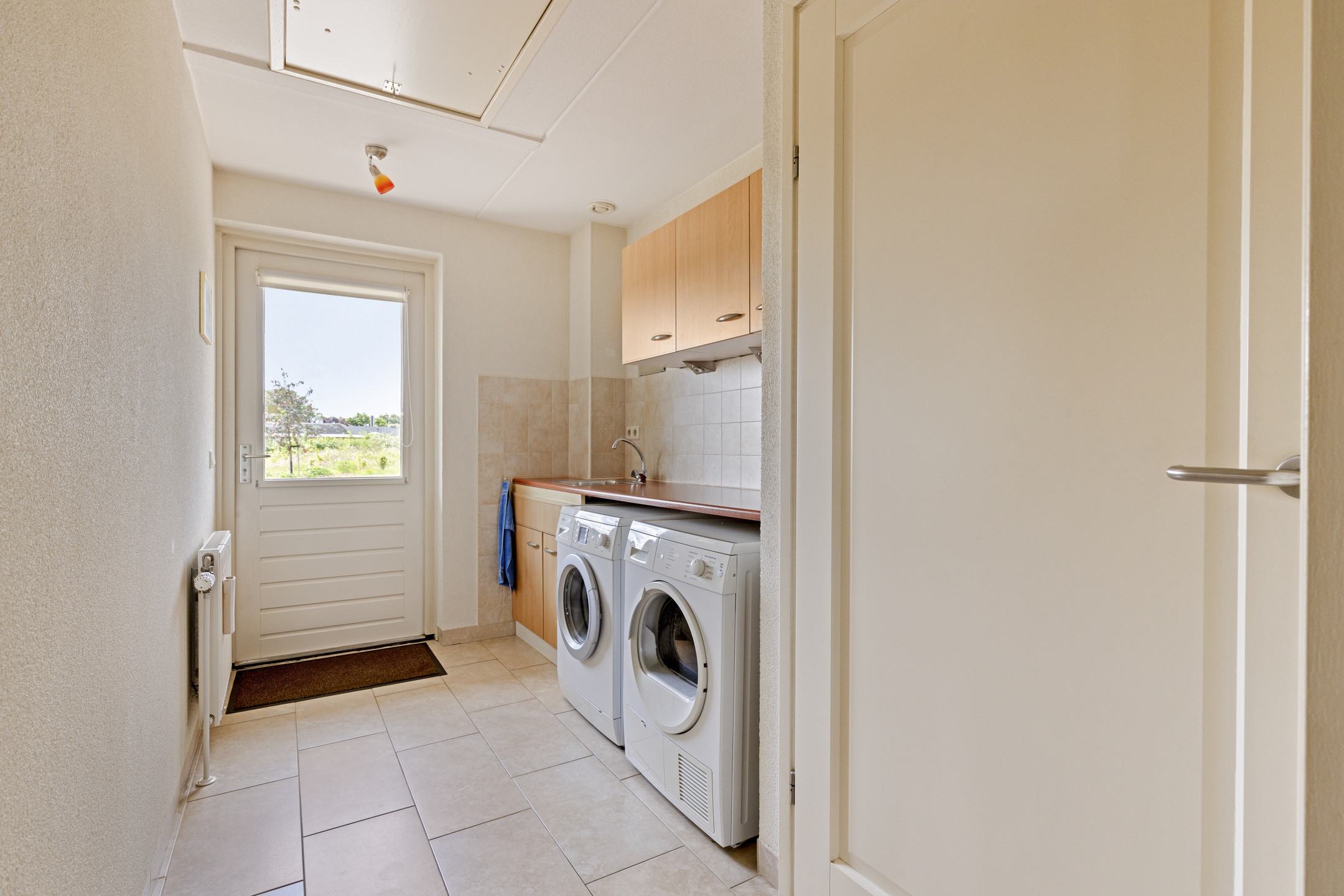 Then the utility room, with connections for washer and dryer, pantry, door to the driveway and access to the basement.