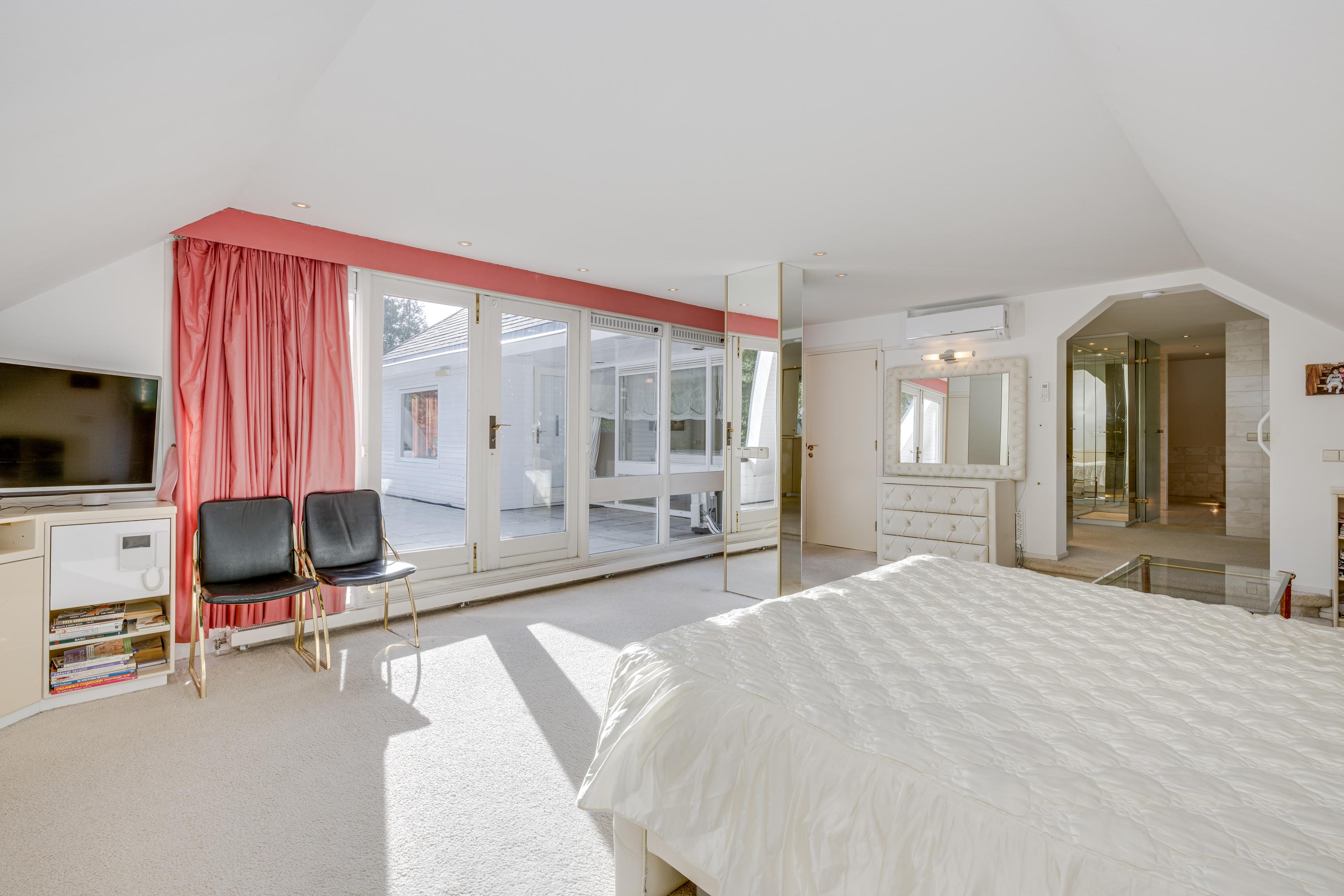 This elegant villa with a bright white exterior, with a combined living area of no less than 416 m2, is situated on a beautiful plot of 1,580 m2. The house is ideally located on the edge of Oegstgeest, surrounded by streets on all sides, with no adjoining neighbours, providing a sense of space and privacy without isolation. It is close to the greenery of Poelgeest Castle and the Leidse Hout; the lakes, marinas, and golf course of Warmond; and the schools, sports clubs, and shops of Oegstgeest, including the International School Rijnlands Lyceum. Leiden CS and the centre of Leiden are also easily accessible by bike. The house is conveniently situated near major roads providing easy access to both The Hague and Amsterdam (A44/A4), as well as Delft/Rotterdam via the new N434.