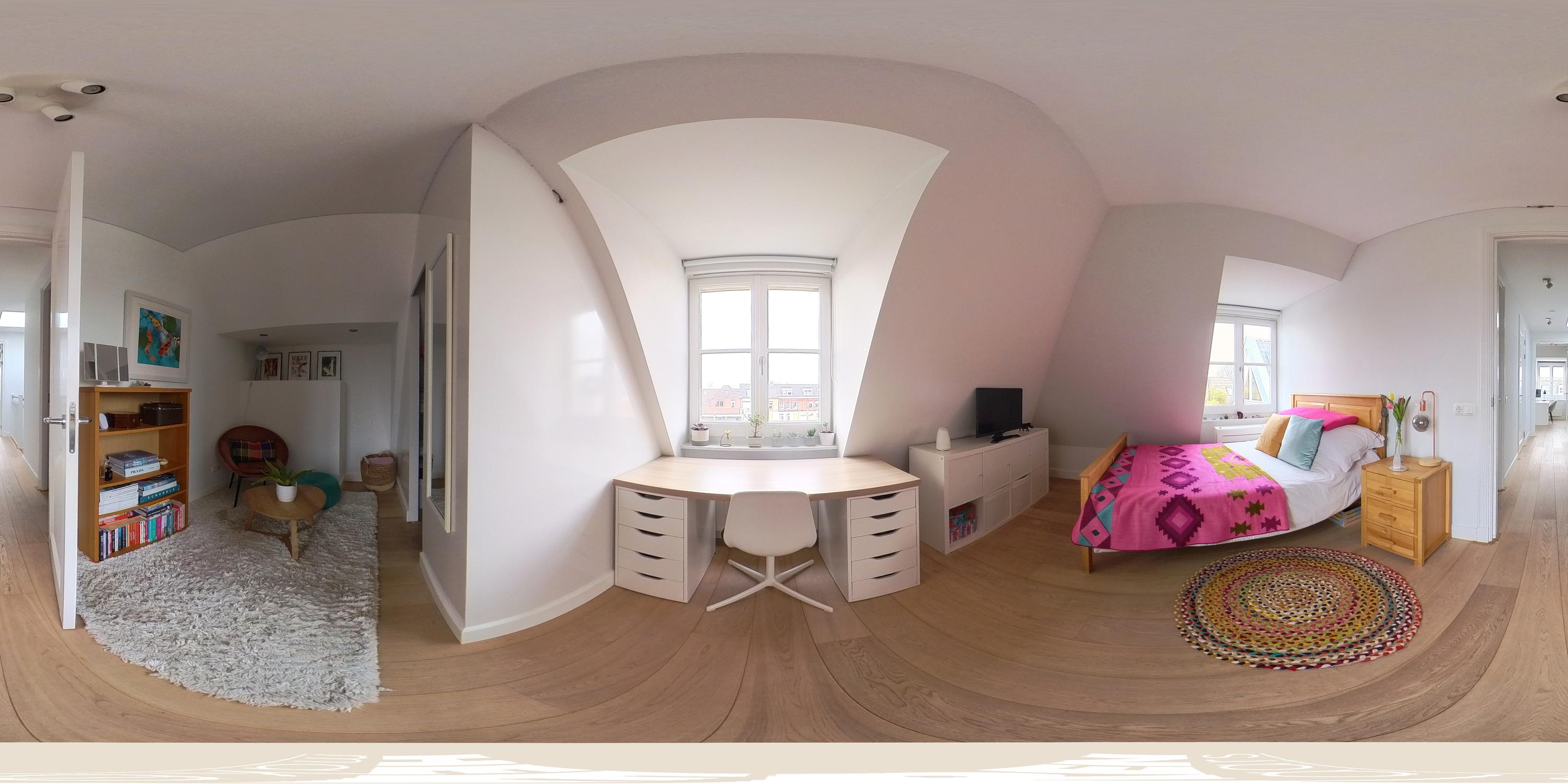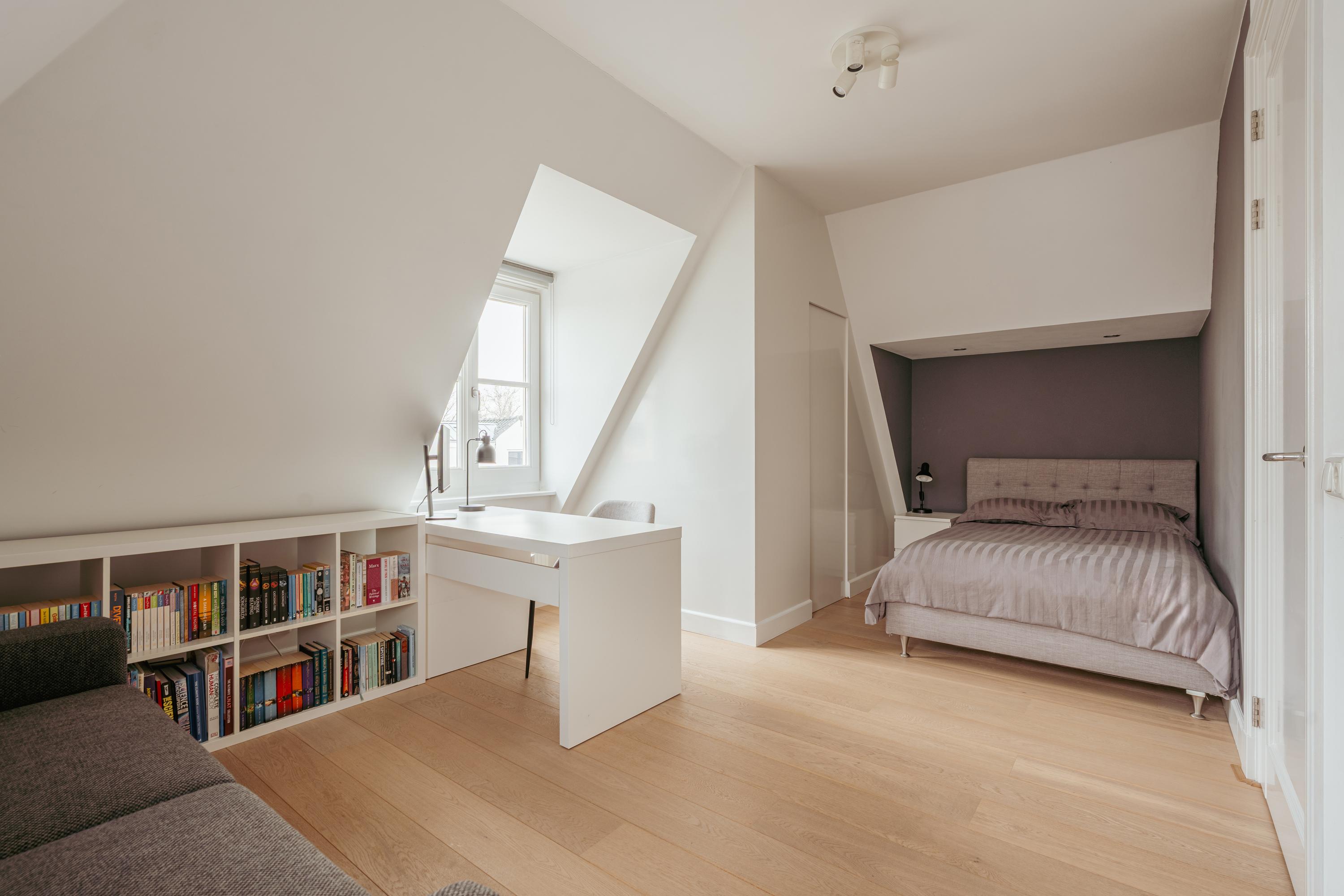 The first floor is reached via the central staircase with overhead light. The spacious landing benefits from ample daylight thanks to the skylight on the second floor. This level accommodates two generously sized bedrooms and an additional room that is ideally suited as a home office or study.