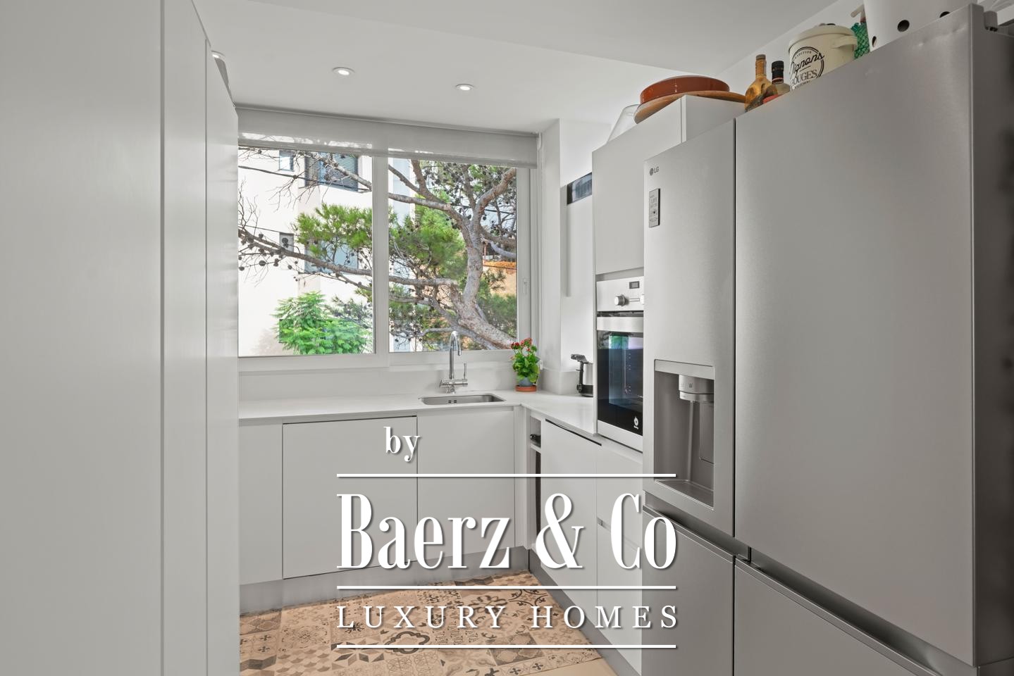 The apartment also offers a large private garage, a true luxury in this highly coveted area.