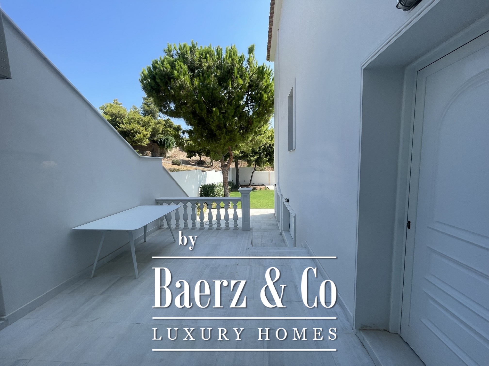 Villa for sale Porto Heli encapsulates refined Mediterranean living in one of Greece’s most coveted coastal settings. Set discreetly among private estates just steps from the sea, this recently renovated residence offers 425 m² of living space within a 1,065 m² landscaped plot. The property is arranged over three independent levels, with five spacious bedrooms and six bathrooms, creating options for both intimate family life and independent guest accommodation.