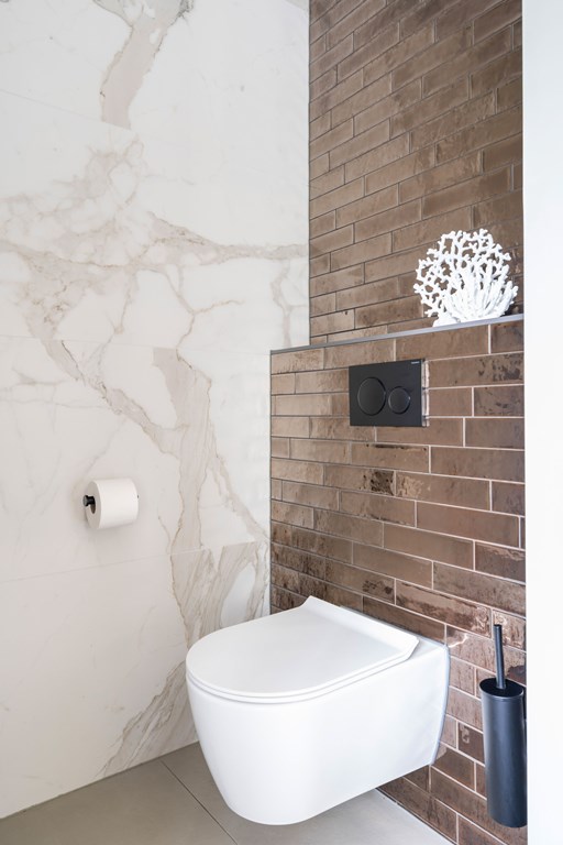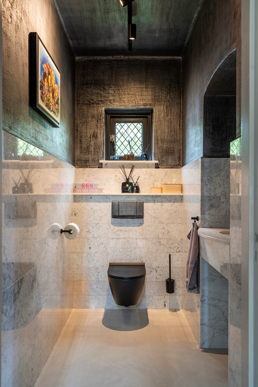 On the first floor there are four generous bedrooms. Each room is beautifully finished and highly versatile: whether you need extra bedrooms, a home office, hobby room, or fitness space, these rooms can be arranged to suit. The finely finished bathroom on this floor features a luxurious freestanding tub, a serene spot to unwind and enjoy a moment to yourself.