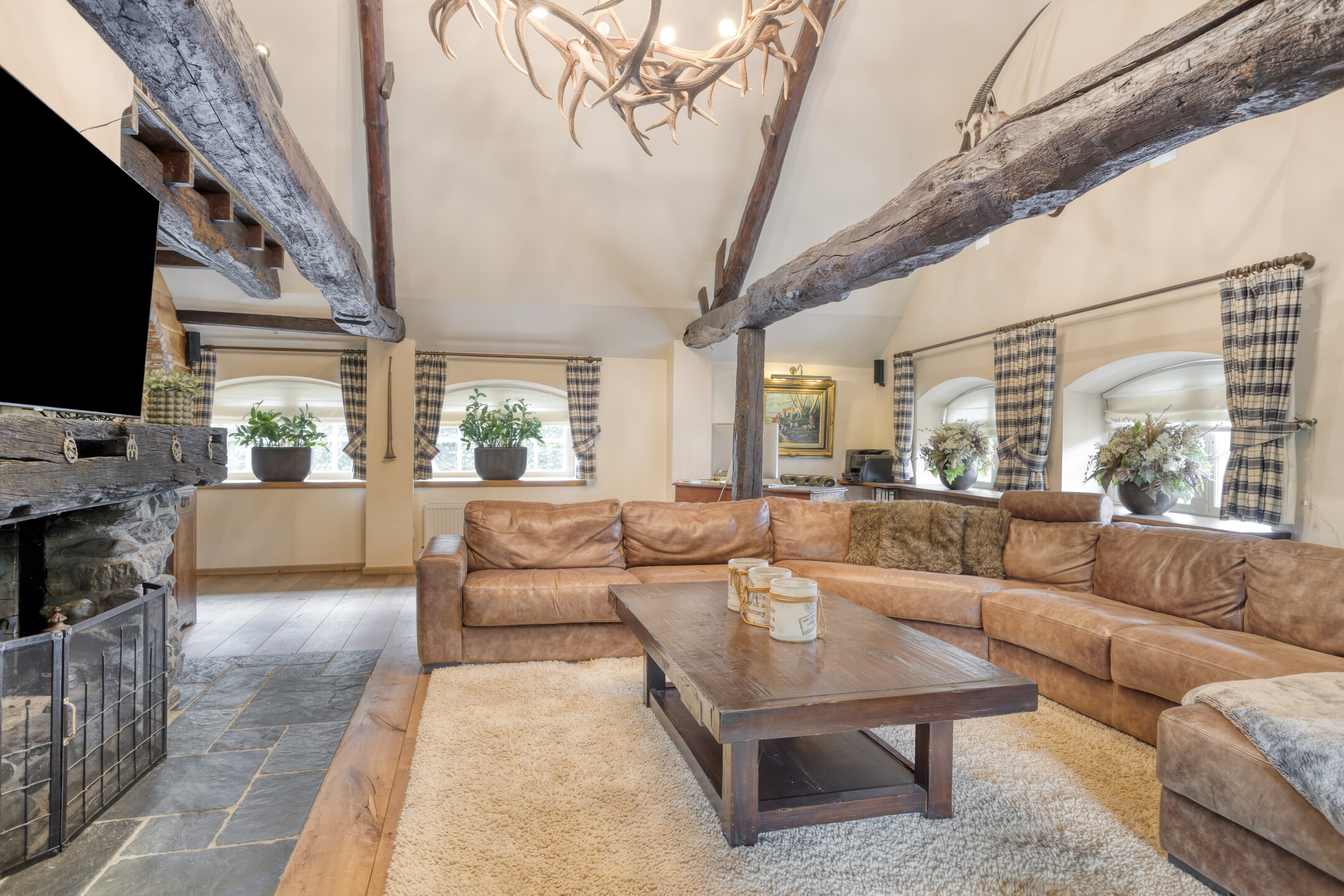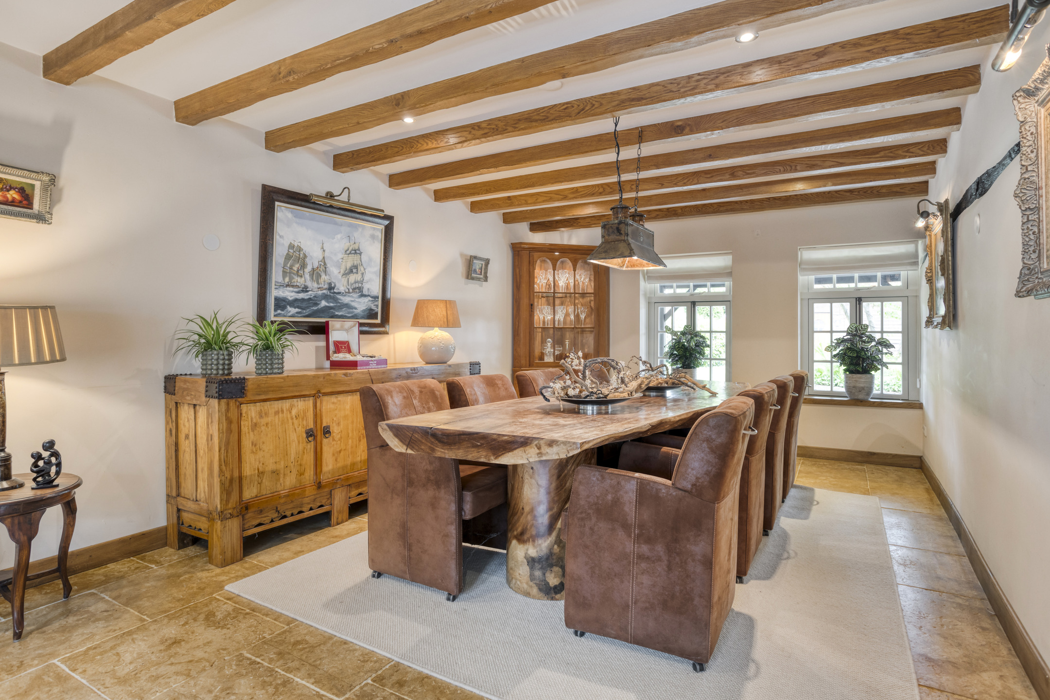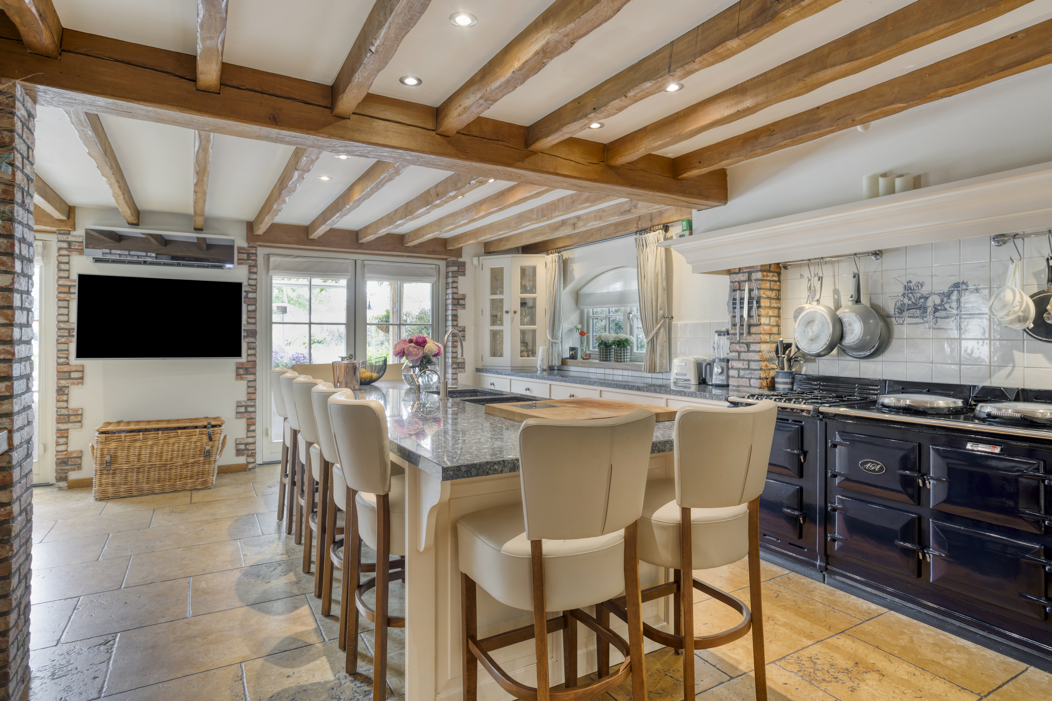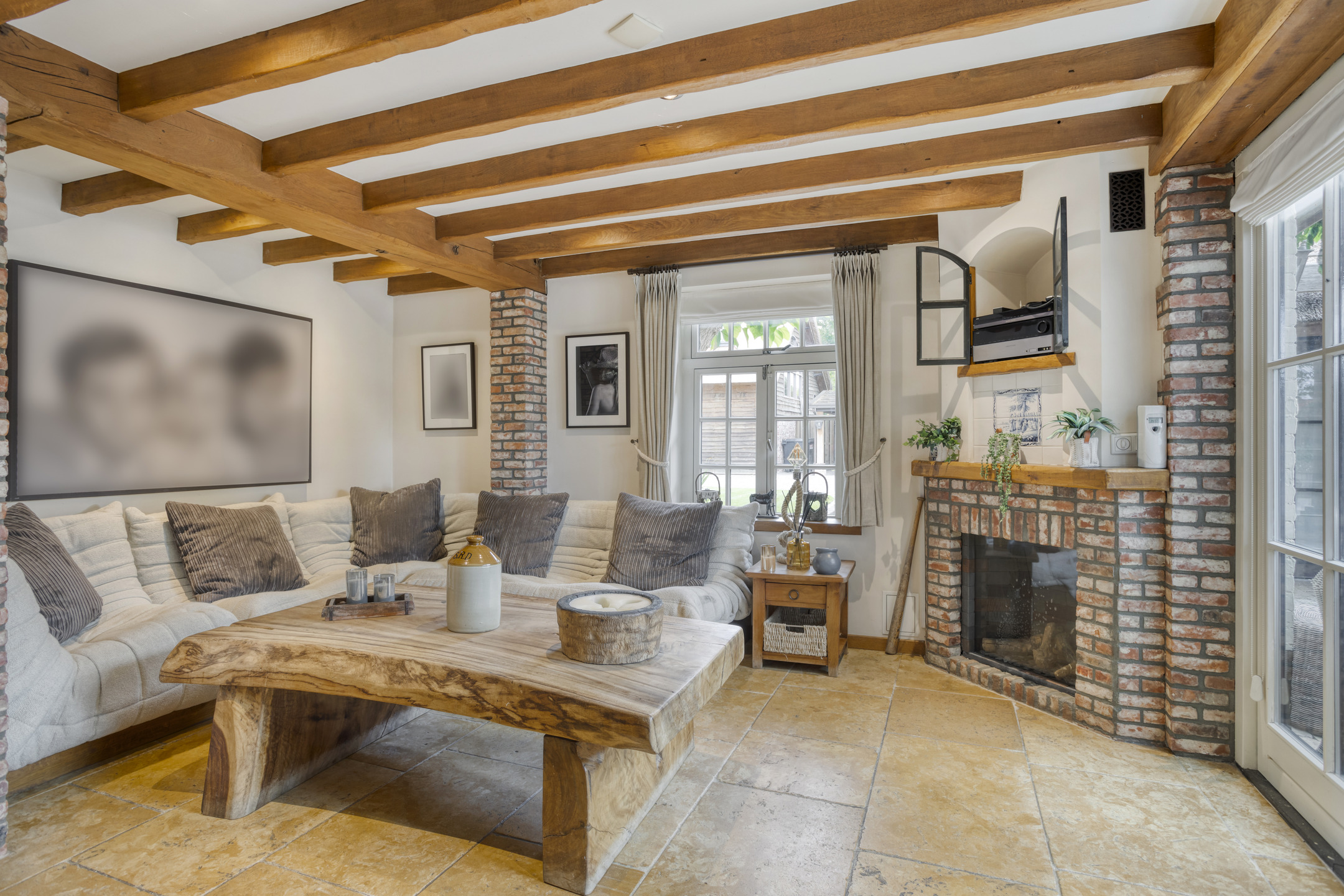 - The farmhouse and outbuilding have high ceilings with beautiful beam construction and characteristic