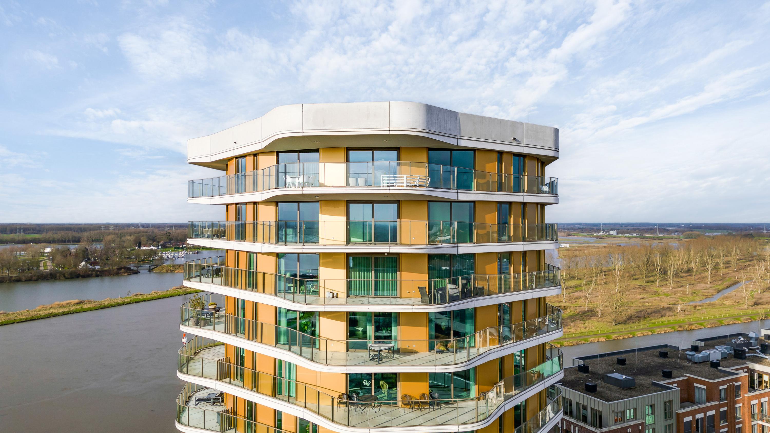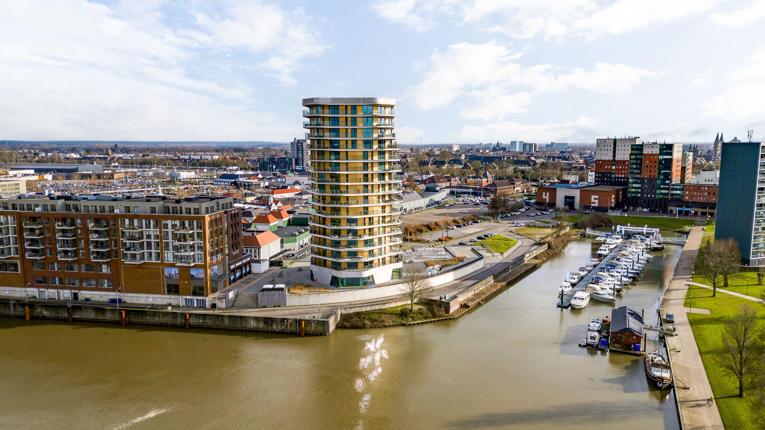 The apartment complex has a perfect location in relation to Roermond's city centre but also the cosy feeling of a ‘free living environment’ with the wide panoramic view over Roermond's Maasplassen.