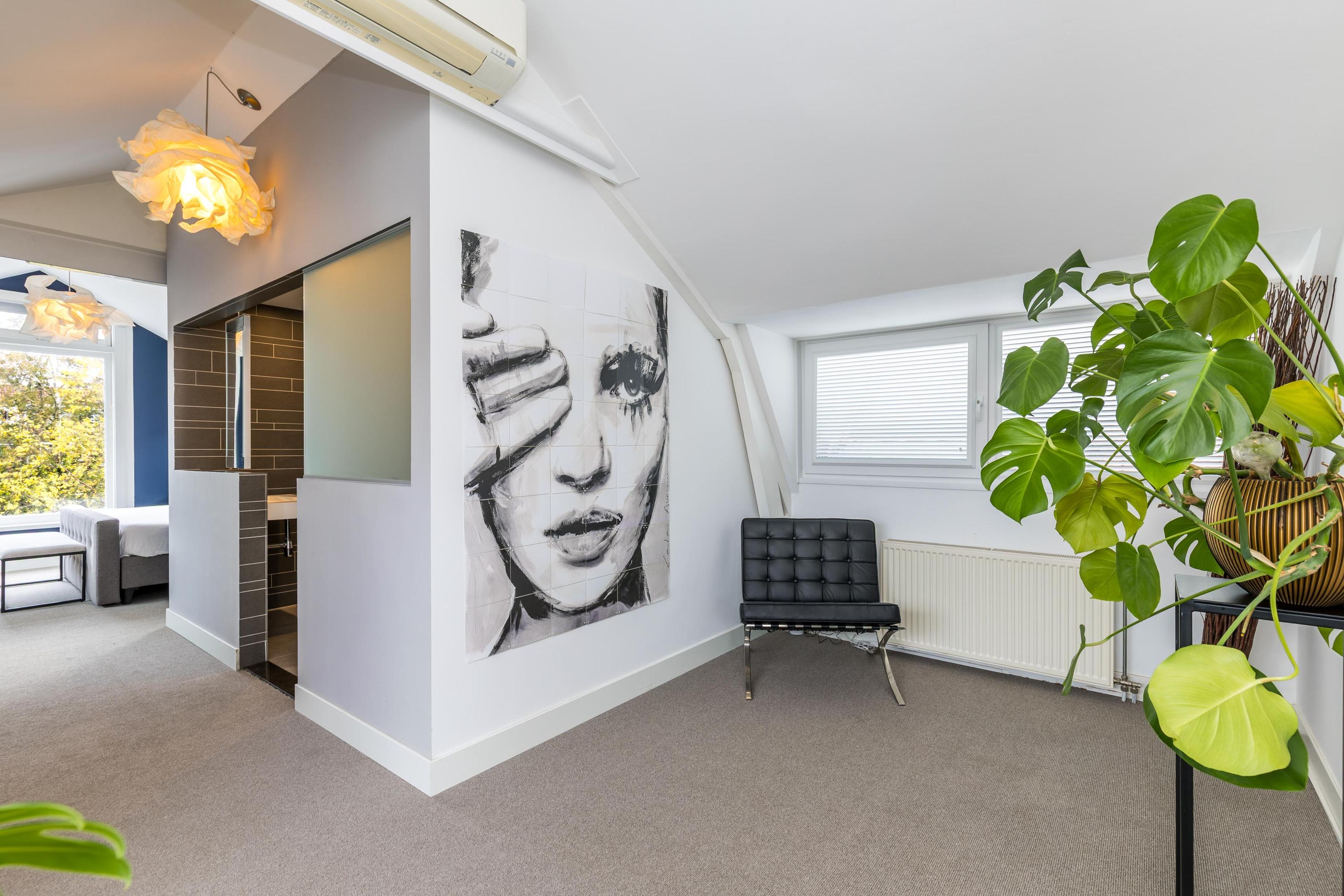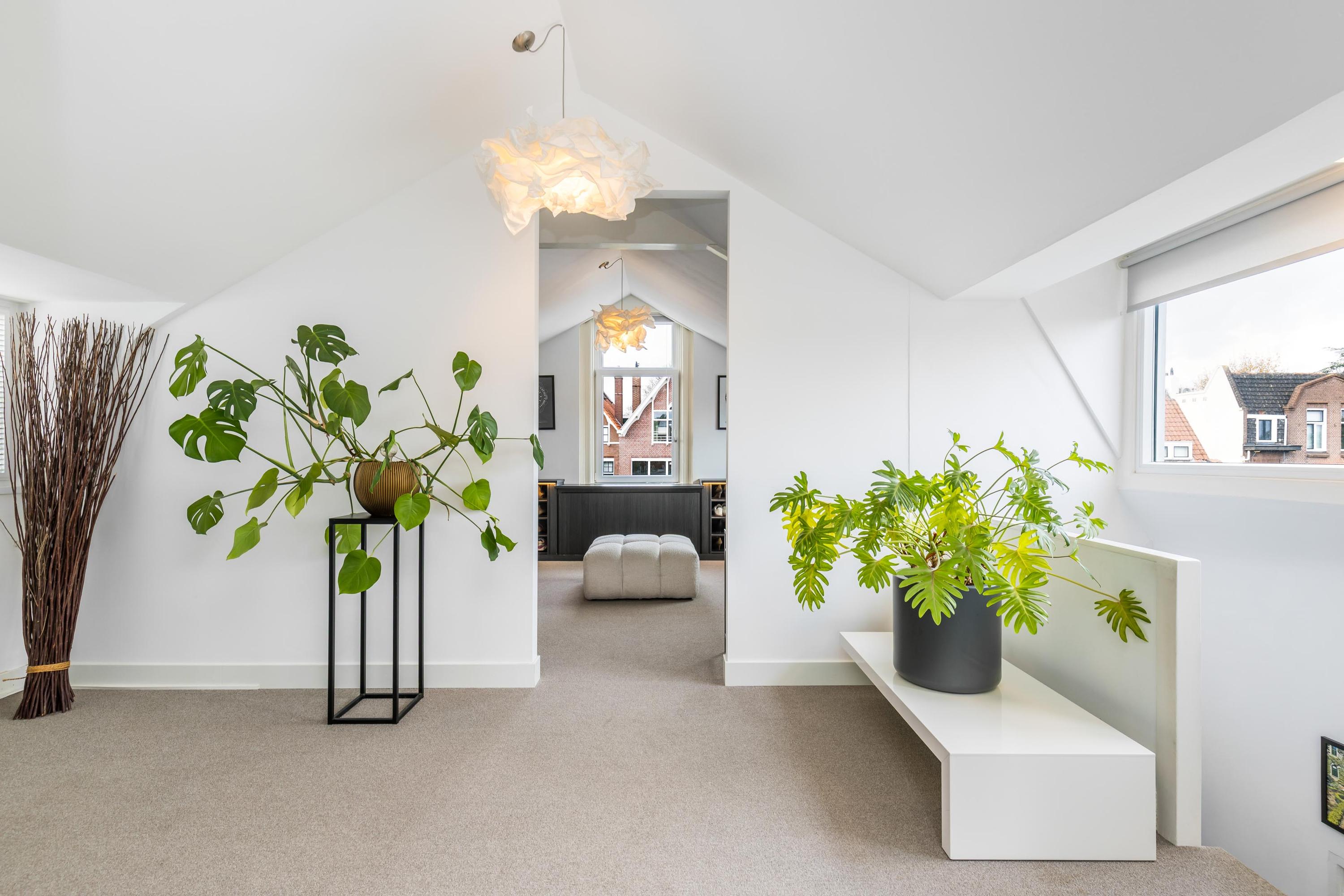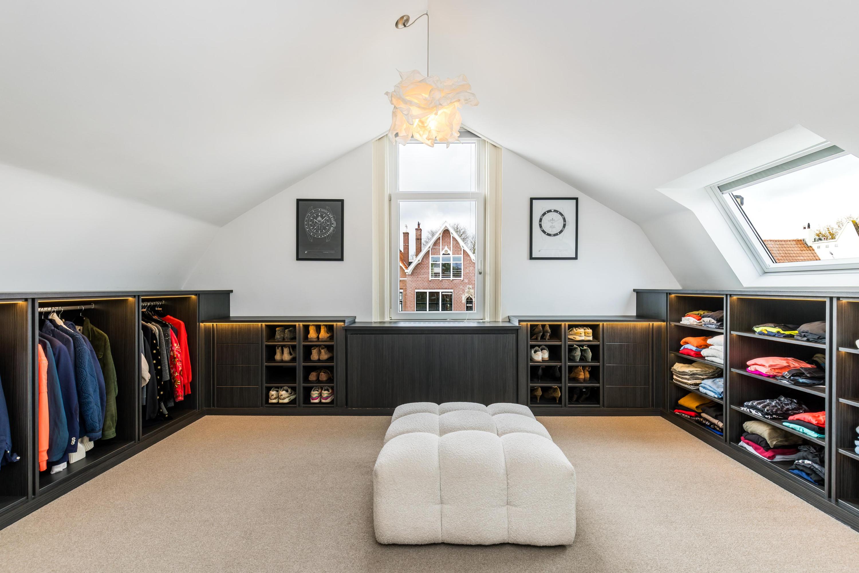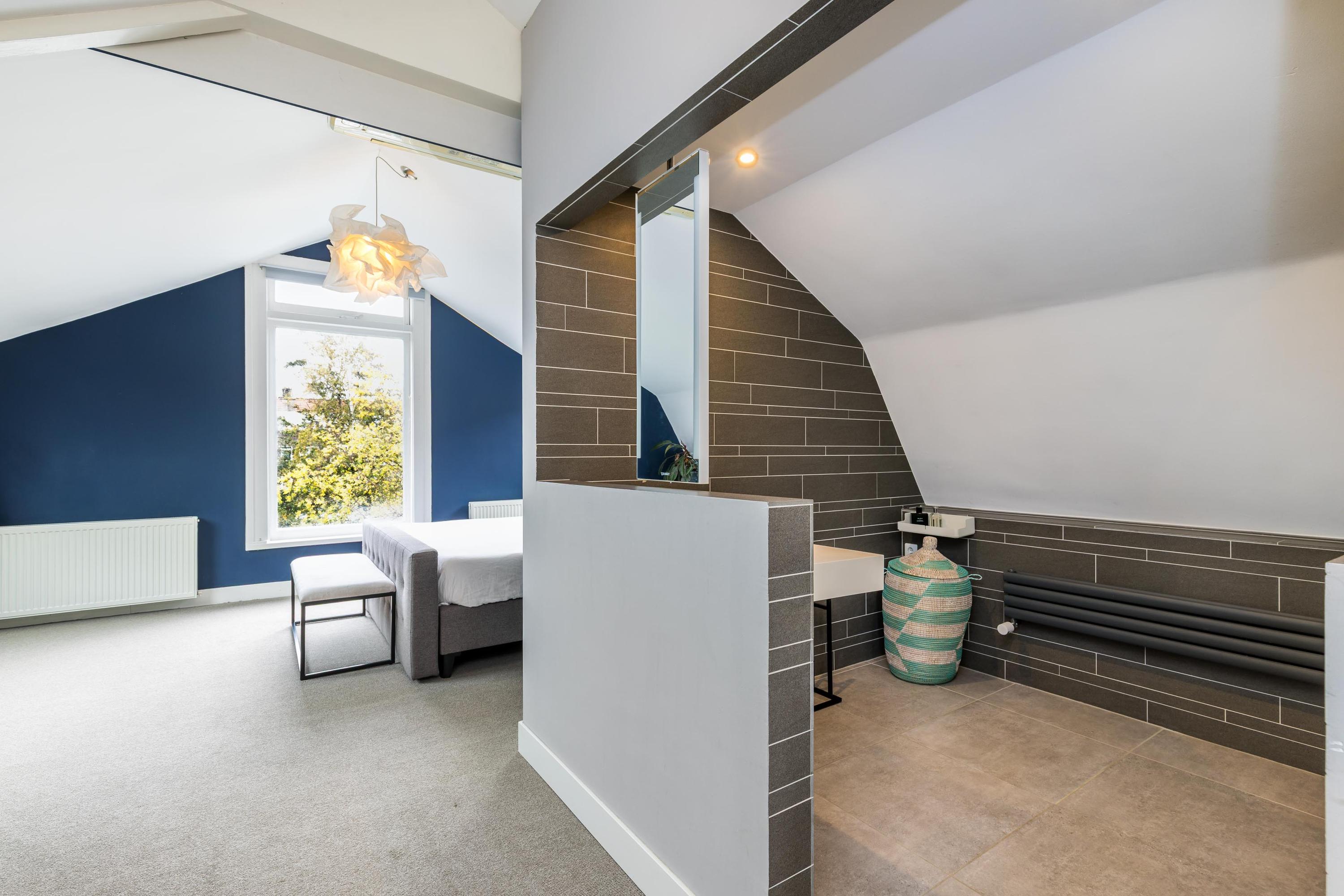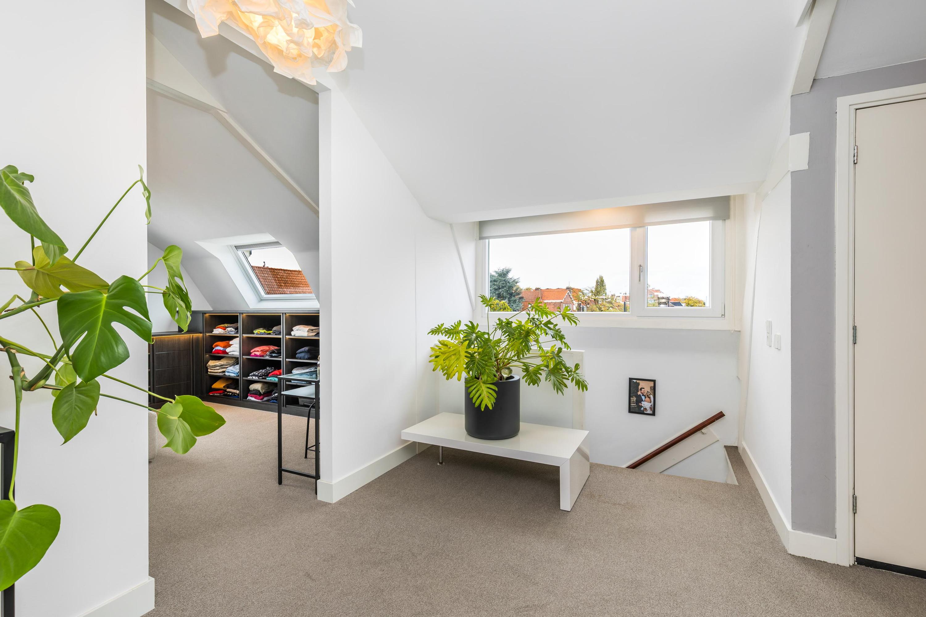 Spacious landing with built-in cupboard and separate toilet. At the front are two charming rooms, ideal as a study or children’s bedrooms.