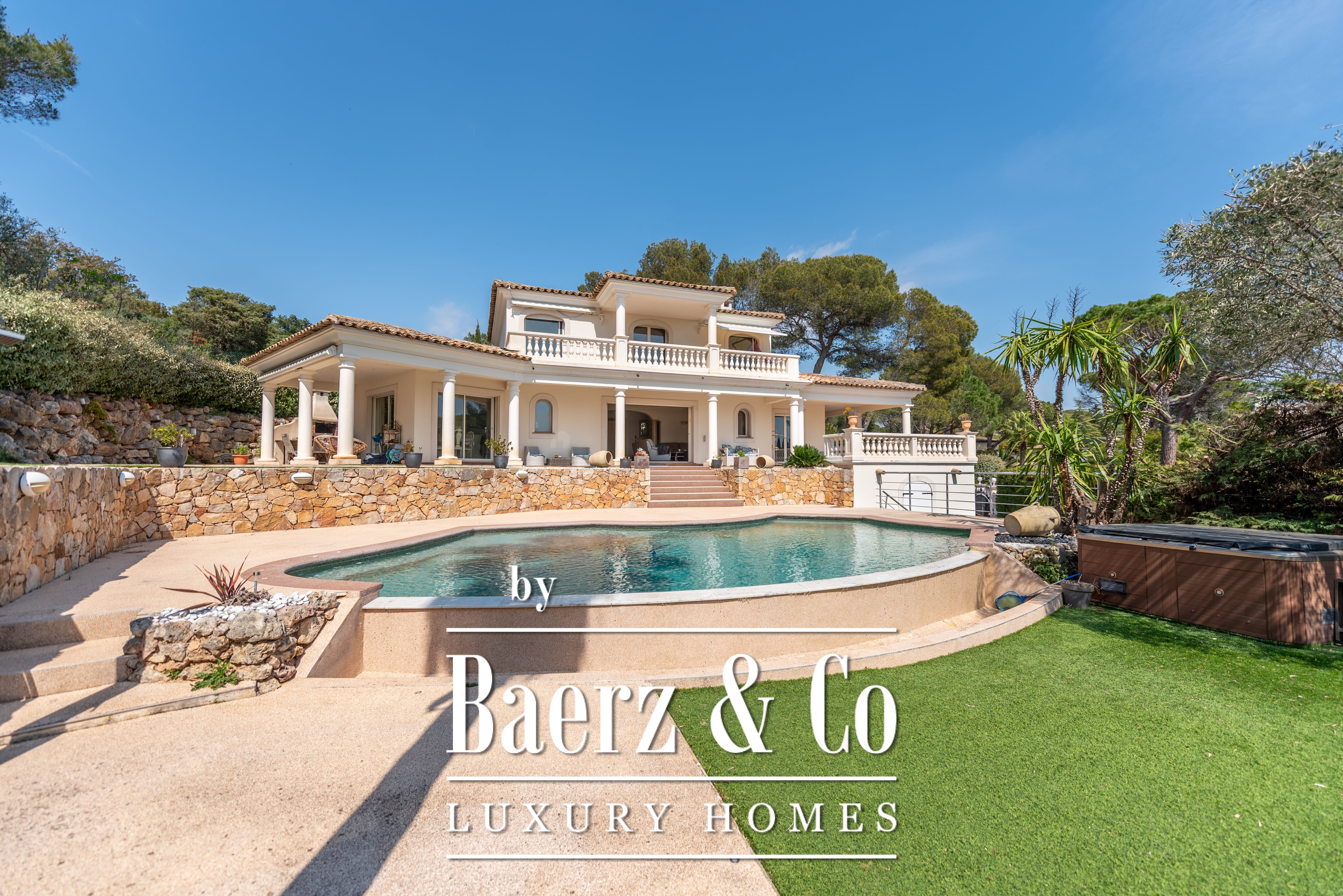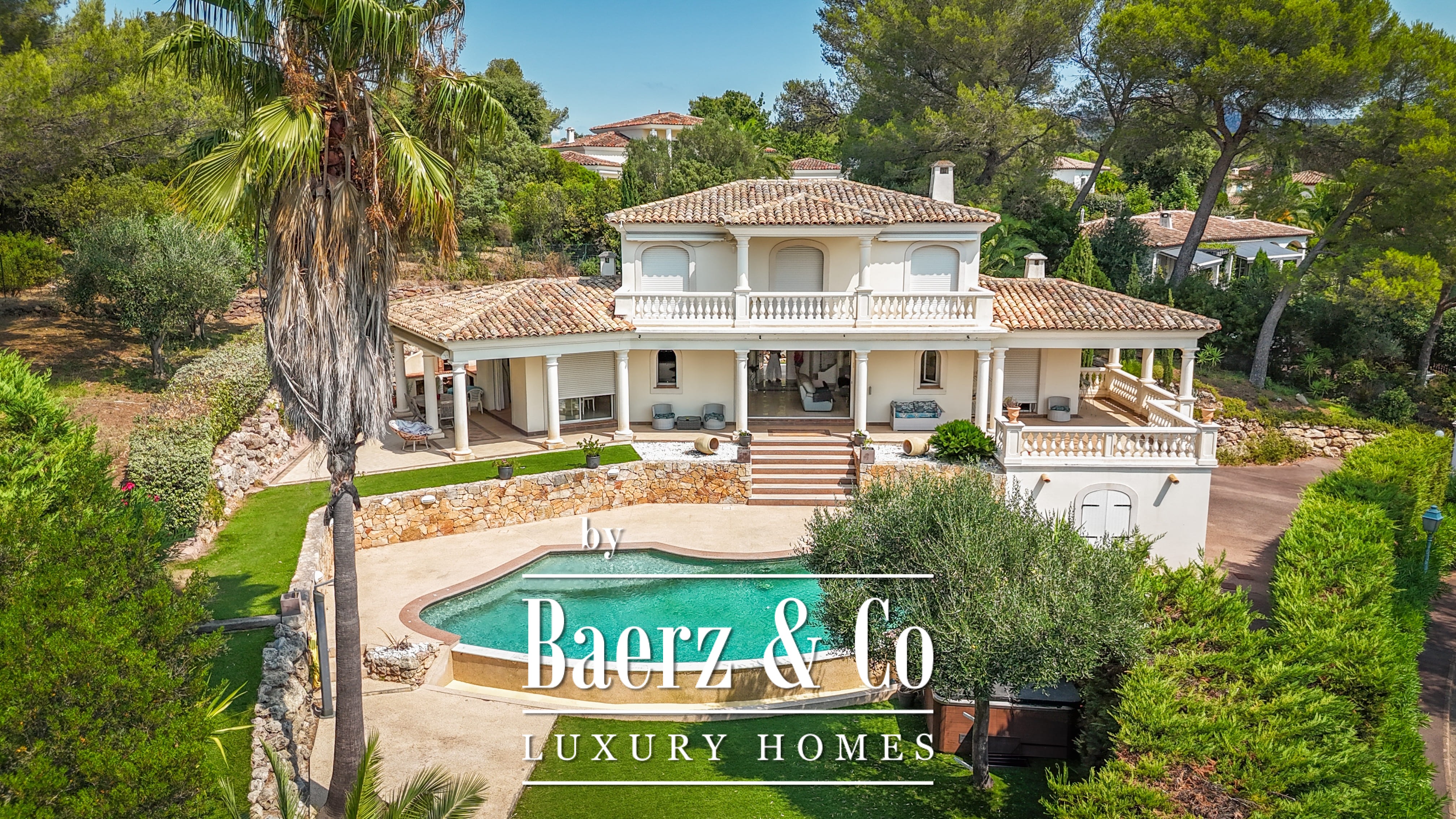 Villa Saint-Raphaël is offered for sale in one of the most desirable settings on the Côte d’Azur, set within a private, secure estate. This 205 m² residence is defined by its elevated position, optimal sunlight, and quiet residential atmosphere, a short distance from renowned golf courses.
