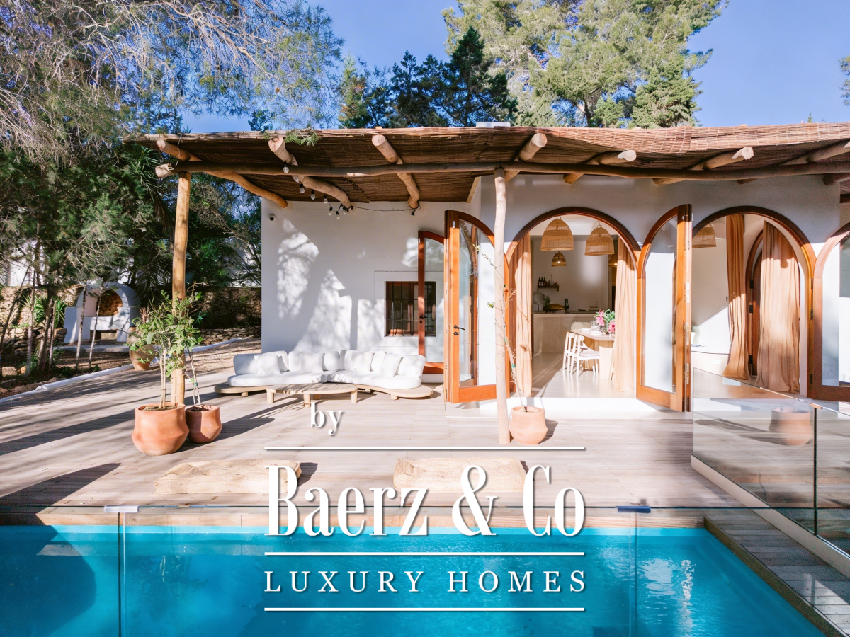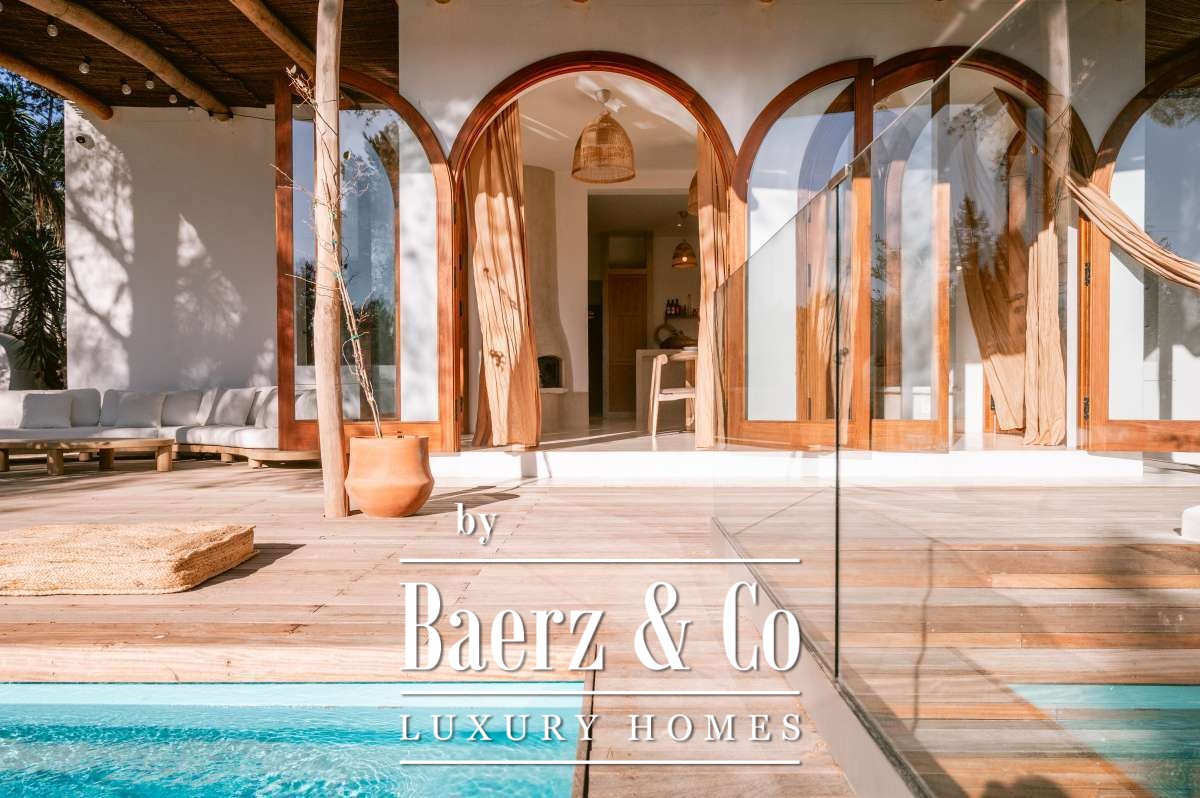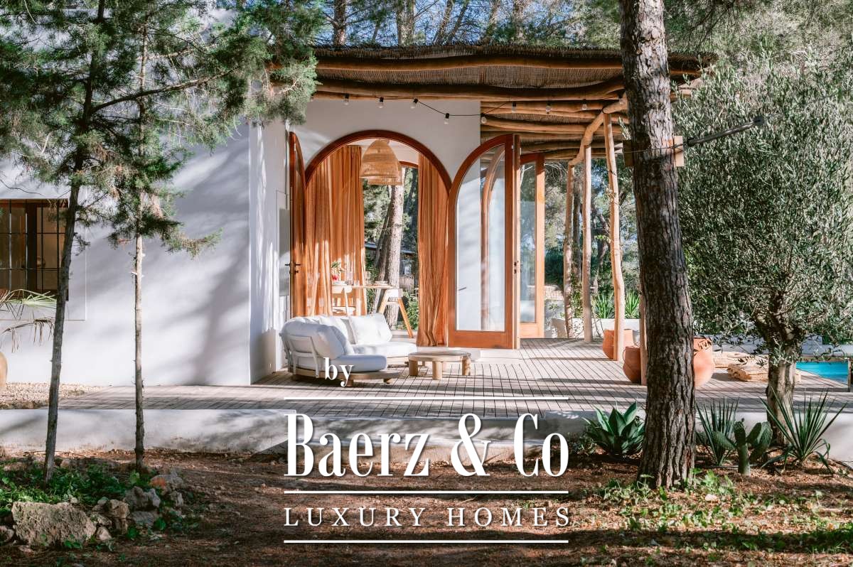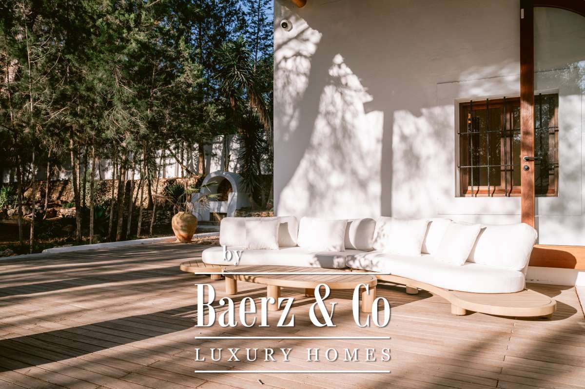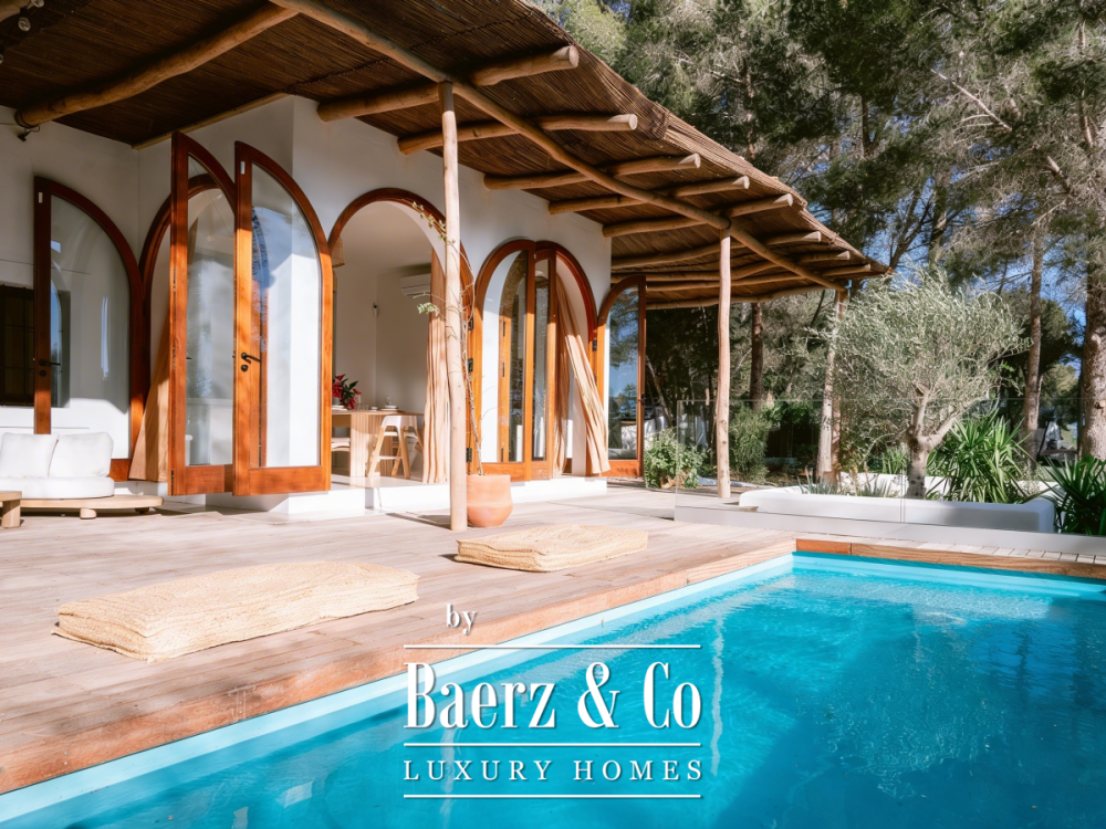 Villa San Agustín Spain connects privacy with effortless outdoor living amid a tranquil forested landscape. This fully renovated villa, with a built area of 175 m² on a private plot of 1,783 m², embraces the enduring spirit of Ibiza while remaining close to local restaurants and some of the west coast’s revered beaches. The setting blends seclusion and centrality, surrounded by the verdant beauty of San Agustín.