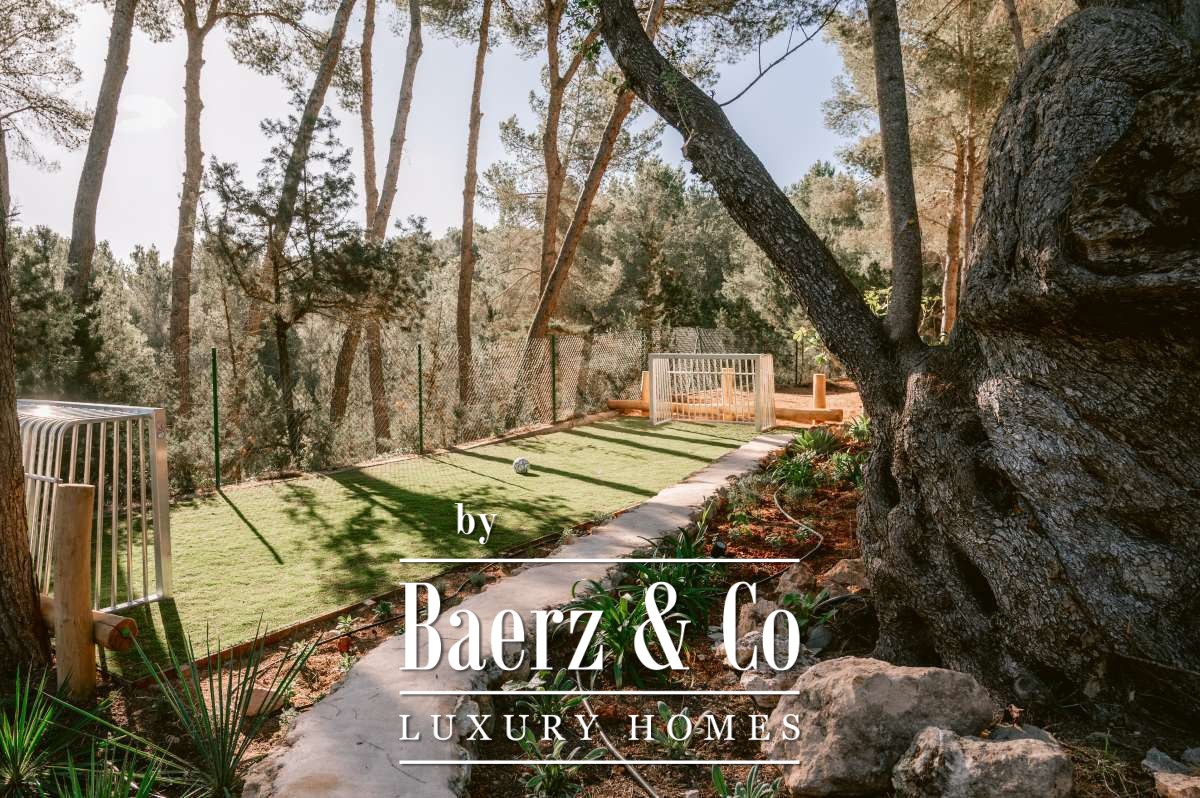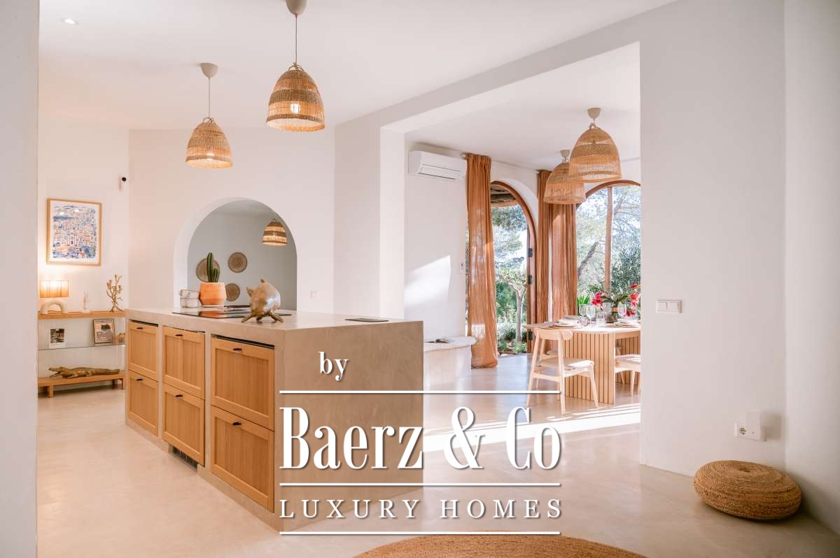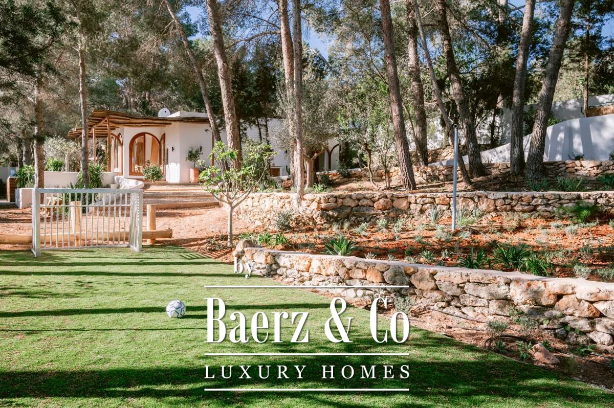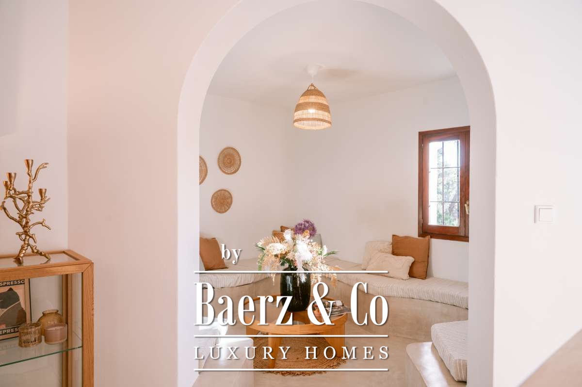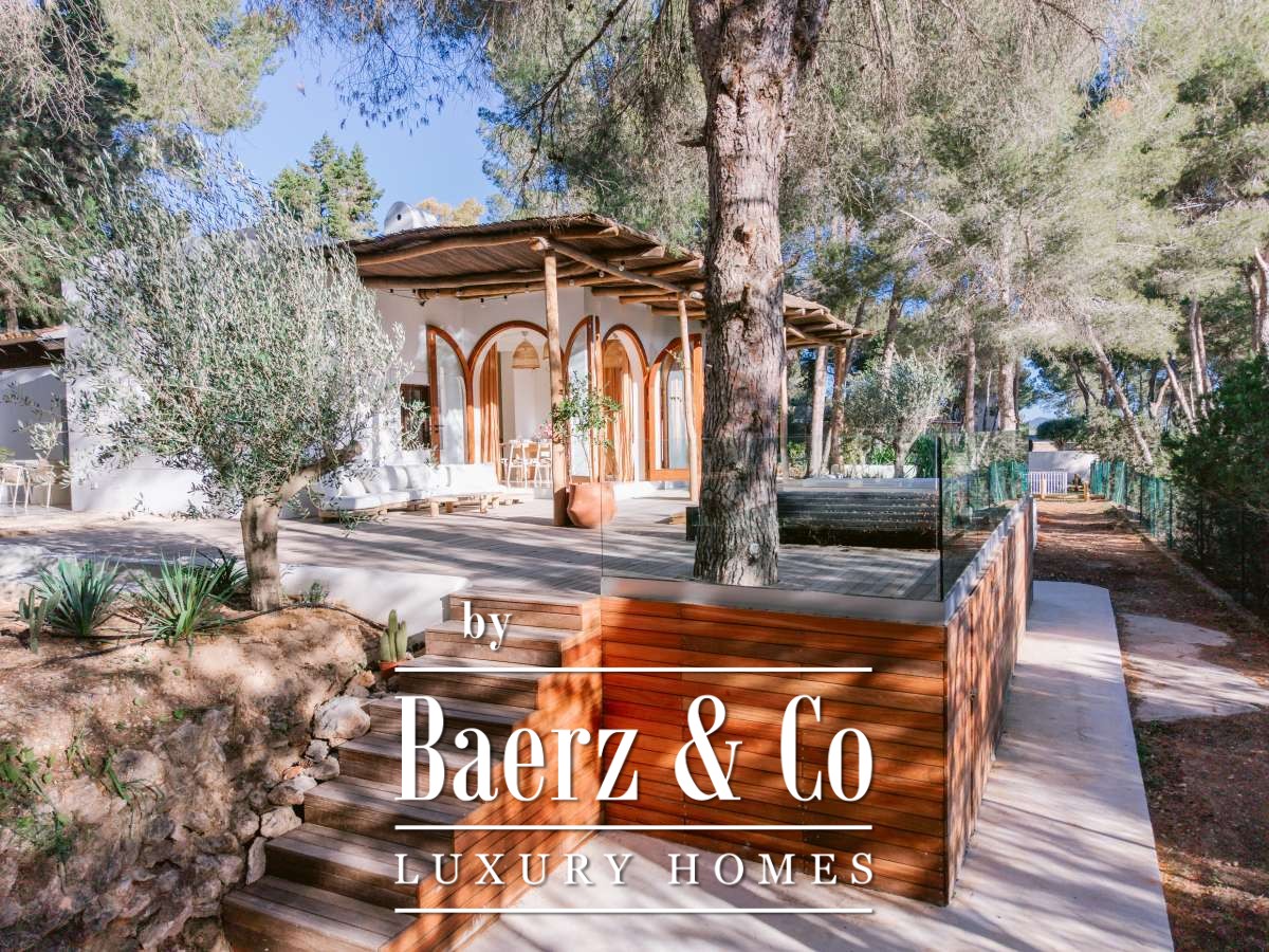 Villa San Agustín Spain connects privacy with effortless outdoor living amid a tranquil forested landscape. This fully renovated villa, with a built area of 175 m² on a private plot of 1,783 m², embraces the enduring spirit of Ibiza while remaining close to local restaurants and some of the west coast’s revered beaches. The setting blends seclusion and centrality, surrounded by the verdant beauty of San Agustín.