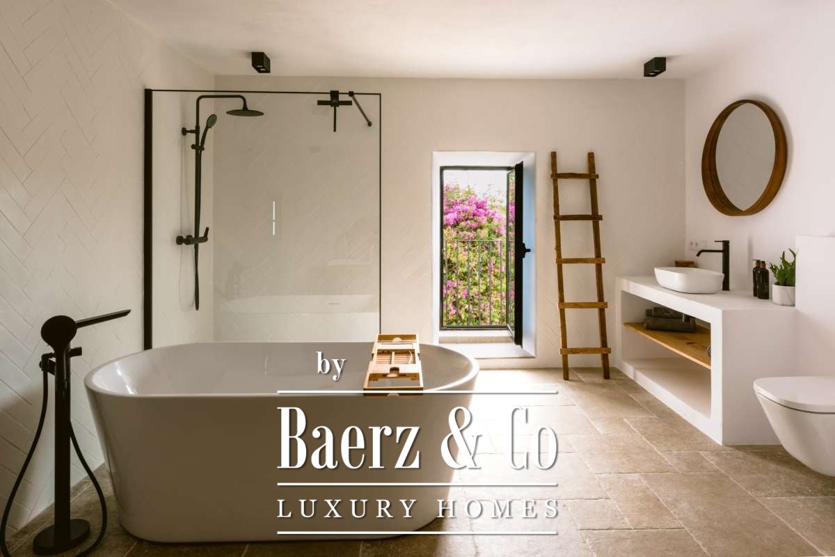 The surroundingsNestled in the heart of Sant Jordi, Ibiza, this exceptional property offers a unique location just a 3-minute drive from the airport and a 10-minute drive from bustling Ibiza Town. Moreover, within a 10-minute drive you will also find the island's most renowned coastal gems, including Las Salinas, Sa Caleta, Cala Jondal and the exclusive Blue Marlin Beach Club. These beautiful beaches and hotspots are close to the residence, in the heart of the island's vibrant lifestyle. This is a perfect location for those who are looking for privacy yet would like to live close to the center. This residence offers a harmonious blend of serenity and easy accessibility.The villaThis beautiful villa, renovated in 2023 with high-quality materials, exudes a unique bohemian chic style. Upon entering, you are welcomed by the open-plan living and dining room, which feature different floor levels. These flow seamlessly into one another and create an inviting and cozy atmosphere. The finca features a fully equipped designer kitchen with modern appliances. Every detail of the house has been carefully chosen to match the new modern style with the authentic Ibicencan charm. The main house consists of 5 spacious, beautiful bedrooms, each with an ensuite bathroom equipped with luxurious rain showers. The master bedroom also features a comfortable bathtub. In addition, there is a charming guest house, the "casita," consisting of a fully equipped open-plan living-dining room, two bedrooms and a shared bathroom.