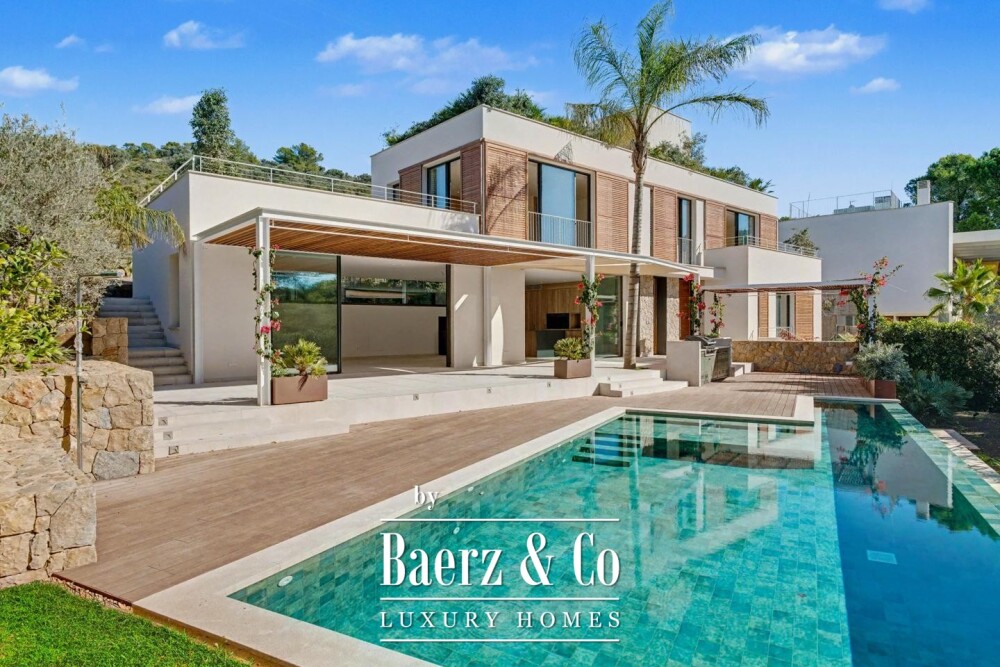 Villa Sant Elm stands as a statement of contemporary architecture softened by Mediterranean ease. This newly built villa, offering 301 m² of living space on a 757 m² plot, is ready to welcome new owners in one of Mallorca’s most coveted enclaves. The villa’s elegant white lines and carefully integrated teak accents evoke quiet luxury, paired with a design that draws in natural light and the rhythm of island life.