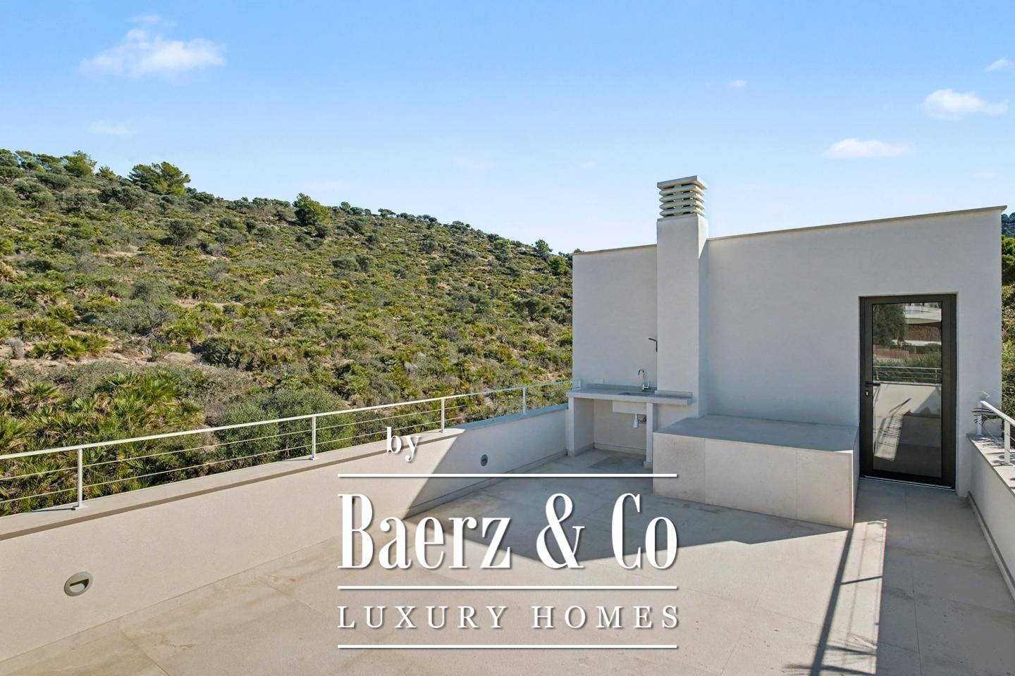 Throughout, integrated heating, smart lighting, and sliding teak shutters underscore the villa’s commitment to comfort and refined living. The property includes a two-car garage, technical room, and storage on the lower level. The rooftop terrace crowns the home, offering a vantage point for sunsets, the Mediterranean horizon, and the calming presence of the sea breeze — an ideal retreat for those seeking a luxury villa for sale in Sant Elm.