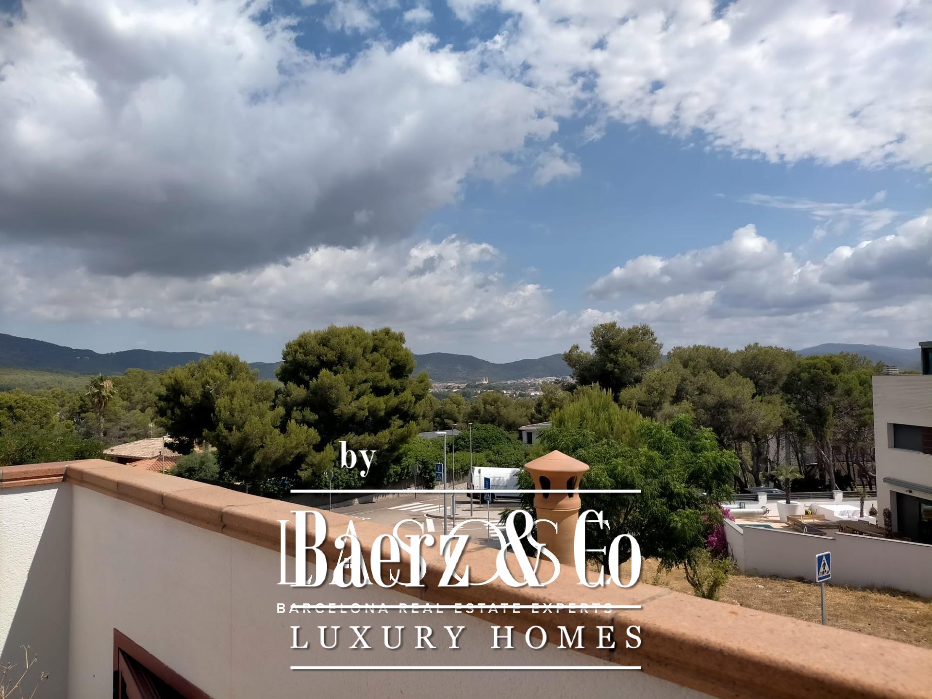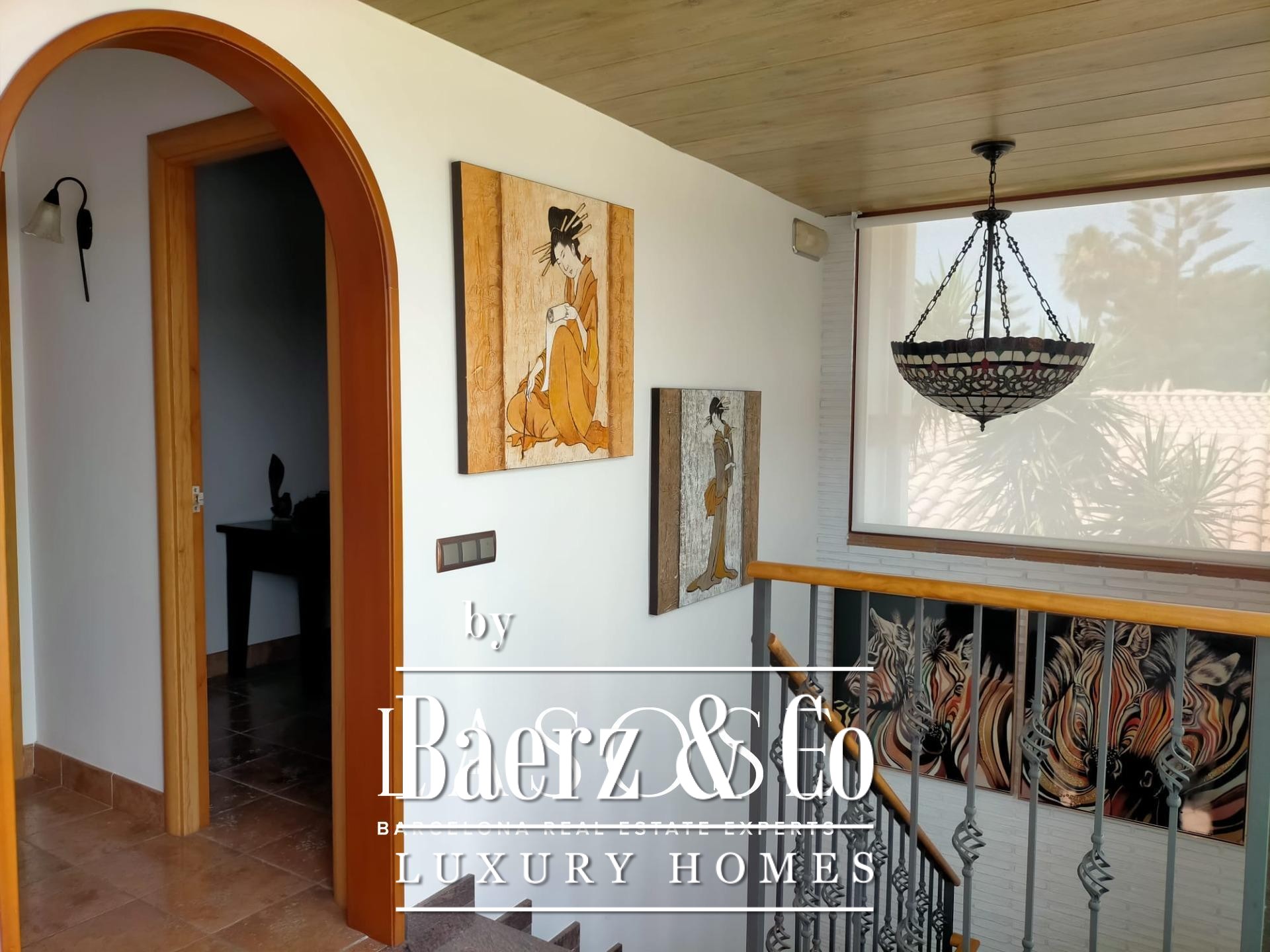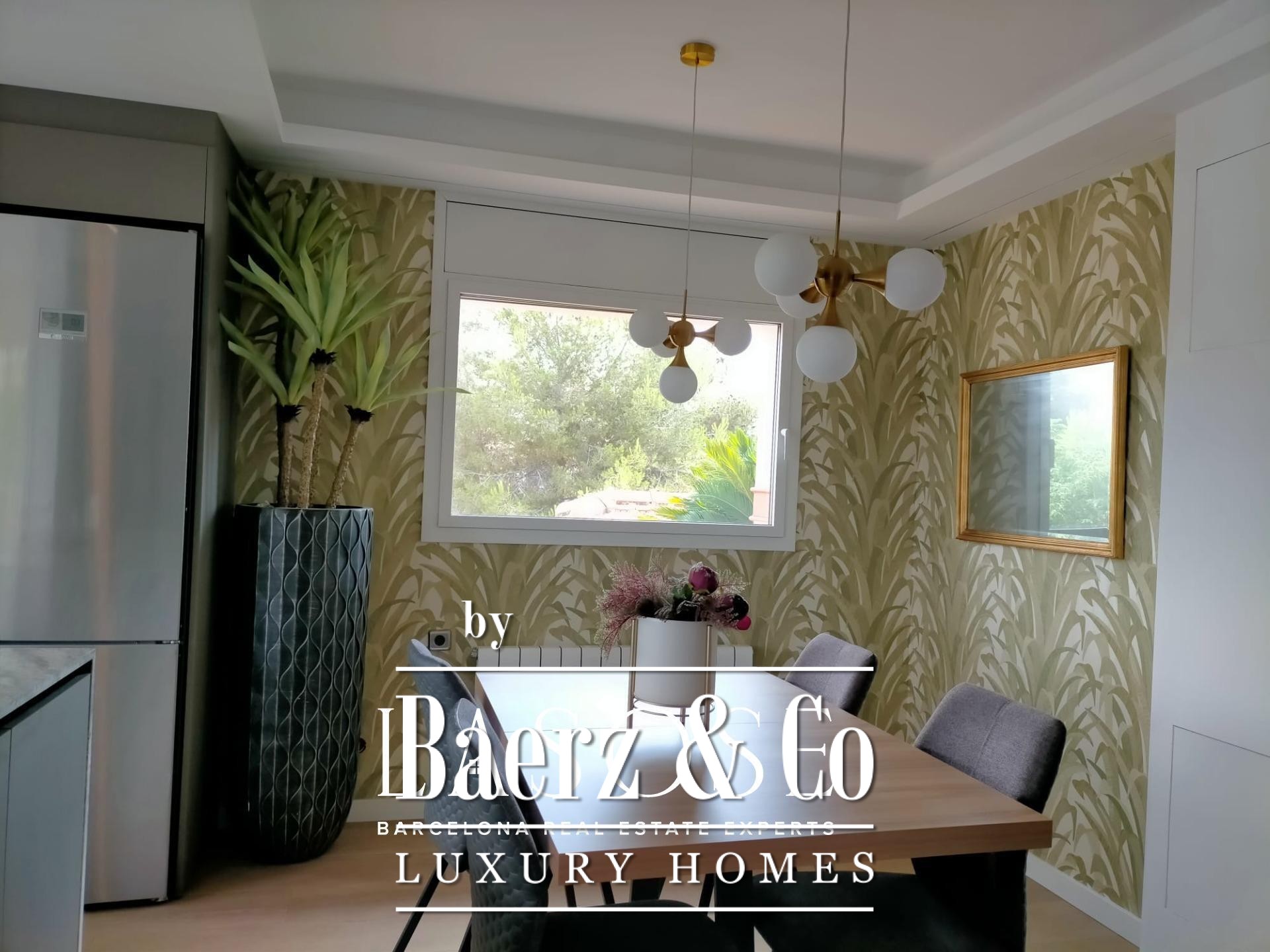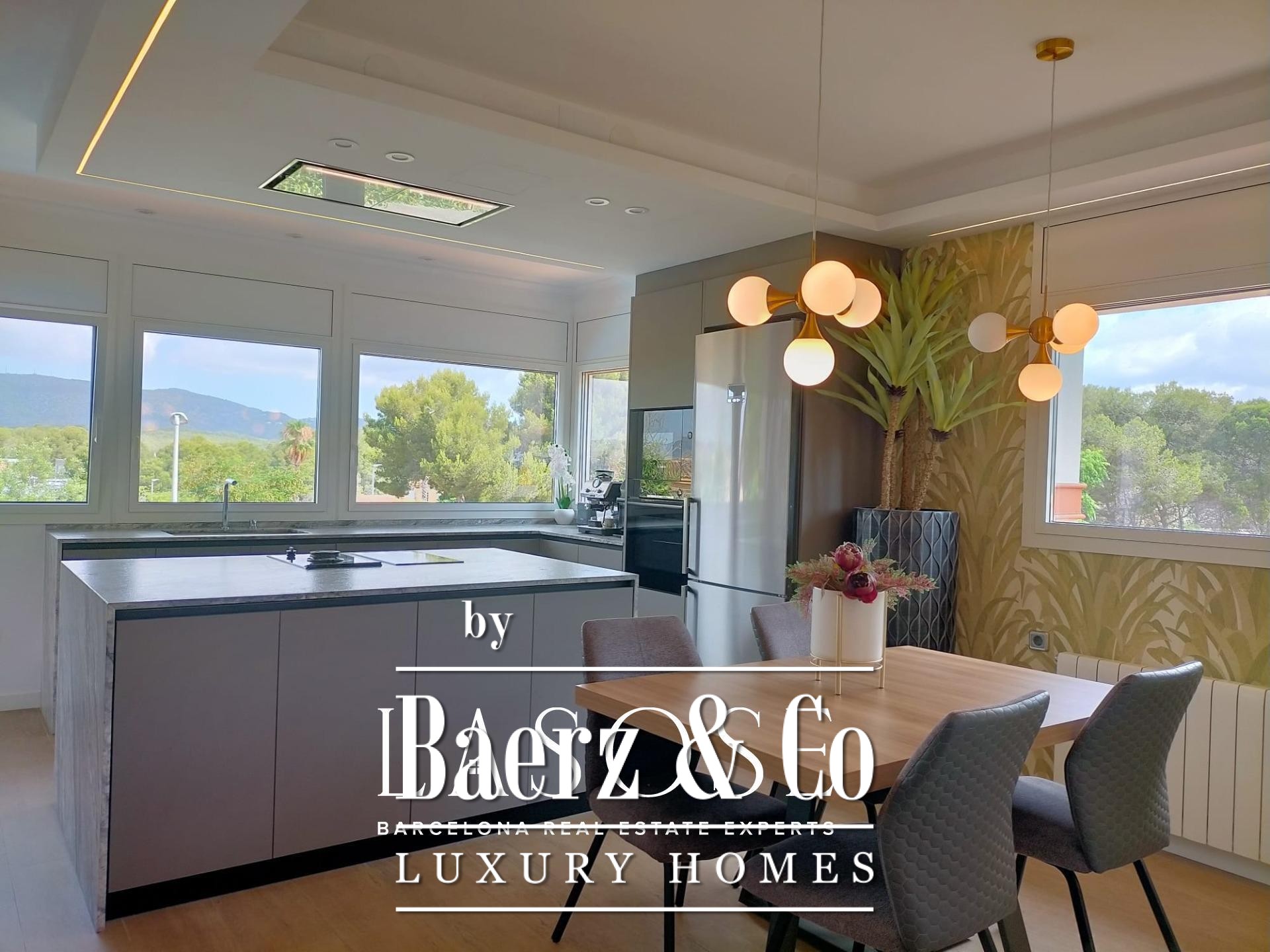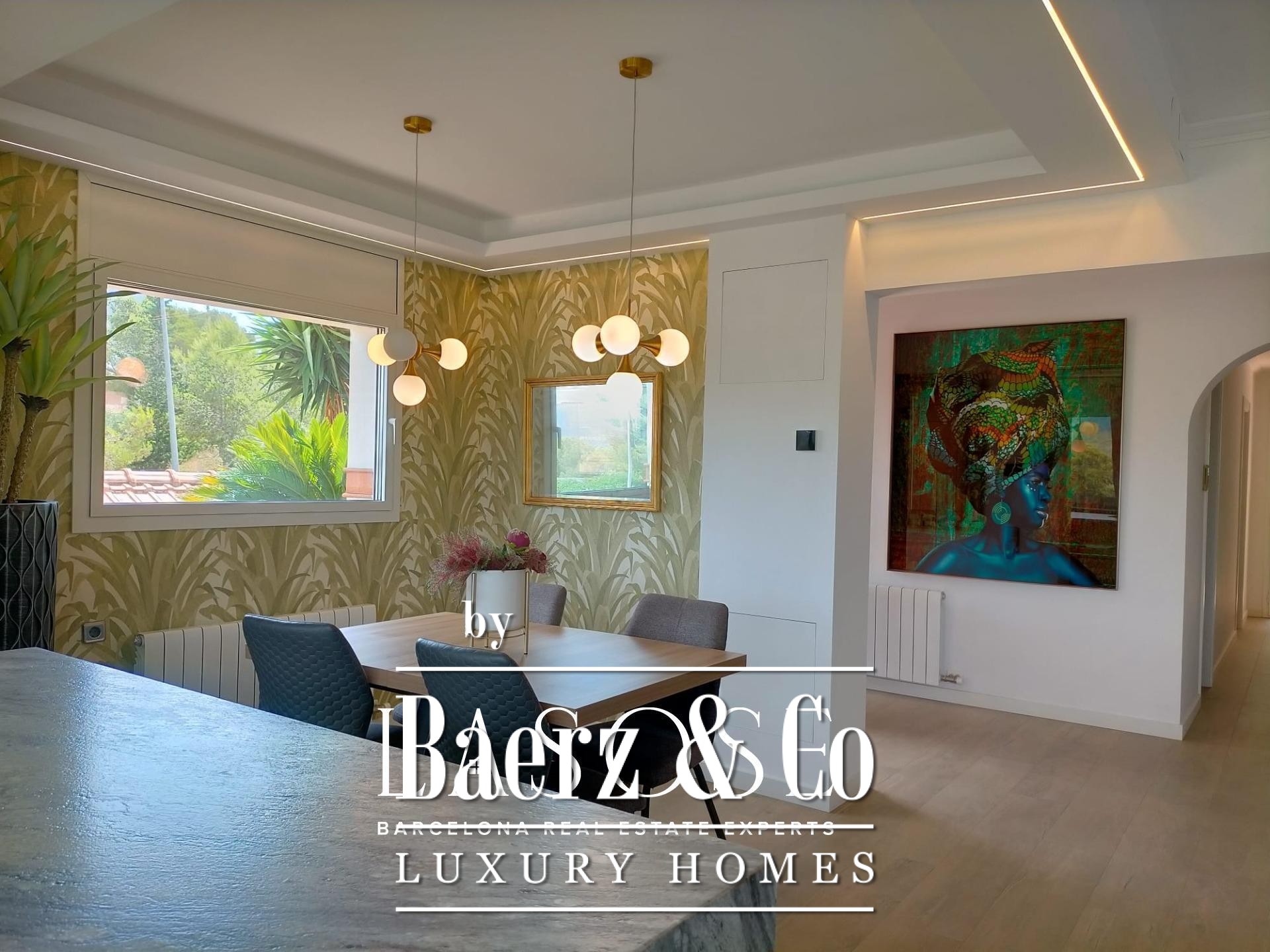 LASOSE proudly presents this remarkable 5-bedroom, 3-bathroom villa located in the prestigious residential area of Els Cards, one of the most desirable districts between Sitges and Sant Pere de Ribes. Set on an elevated position, the property enjoys panoramic views over the surrounding landscape, offering privacy, natural light and a serene atmosphere just minutes from the coast.. . This residence beautifully blends traditional Spanish character with contemporary elegance. Recently renovated interiors showcase modern finishes while preserving architectural charm, including arches, warm tones and natural textures. The open-plan layout creates a seamless flow between the kitchen, dining area and living room, all bathed in sunlight from windows on two sides. A stylish fireplace adds a cozy focal point, perfect for gatherings throughout the year.. . The fully renovated kitchen is both sophisticated and functional. It features a central island topped with striking Brazilian granite, generous storage and direct connection to the dining space. The abundance of natural light enhances the sense of space, and the layout is ideal for families and for entertaining.. . The villa offers five bright bedrooms, including a spacious master suite designed for total comfort and privacy. The en-suite bathroom features a bathtub, walk-in shower, double sink, bidet and the rare luxury of a private sauna—perfect for relaxation and wellbeing.. . Outdoor living is one of the property’s greatest highlights. Step out to a beautifully maintained garden with real grass, mature trees—including