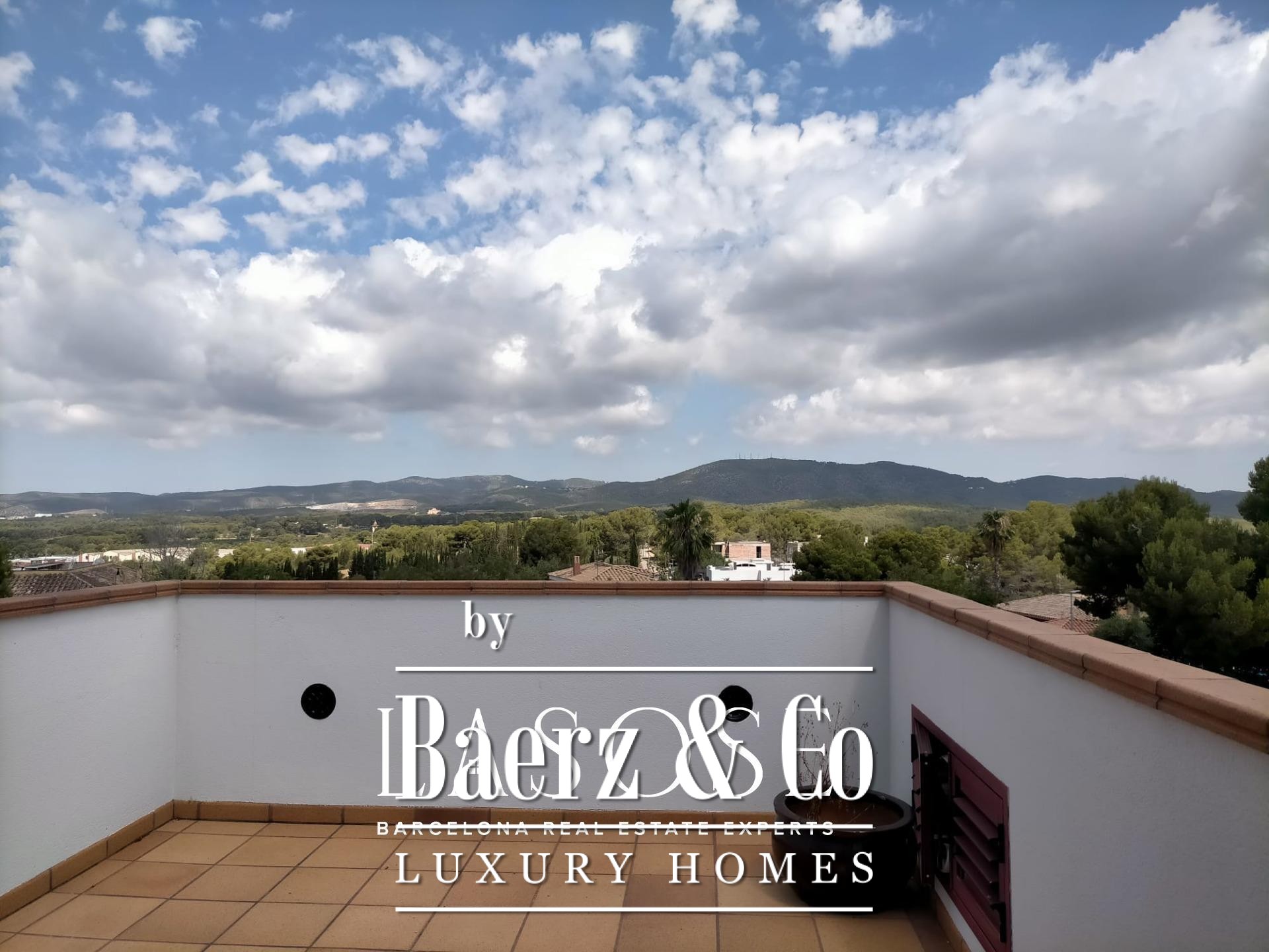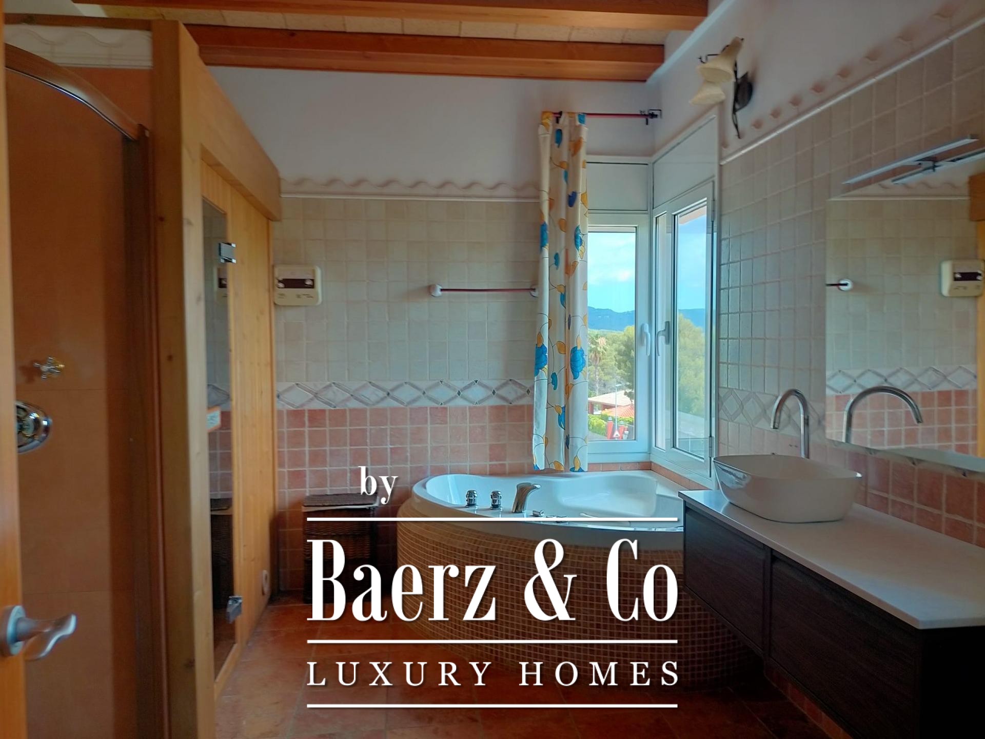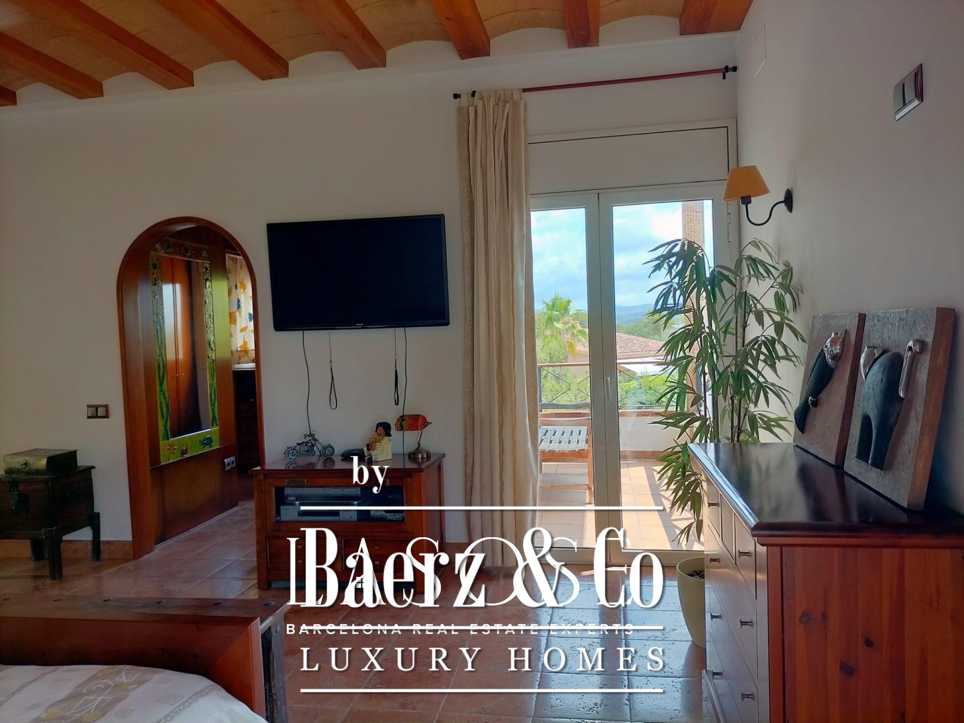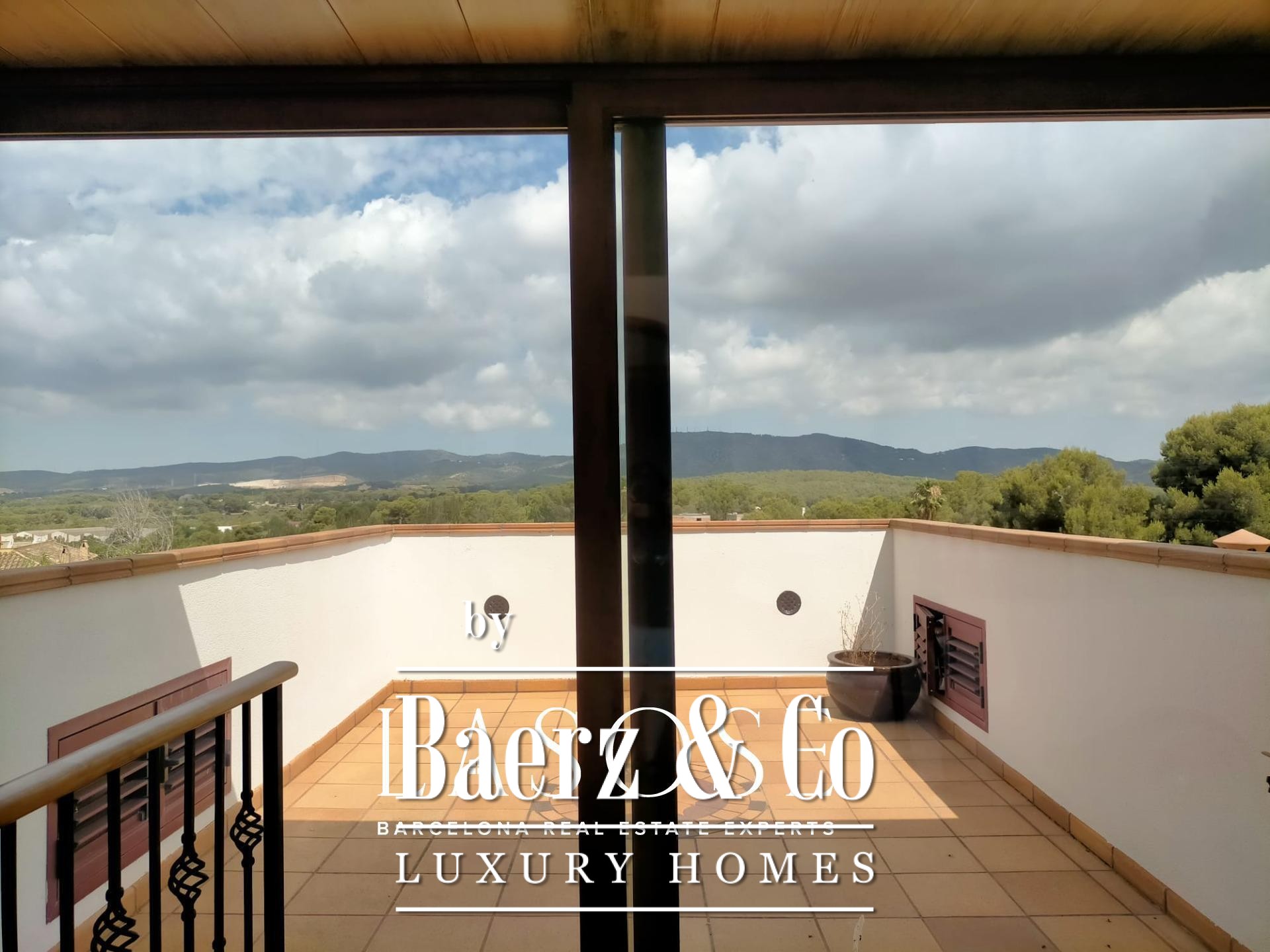 LASOSE proudly presents this remarkable 5-bedroom, 3-bathroom villa located in the prestigious residential area of Els Cards, one of the most desirable districts between Sitges and Sant Pere de Ribes. Set on an elevated position, the property enjoys panoramic views over the surrounding landscape, offering privacy, natural light and a serene atmosphere just minutes from the coast.. . This residence beautifully blends traditional Spanish character with contemporary elegance. Recently renovated interiors showcase modern finishes while preserving architectural charm, including arches, warm tones and natural textures. The open-plan layout creates a seamless flow between the kitchen, dining area and living room, all bathed in sunlight from windows on two sides. A stylish fireplace adds a cozy focal point, perfect for gatherings throughout the year.. . The fully renovated kitchen is both sophisticated and functional. It features a central island topped with striking Brazilian granite, generous storage and direct connection to the dining space. The abundance of natural light enhances the sense of space, and the layout is ideal for families and for entertaining.. . The villa offers five bright bedrooms, including a spacious master suite designed for total comfort and privacy. The en-suite bathroom features a bathtub, walk-in shower, double sink, bidet and the rare luxury of a private sauna—perfect for relaxation and wellbeing.. . Outdoor living is one of the property’s greatest highlights. Step out to a beautifully maintained garden with real grass, mature trees—including
