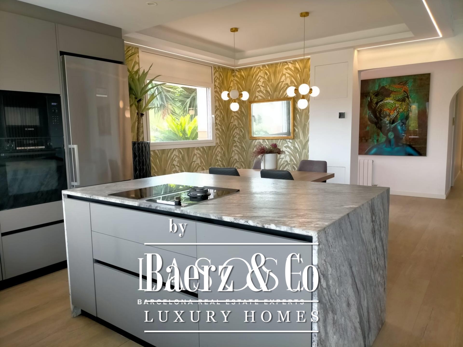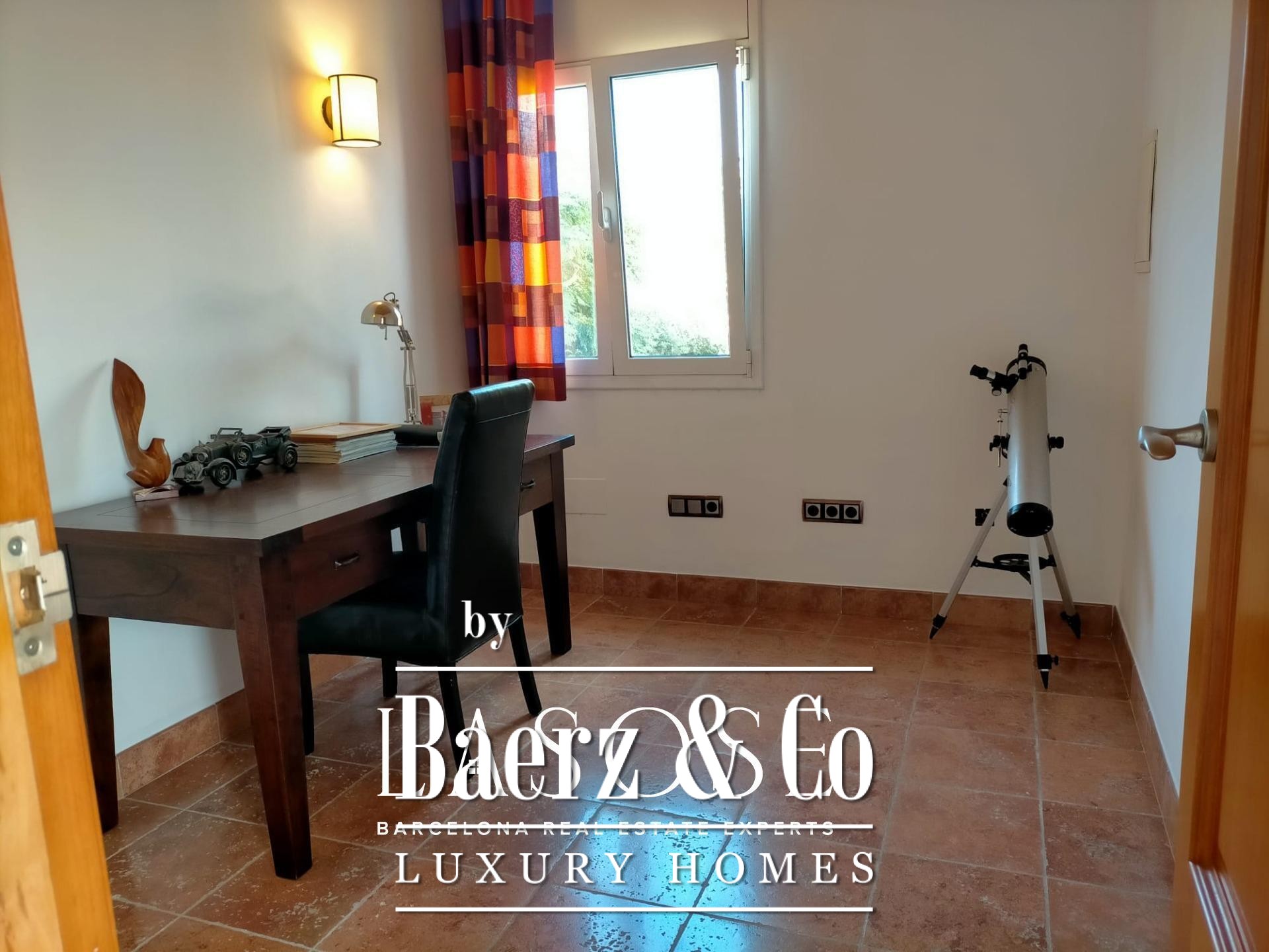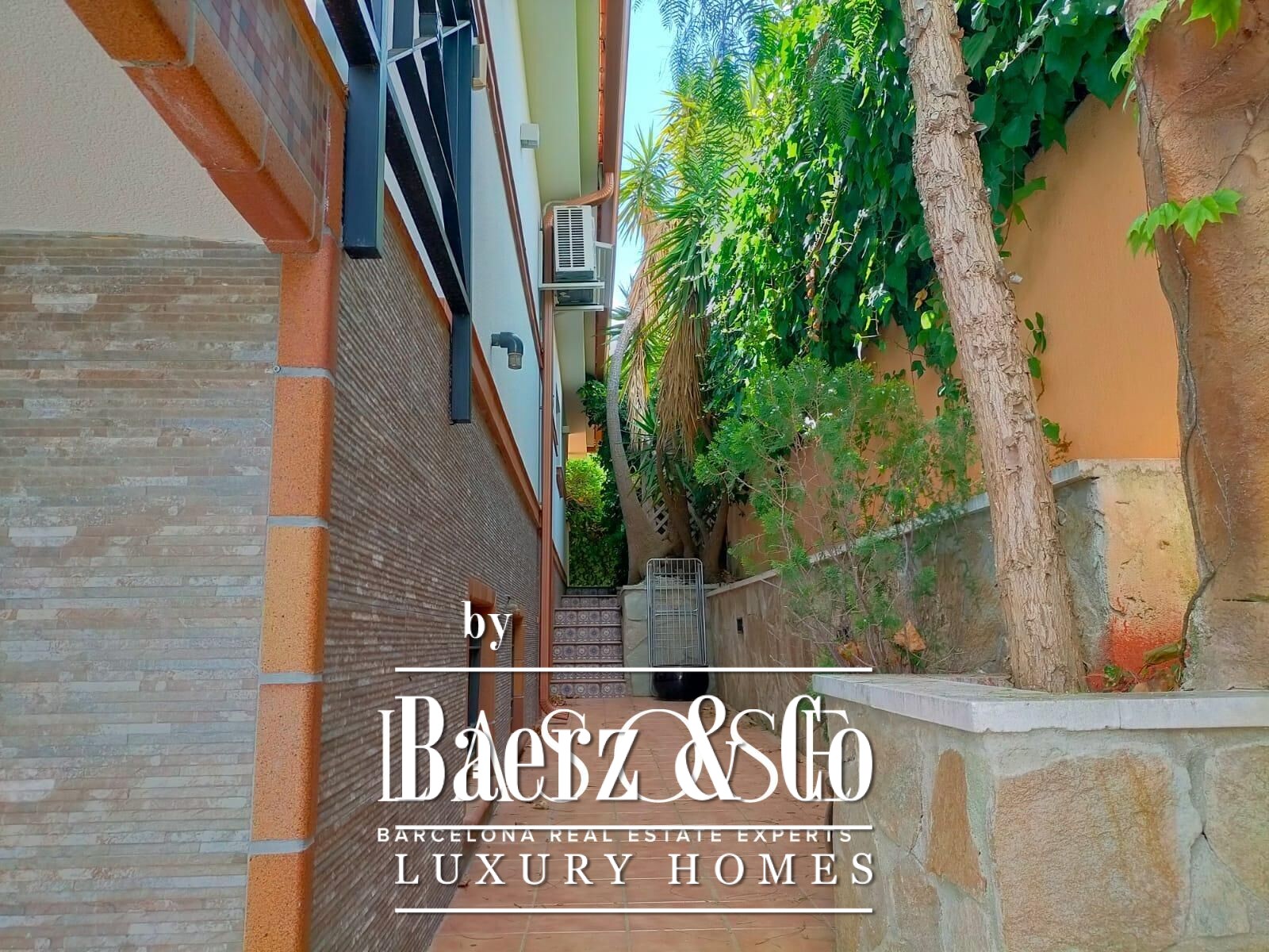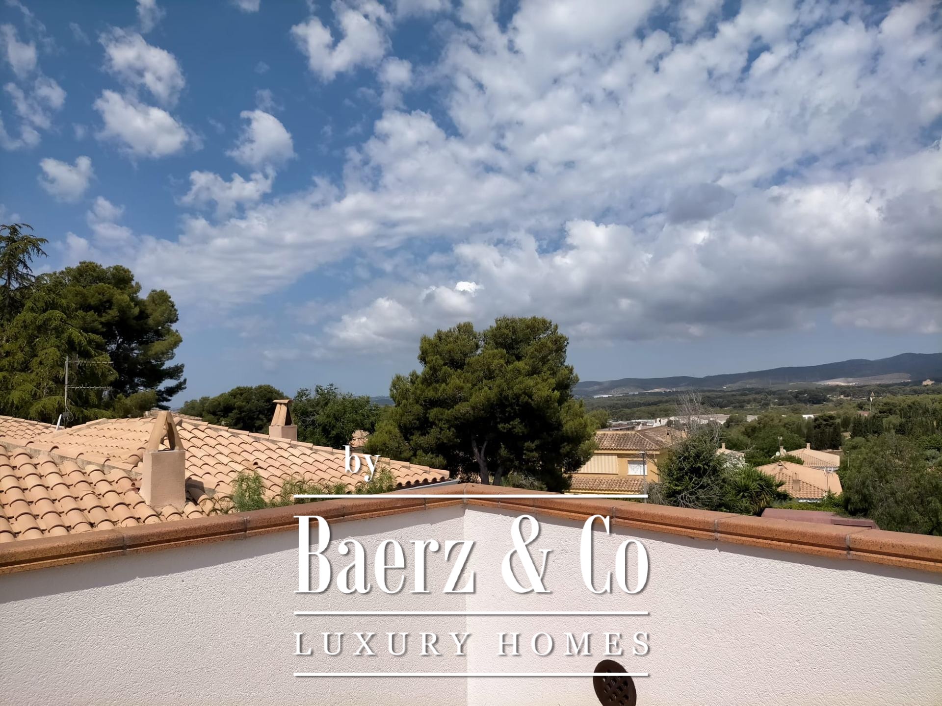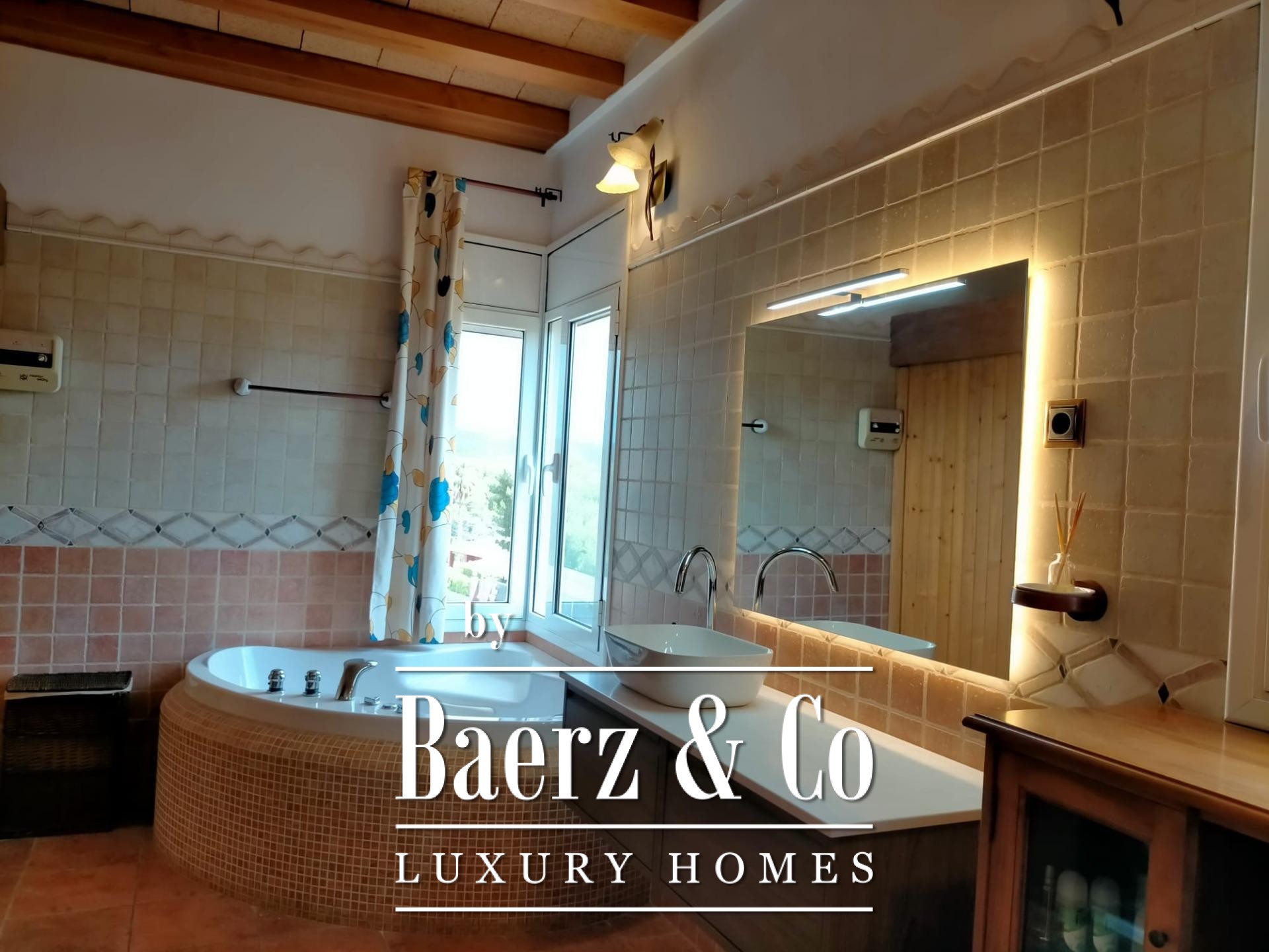 LASOSE proudly presents this remarkable 5-bedroom, 3-bathroom villa located in the prestigious residential area of Els Cards, one of the most desirable districts between Sitges and Sant Pere de Ribes. Set on an elevated position, the property enjoys panoramic views over the surrounding landscape, offering privacy, natural light and a serene atmosphere just minutes from the coast.. . This residence beautifully blends traditional Spanish character with contemporary elegance. Recently renovated interiors showcase modern finishes while preserving architectural charm, including arches, warm tones and natural textures. The open-plan layout creates a seamless flow between the kitchen, dining area and living room, all bathed in sunlight from windows on two sides. A stylish fireplace adds a cozy focal point, perfect for gatherings throughout the year.. . The fully renovated kitchen is both sophisticated and functional. It features a central island topped with striking Brazilian granite, generous storage and direct connection to the dining space. The abundance of natural light enhances the sense of space, and the layout is ideal for families and for entertaining.. . The villa offers five bright bedrooms, including a spacious master suite designed for total comfort and privacy. The en-suite bathroom features a bathtub, walk-in shower, double sink, bidet and the rare luxury of a private sauna—perfect for relaxation and wellbeing.. . Outdoor living is one of the property’s greatest highlights. Step out to a beautifully maintained garden with real grass, mature trees—including