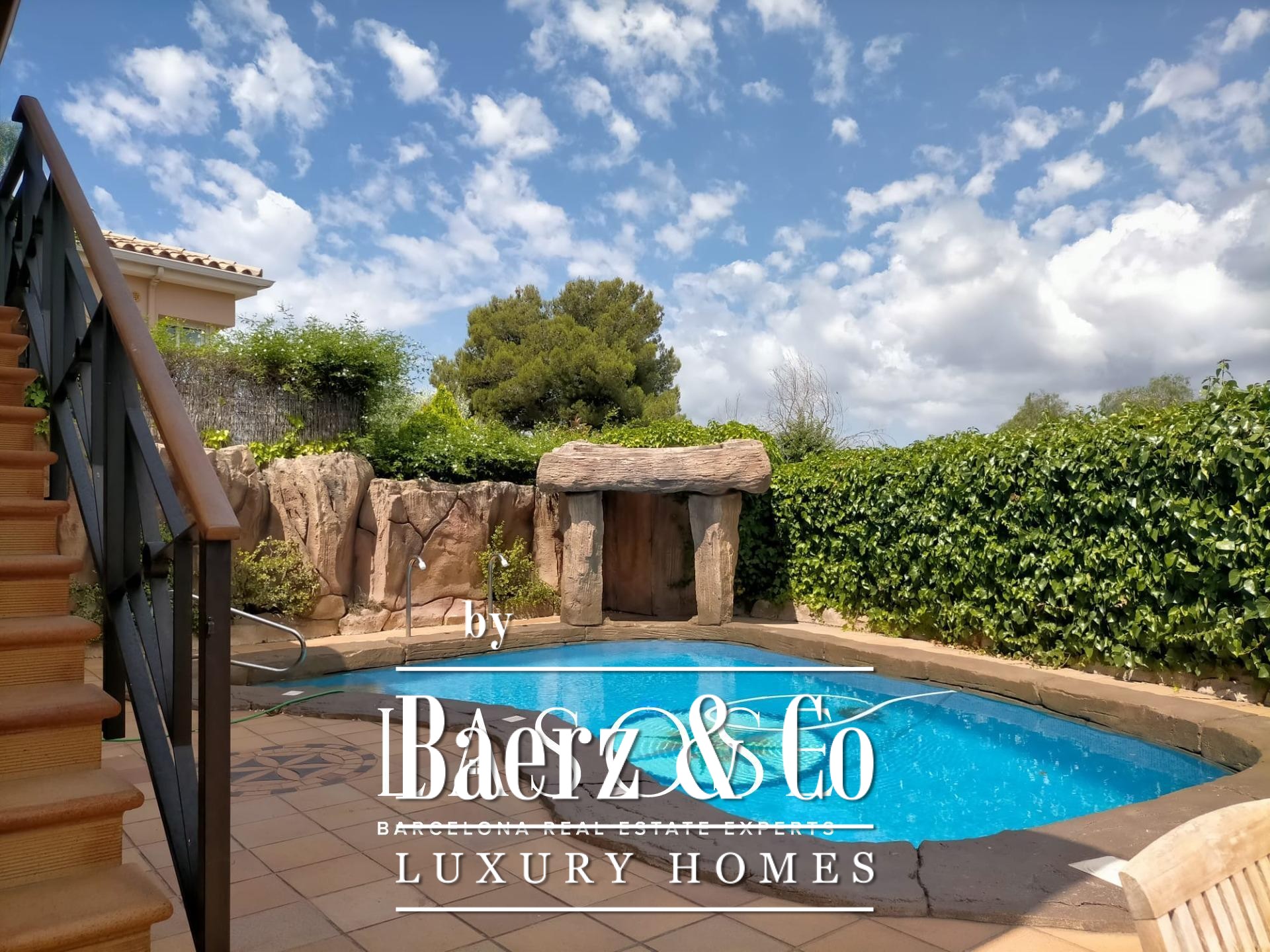 a magnificent olive tree—and charming Mediterranean landscaping. The impressive swimming pool is surrounded by natural rock elements and a cascading feature that evokes a private retreat. This enchanting setting is designed for sunny afternoons, family time, outdoor dining or hosting friends.. . Additional advantages include a large private garage and storage room, providing ample space for vehicles, sports equipment and seasonal items.. . The location is ideal for those seeking tranquillity with easy access to the best of the Mediterranean lifestyle. The beaches of Sitges and Vilanova, the mountains of Garraf Natural Park, international schools and vibrant town amenities are all just a short drive away. Barcelona Airport is approximately 20–30 minutes away, making the area convenient for frequent travellers and second-home buyers.. . Sitges and Sant Pere de Ribes are renowned for their quality of life. Sitges, often called the “Spanish Saint-Tropez,” is famous for its golden sandy beaches, charming old town, marinas, festivals, gastronomy and cosmopolitan atmosphere. The area enjoys a privileged microclimate and a blend of modern living with traditional Catalan charm.. . This villa represents a rare opportunity to acquire an elegant, spacious and characterful home in one of the most sought-after areas near Barcelona. Whether as a year-round residence, vacation home or investment, it offers exceptional lifestyle value, breathtaking views and timeless appeal.. . Enquire today to experience this extraordinary property for yourself.