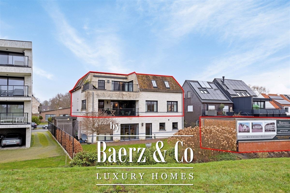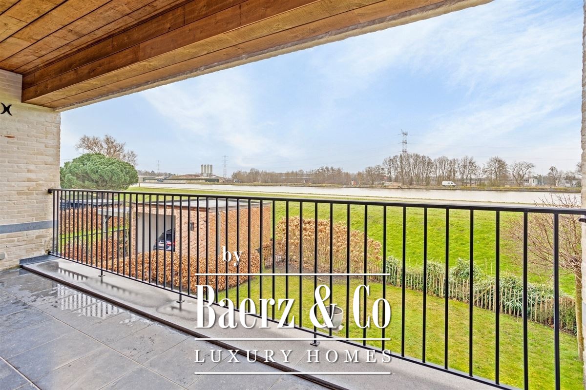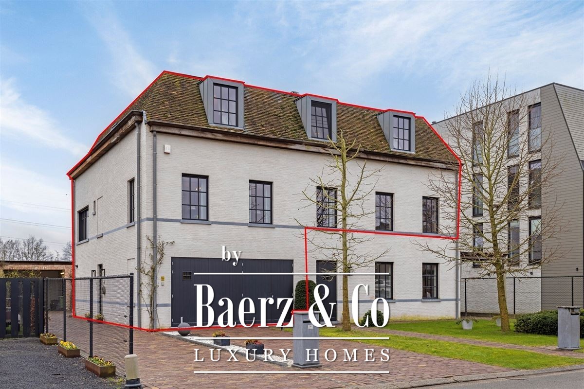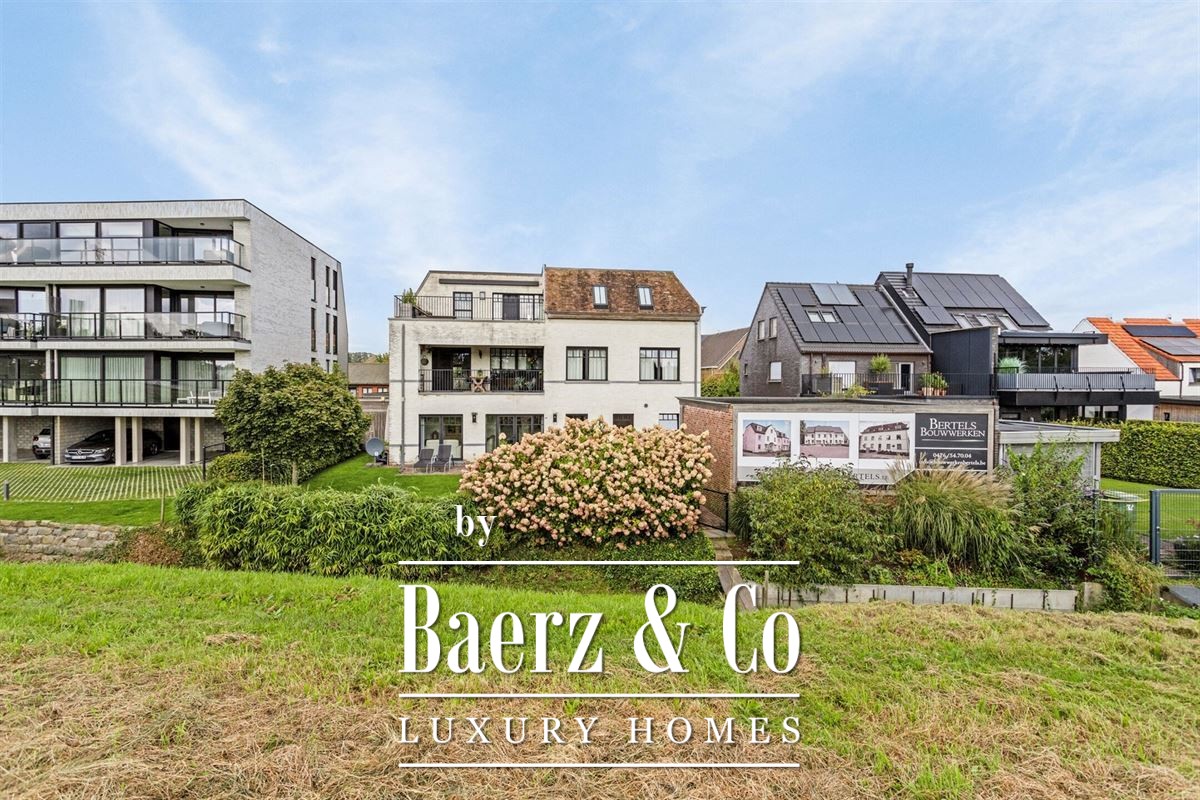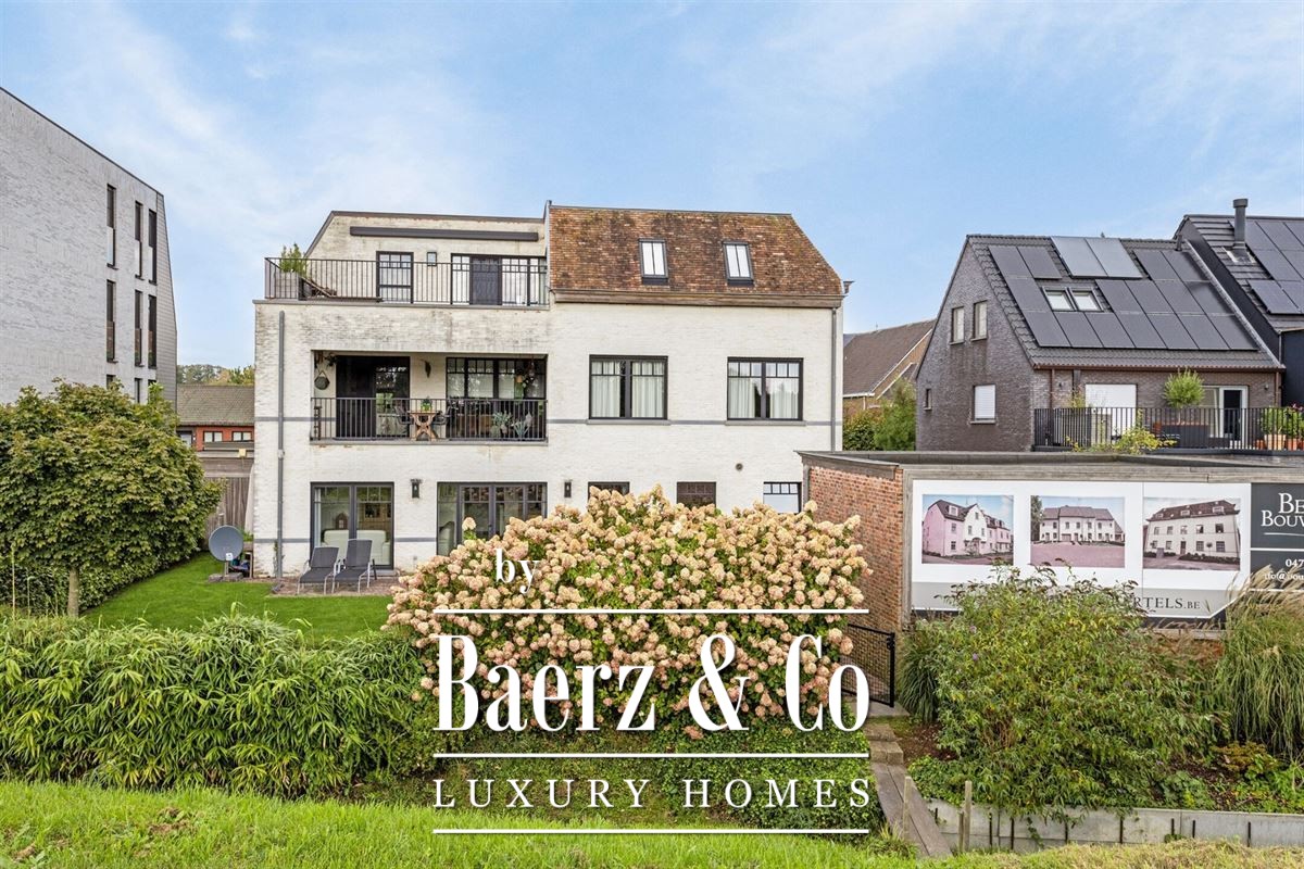 This duplex apartment Schilde occupies a unique vantage overlooking the Albertkanaal, a setting of remarkable tranquility just outside the heart of Schilde. With 364m² of living space and a plot of 656m², the property reveals its thoughtful composition from the moment of arrival: a secure garage, a carport, and an expansive basement of 182m² offer ample space for both function and imagination.