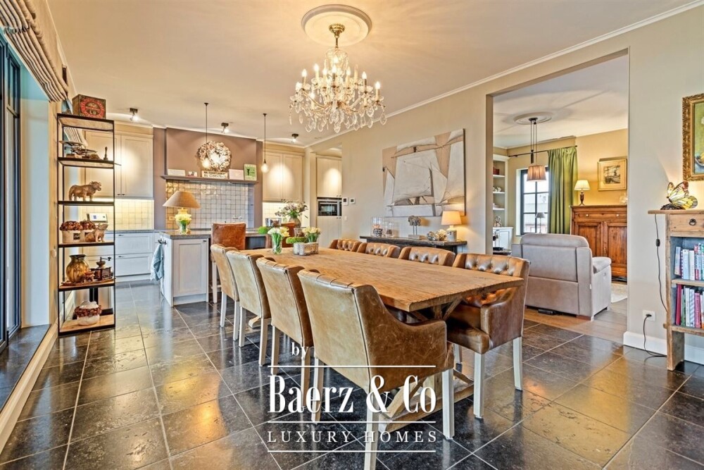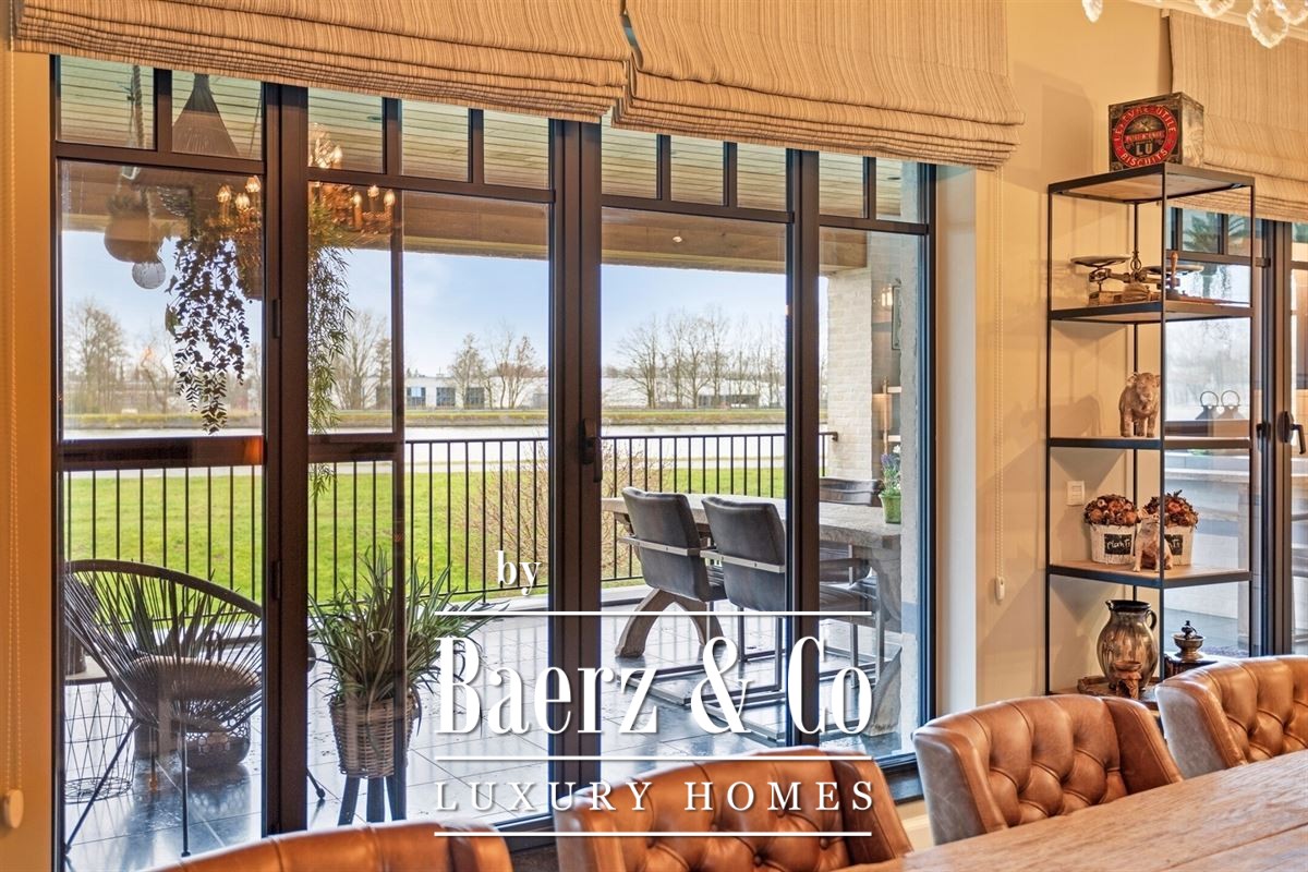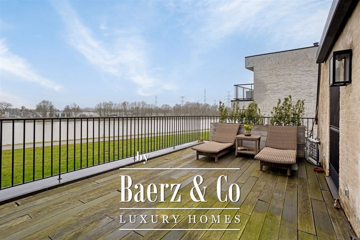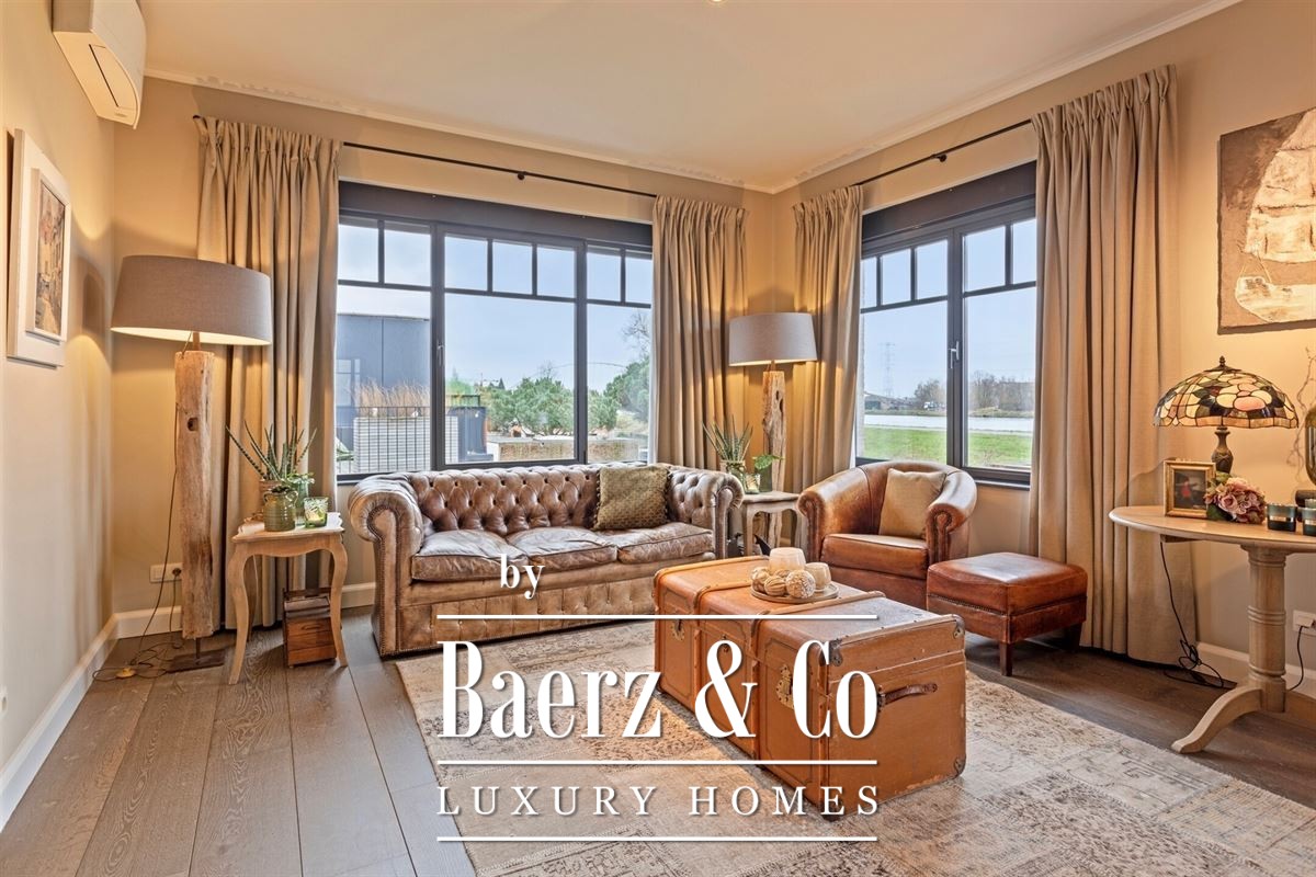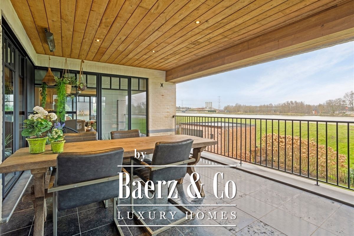 This duplex apartment Schilde occupies a unique vantage overlooking the Albertkanaal, a setting of remarkable tranquility just outside the heart of Schilde. With 364m² of living space and a plot of 656m², the property reveals its thoughtful composition from the moment of arrival: a secure garage, a carport, and an expansive basement of 182m² offer ample space for both function and imagination.