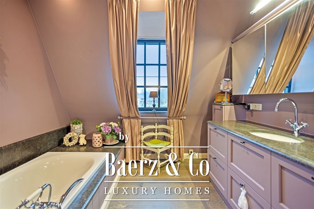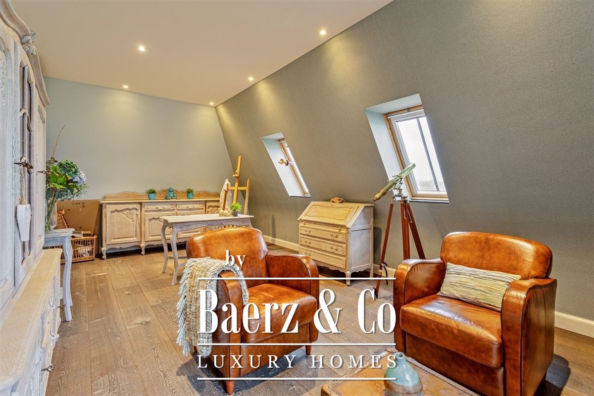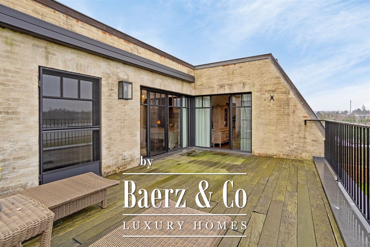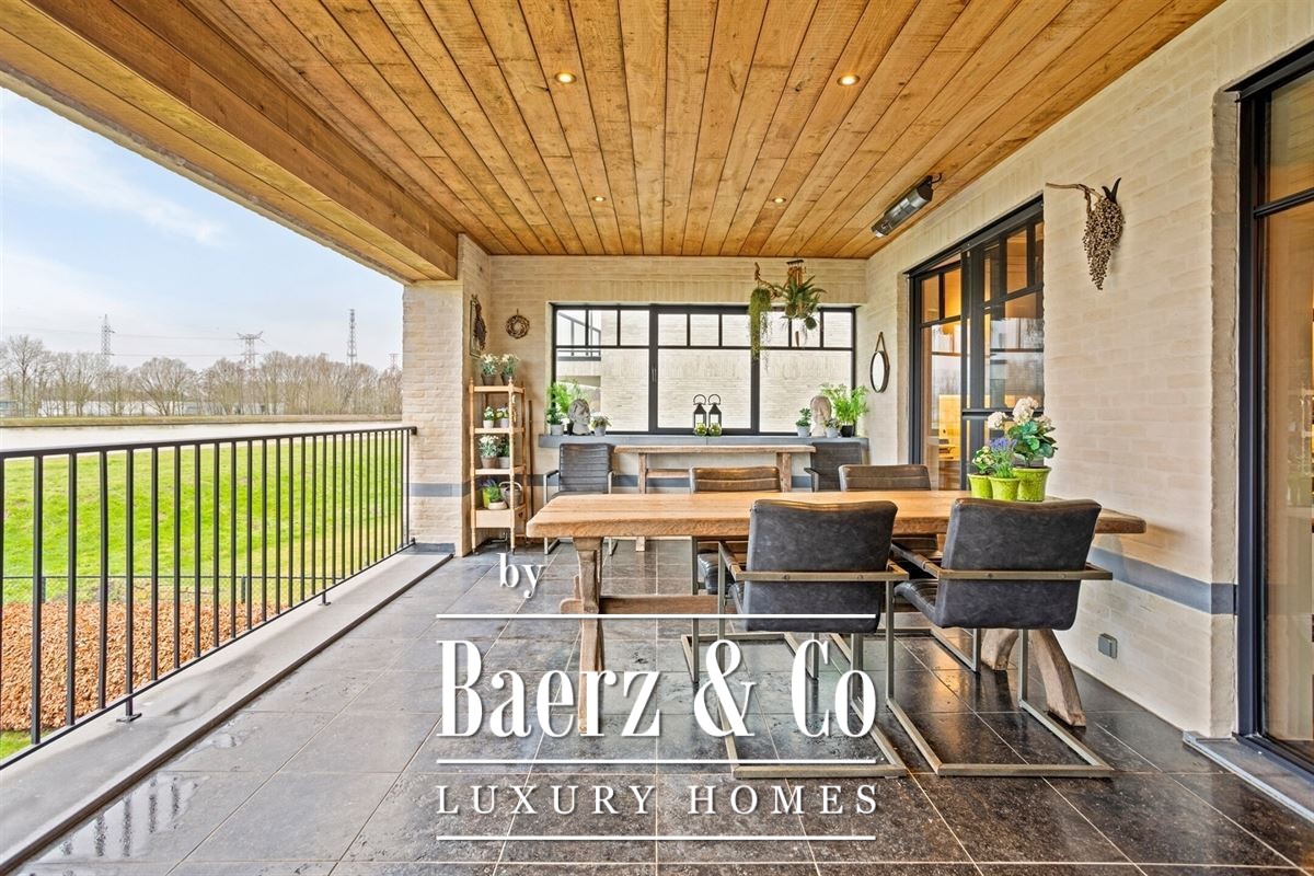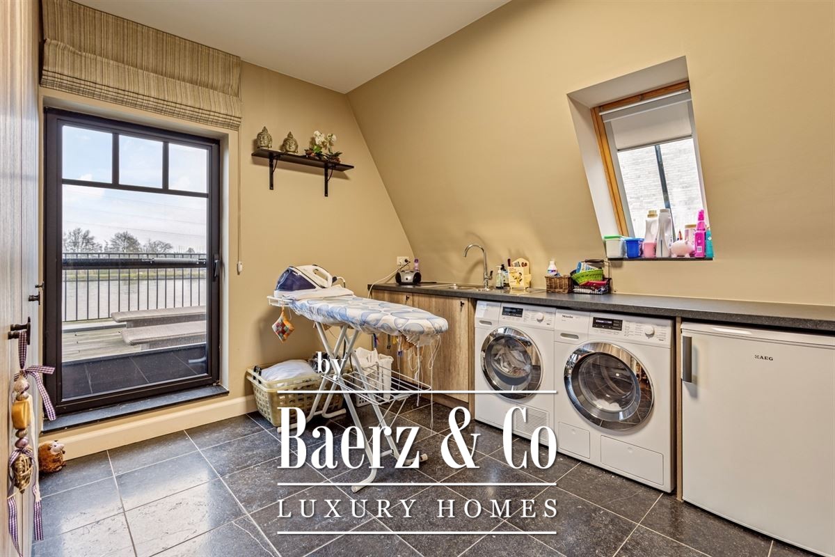 This duplex apartment Schilde occupies a unique vantage overlooking the Albertkanaal, a setting of remarkable tranquility just outside the heart of Schilde. With 364m² of living space and a plot of 656m², the property reveals its thoughtful composition from the moment of arrival: a secure garage, a carport, and an expansive basement of 182m² offer ample space for both function and imagination.