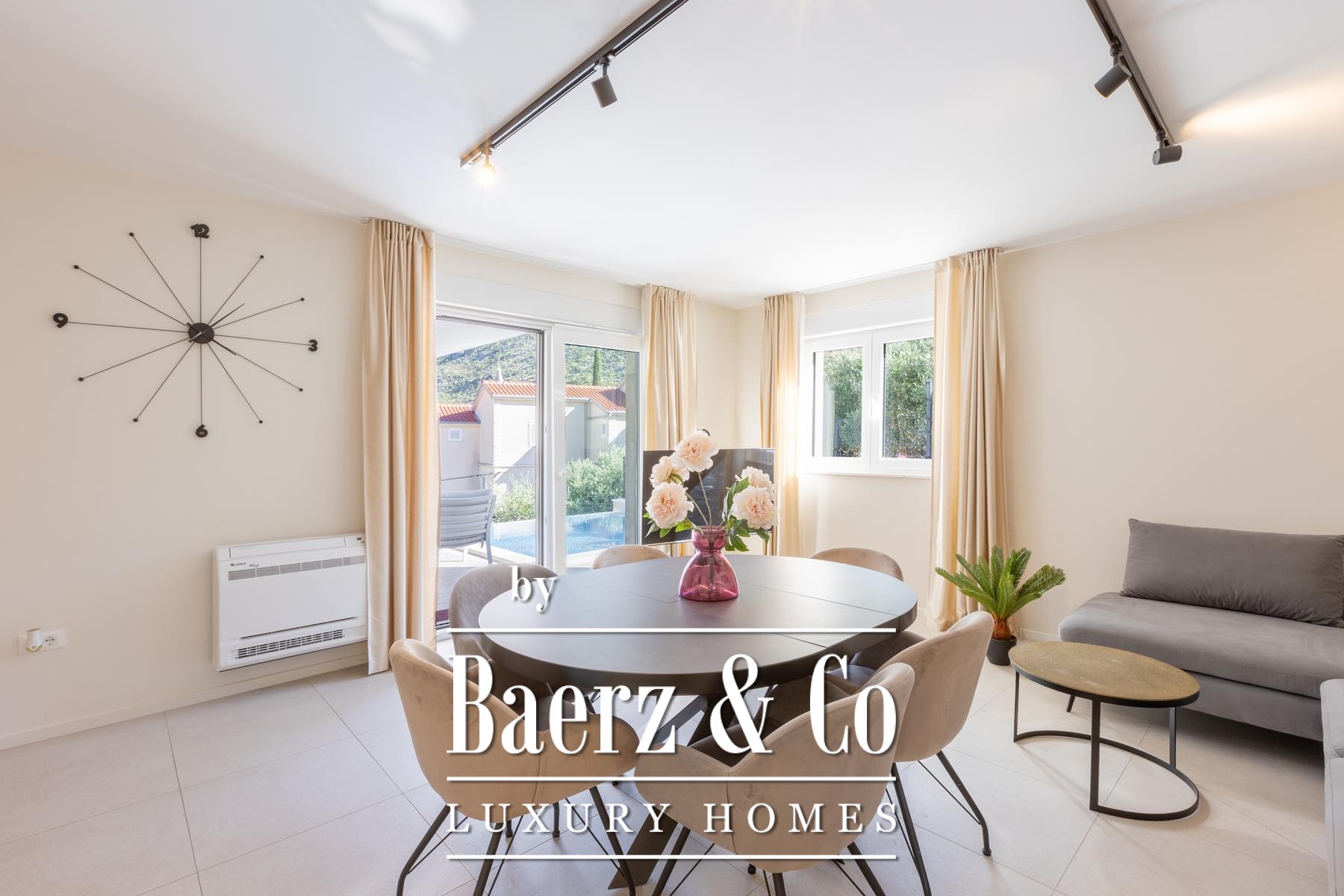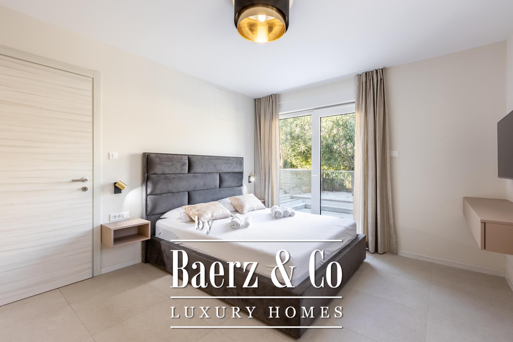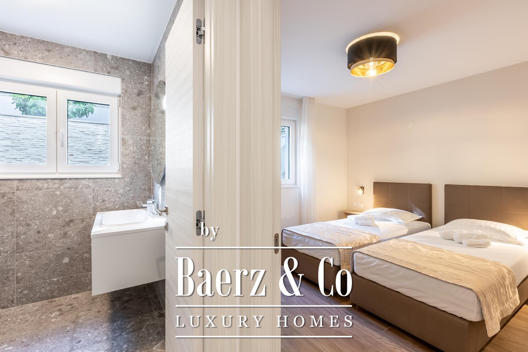 in 2019. where quality materials were used (stone wool facade 12 cm thick, stone on the facade and the environment: Travertine, Dolit, PVC windows GEALAN (3 seals, three-layer glass), aluminum wall SCHUCO, anti-burglary doors HORMANN, garage roller doors HORMANN, each the room has MITSUBISHI air conditioning, high-quality ceramics, sanitary ware, parquet and a complete set of furniture and appliances, an overflow pool - high-quality ceramics, heating, counter-current swimming, massage jets).Within a radius of 100 m there are shops, pharmacy, clinic, coffee bar, pizzeria, playground and park for children, school and other facilities.All other information on request.