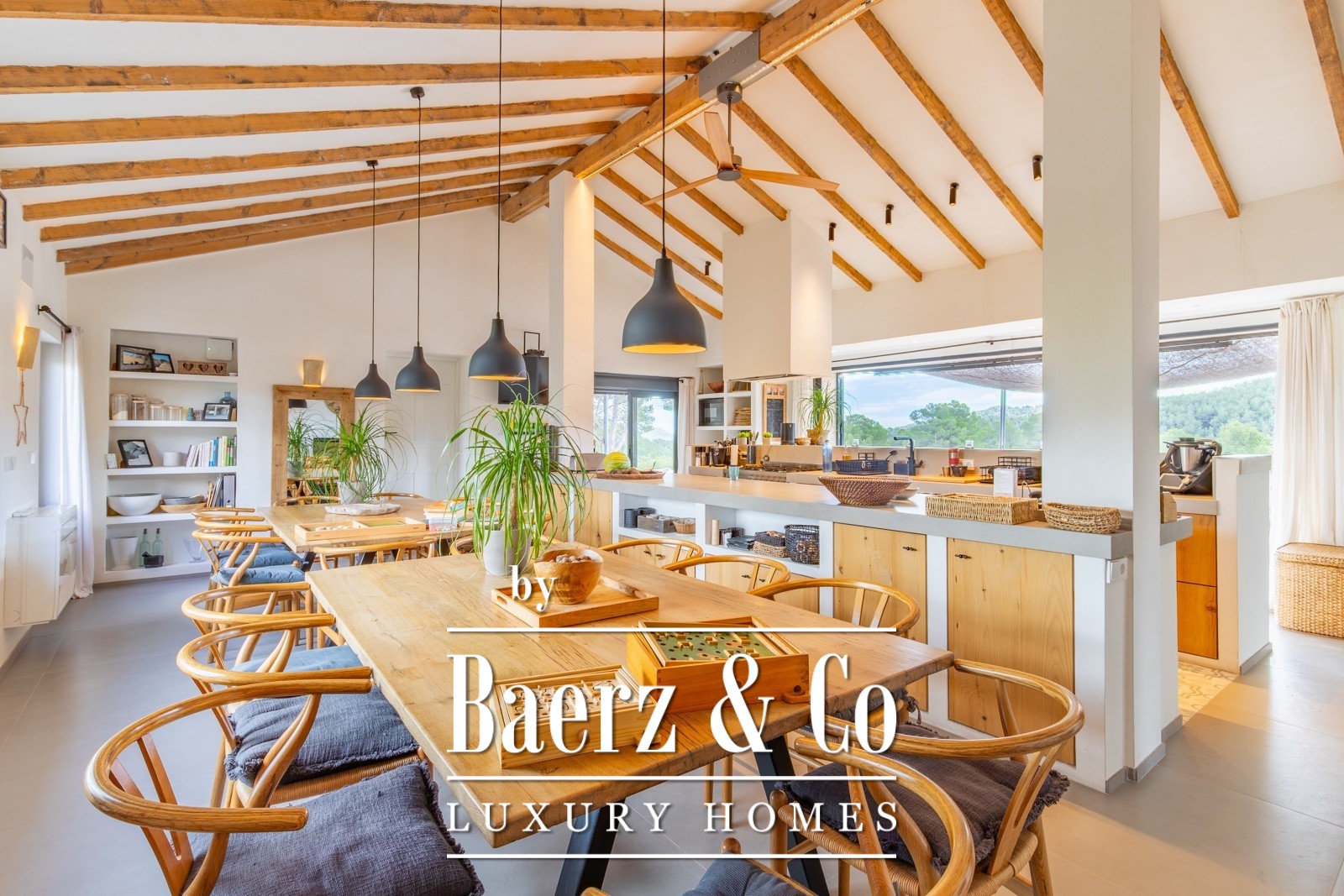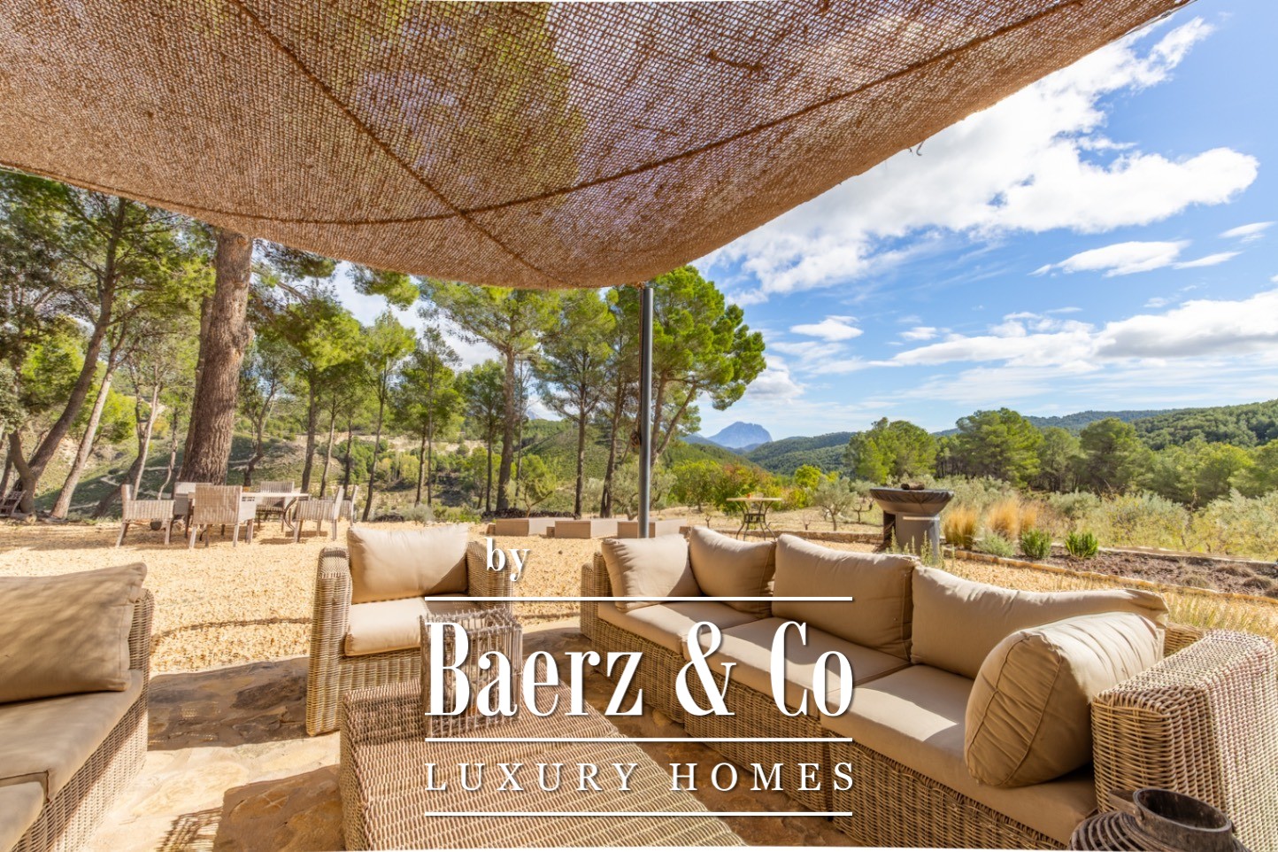 Finca Torremanzanas stands as a rare property type in one of Spain’s most tranquil inland regions. Set on 18 hectares of lush, Mediterranean land at 850 meters altitude, this beautifully revived estate is just 3 km from the village of Torremanzanas and offers panoramic views of Puig Campana. Thoughtfully renovated in 2022, the 450 m² main house merges refined modern finishes with authentic Mediterranean character. Each living space is bright and elegantly restrained, opening to a landscape planted with olive, almond and walnut trees.