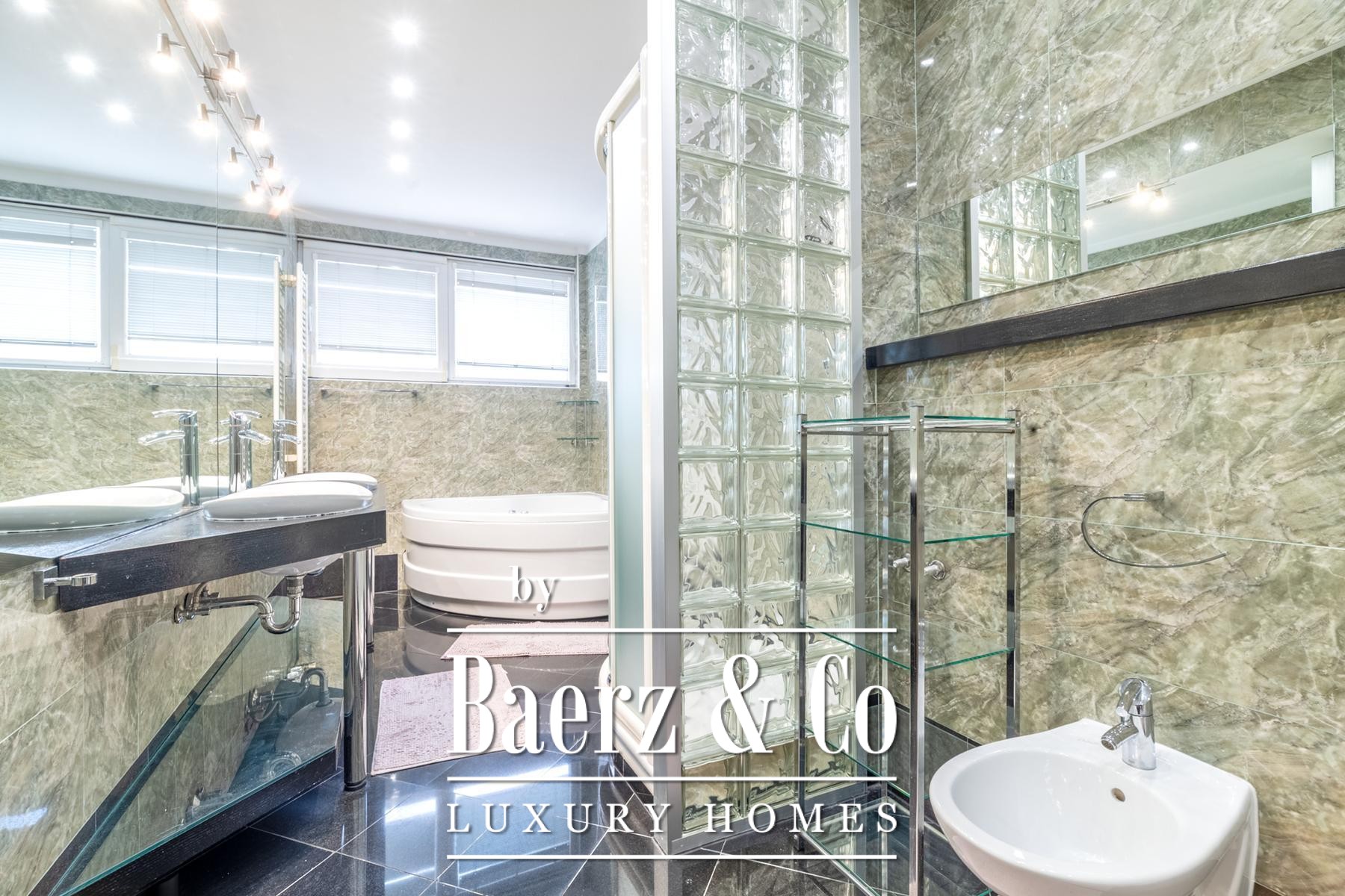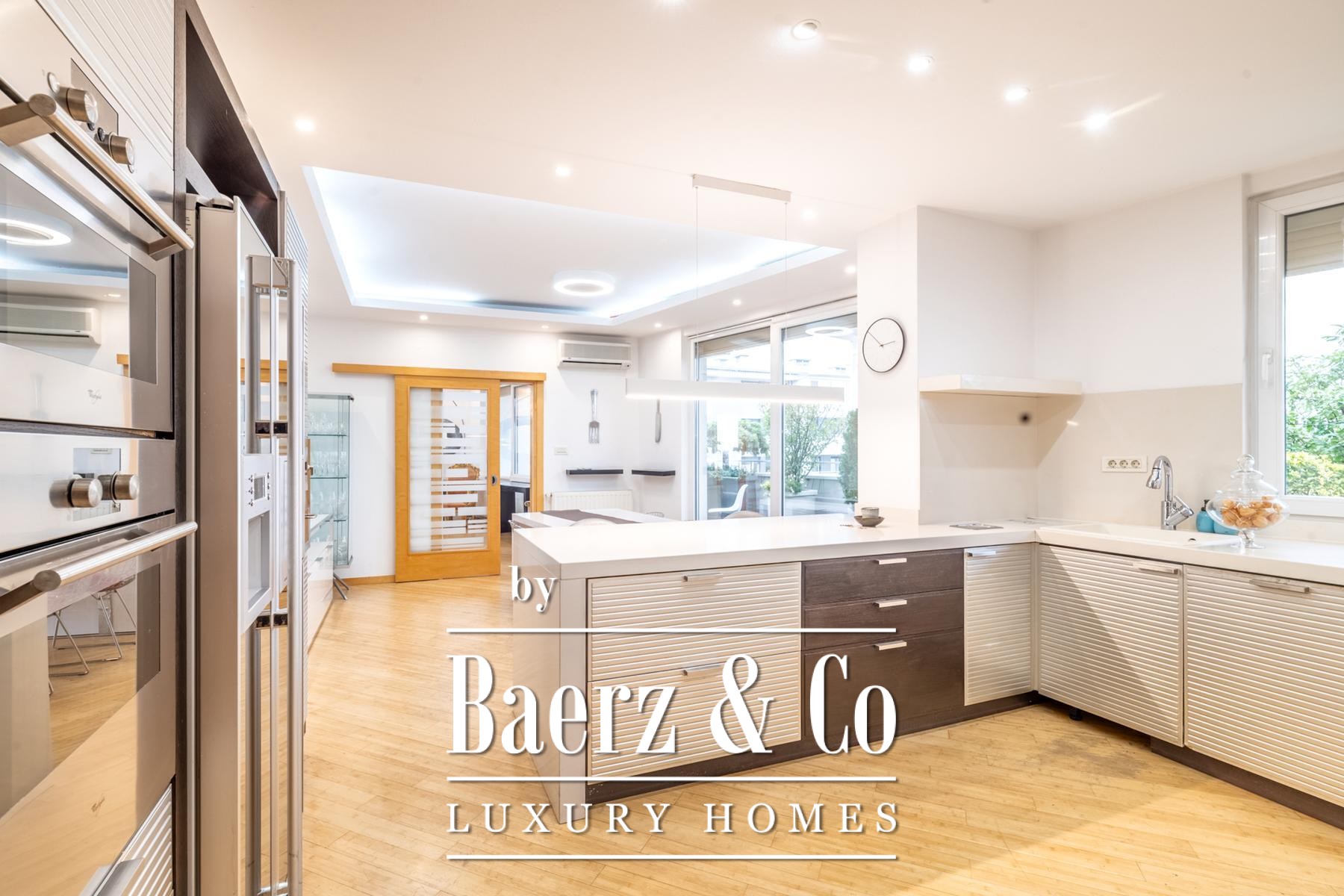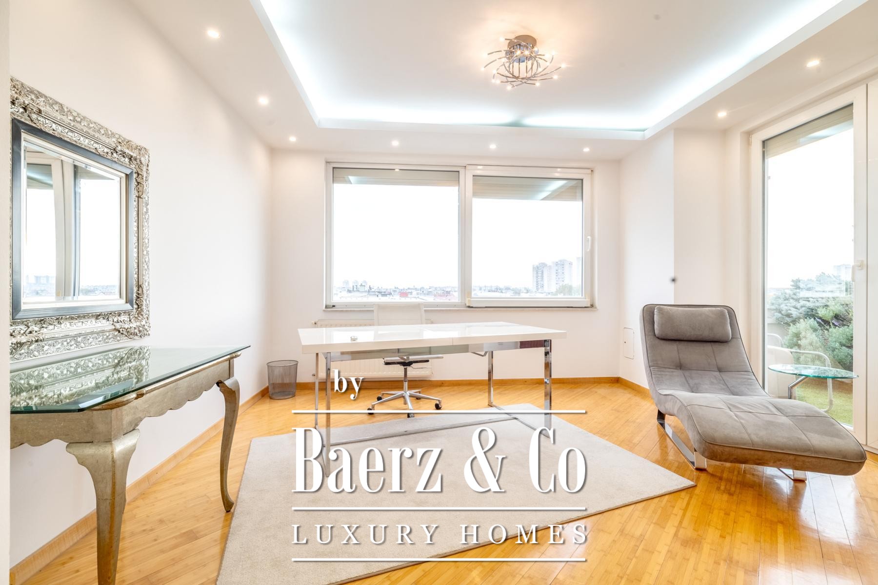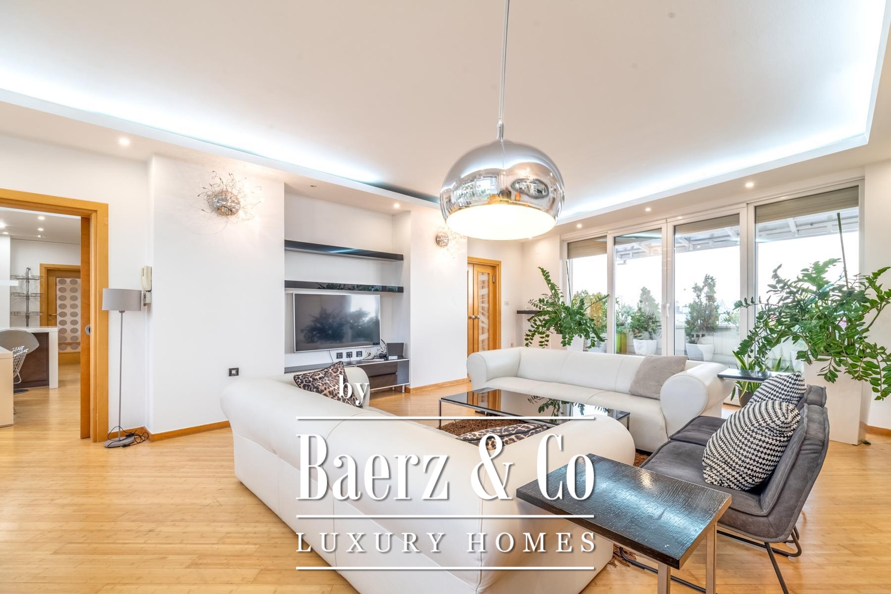 A legalized enclosed terrace has been thoughtfully reimagined as a serene 44 m² lounge, offering additional space for reflection or work. Fully air-conditioned interiors, laundry and storage rooms, as well as a guest WC, highlight both function and refinement.