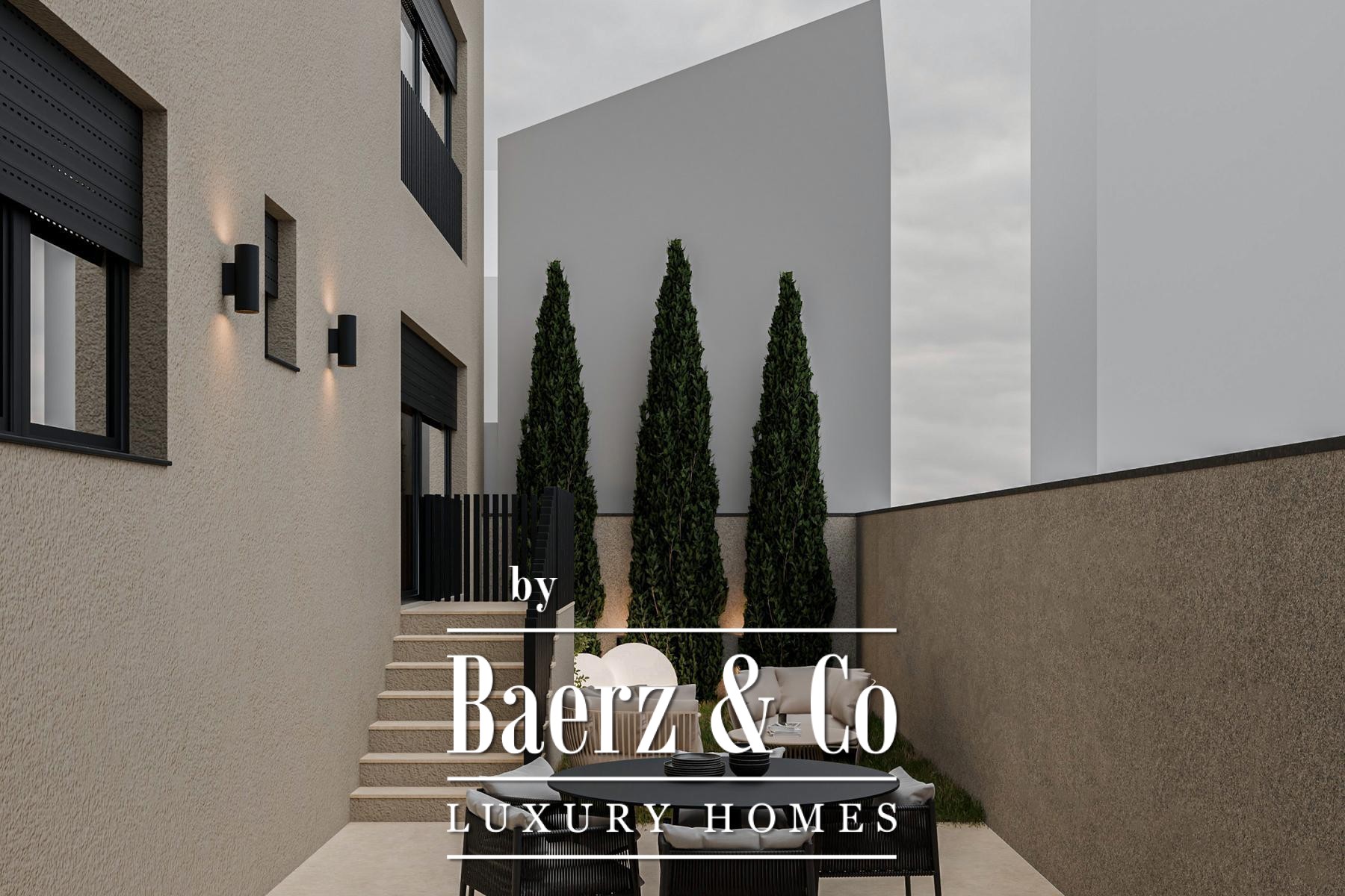 The upper level introduces a private entrance, expansive terrace, and bedrooms designed for calm and seclusion. An additional loggia features an integrated jacuzzi, extending indoor comfort to the outdoors. Finishes include three-layer parquet, top-tier ceramics, concealed mixers, premium bathroom fixtures, underfloor heating, a heat pump, and air conditioning with WiFi control. Details such as triple-glazed windows, electric shutters, and security doors underscore a commitment to quality and security.