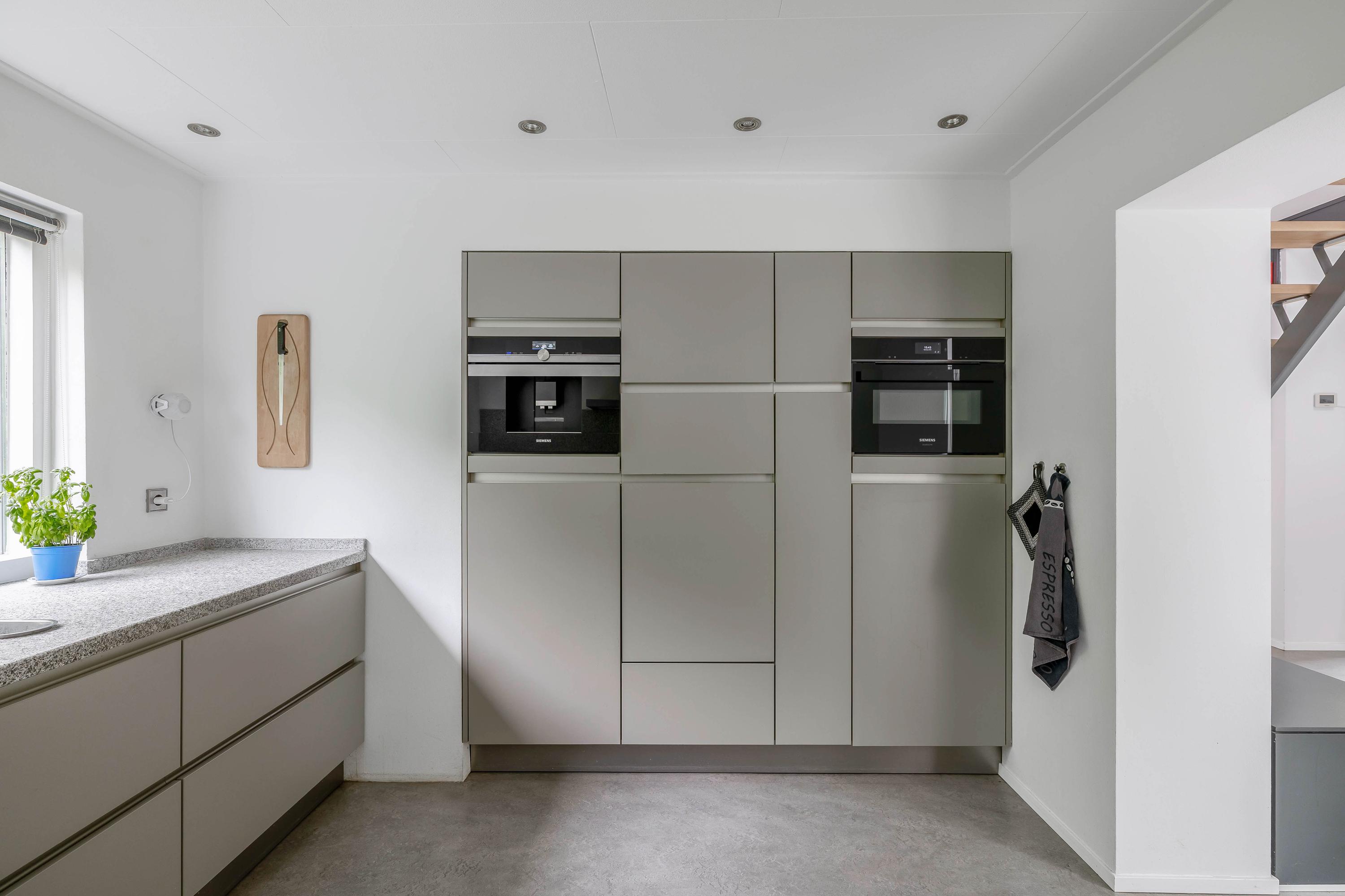 (milk) specialties, and a dishwasher at height! A large window provides plenty of natural light. Next to the kitchen, you will find a built-in cupboard containing the Inventum 300L boiler.