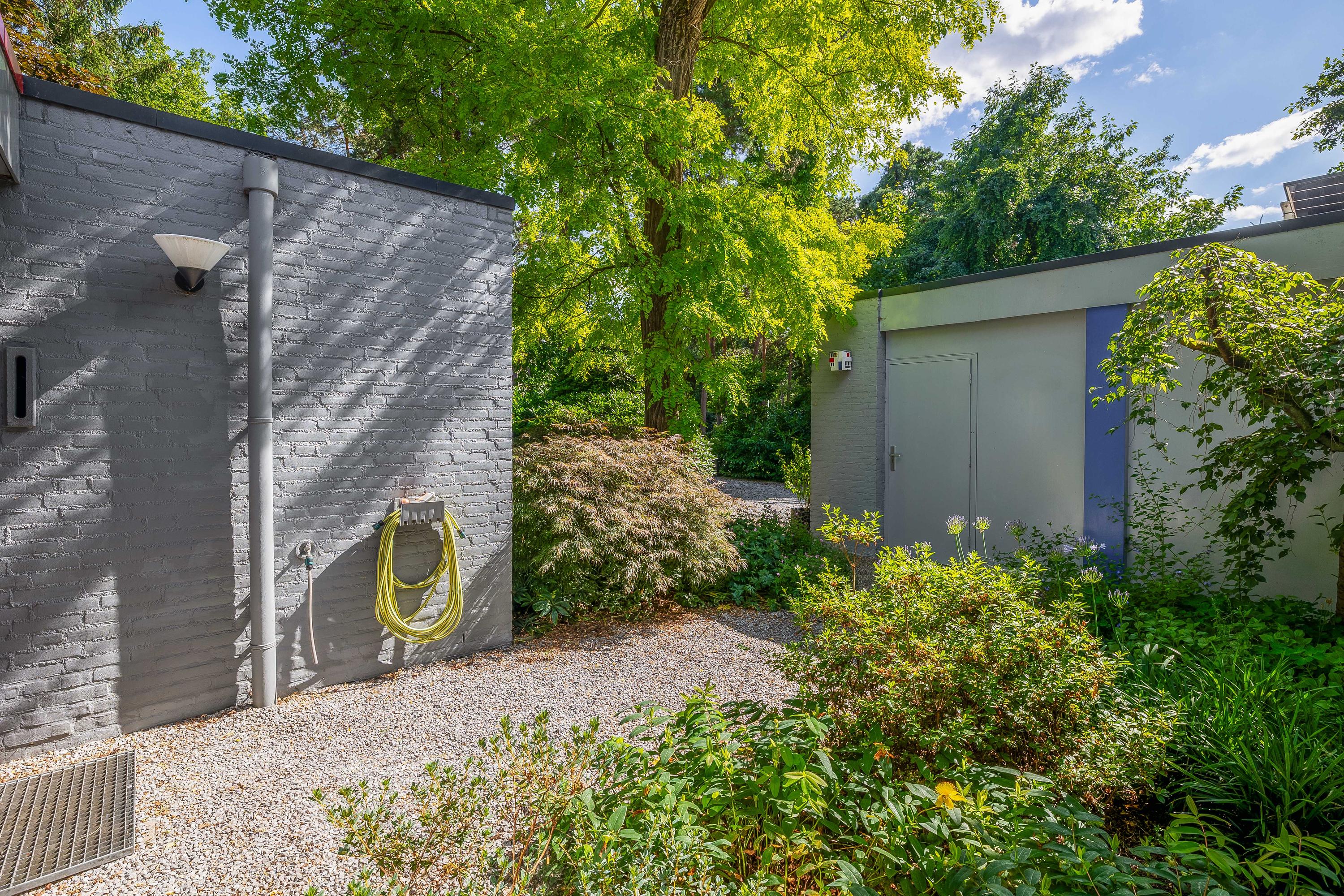 The detached stone garage is a welcome addition; it is equipped with three-phase power and accessible via a separate door and an electric sectional door. The fiber optic connection is also located here. A unique feature is that the irrigation of both the front and back gardens is controlled by computer.