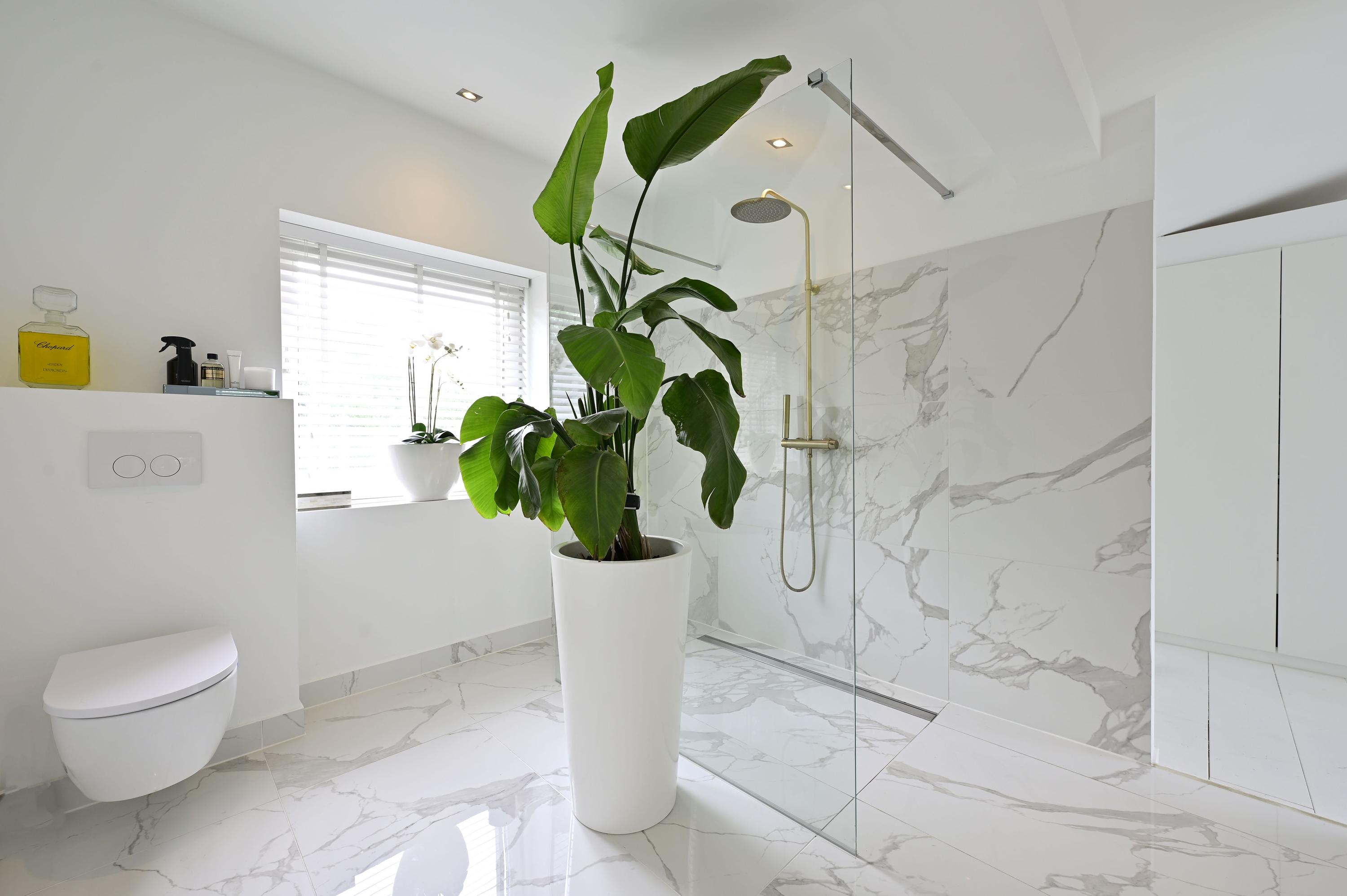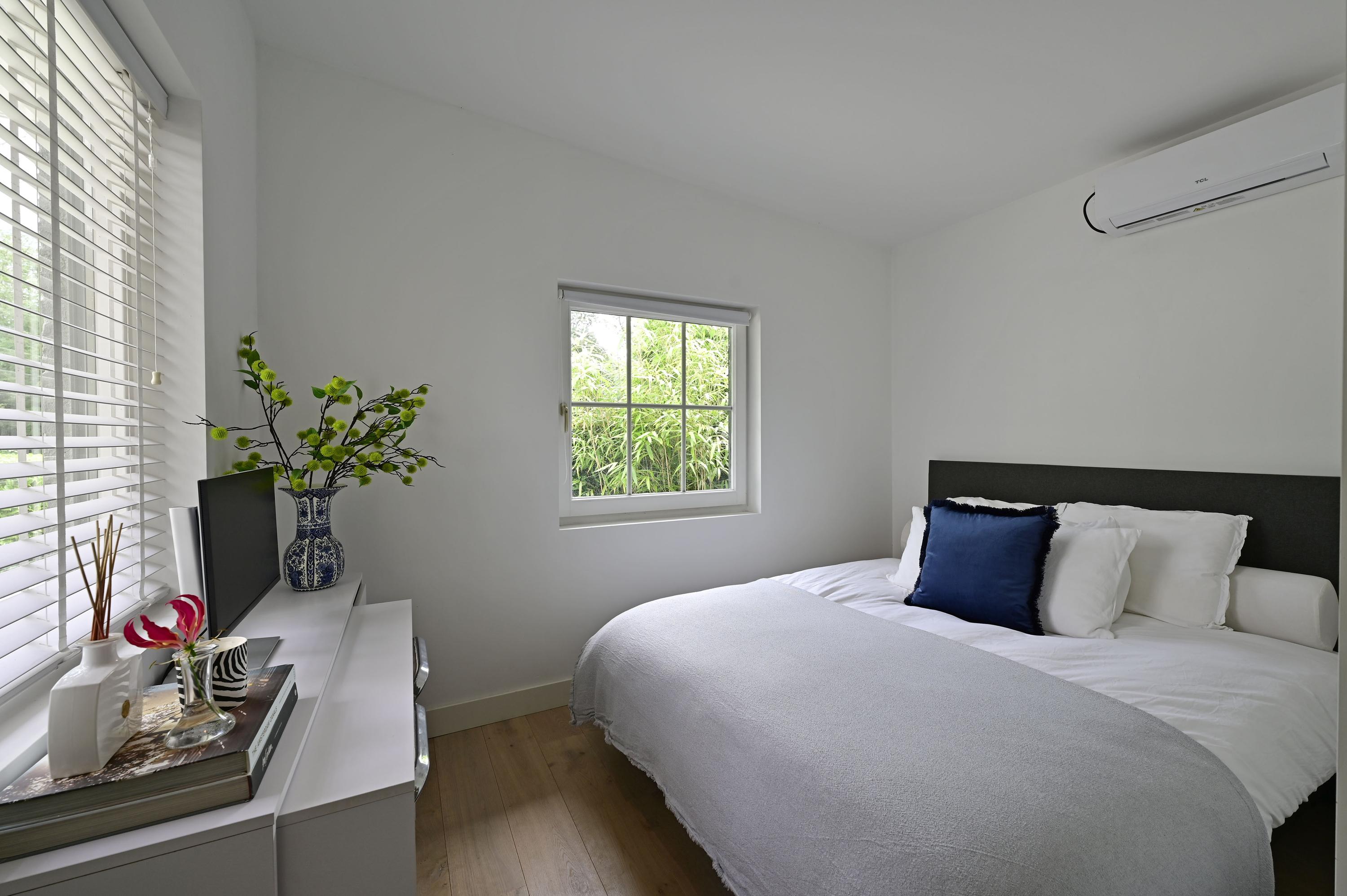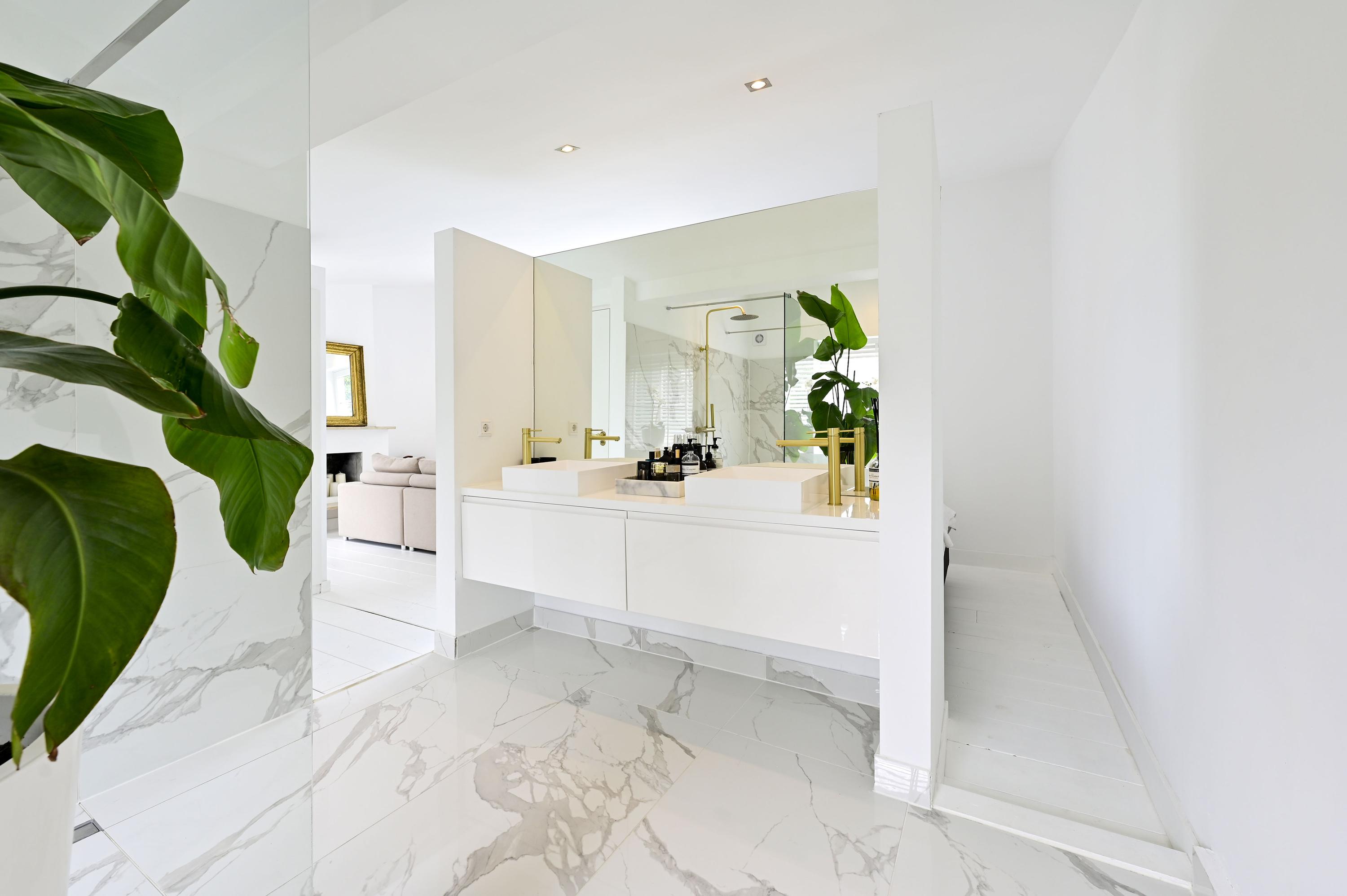 The villa features three spacious bedrooms, each with its own bathroom. Two bedrooms are located on the ground floor, making the home suitable for single-level living. The first floor is arranged as a generous master suite with bedroom, lounge area, walk-in closet and luxurious bathroom. This floor can easily be divided into two rooms.