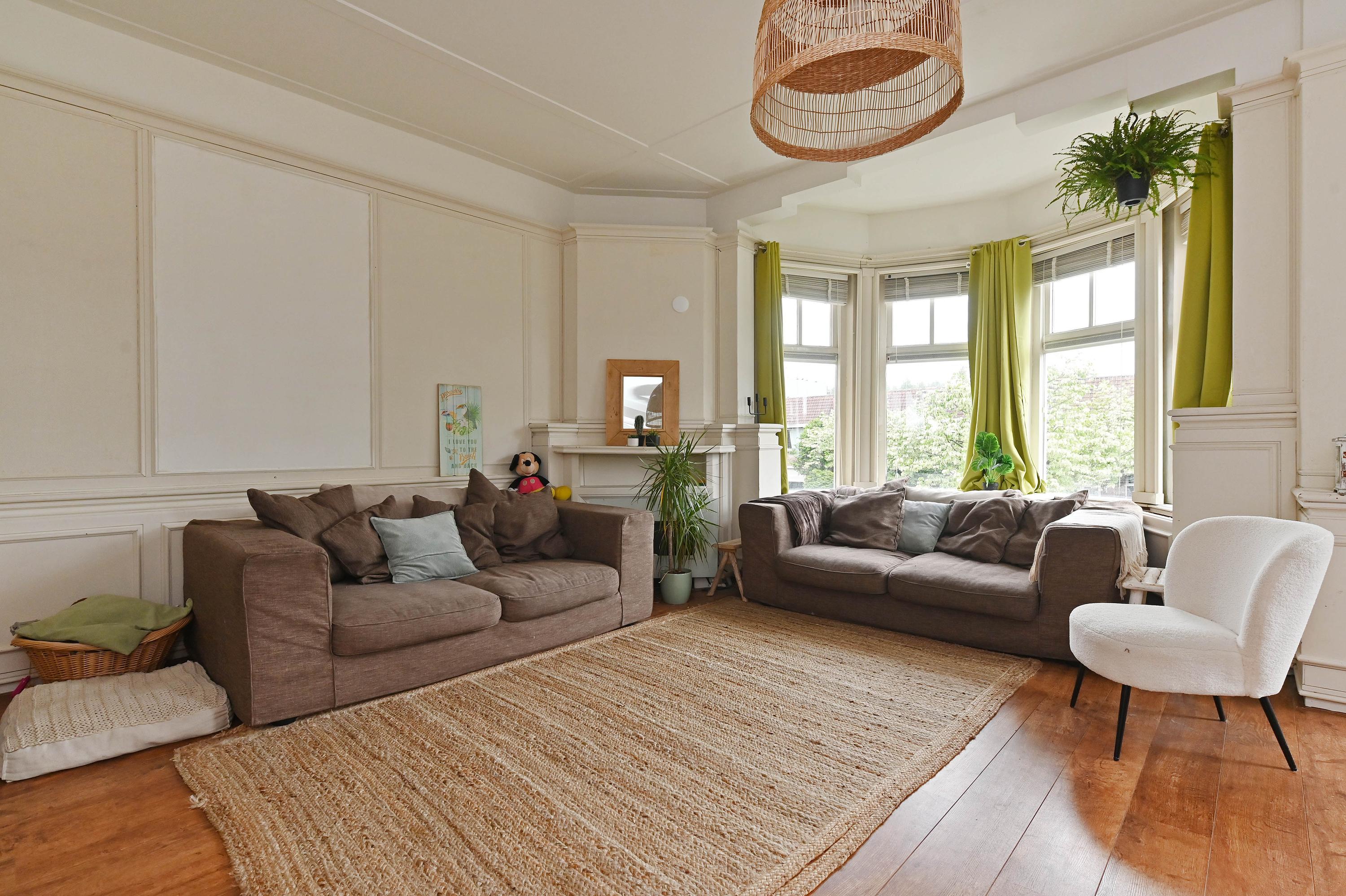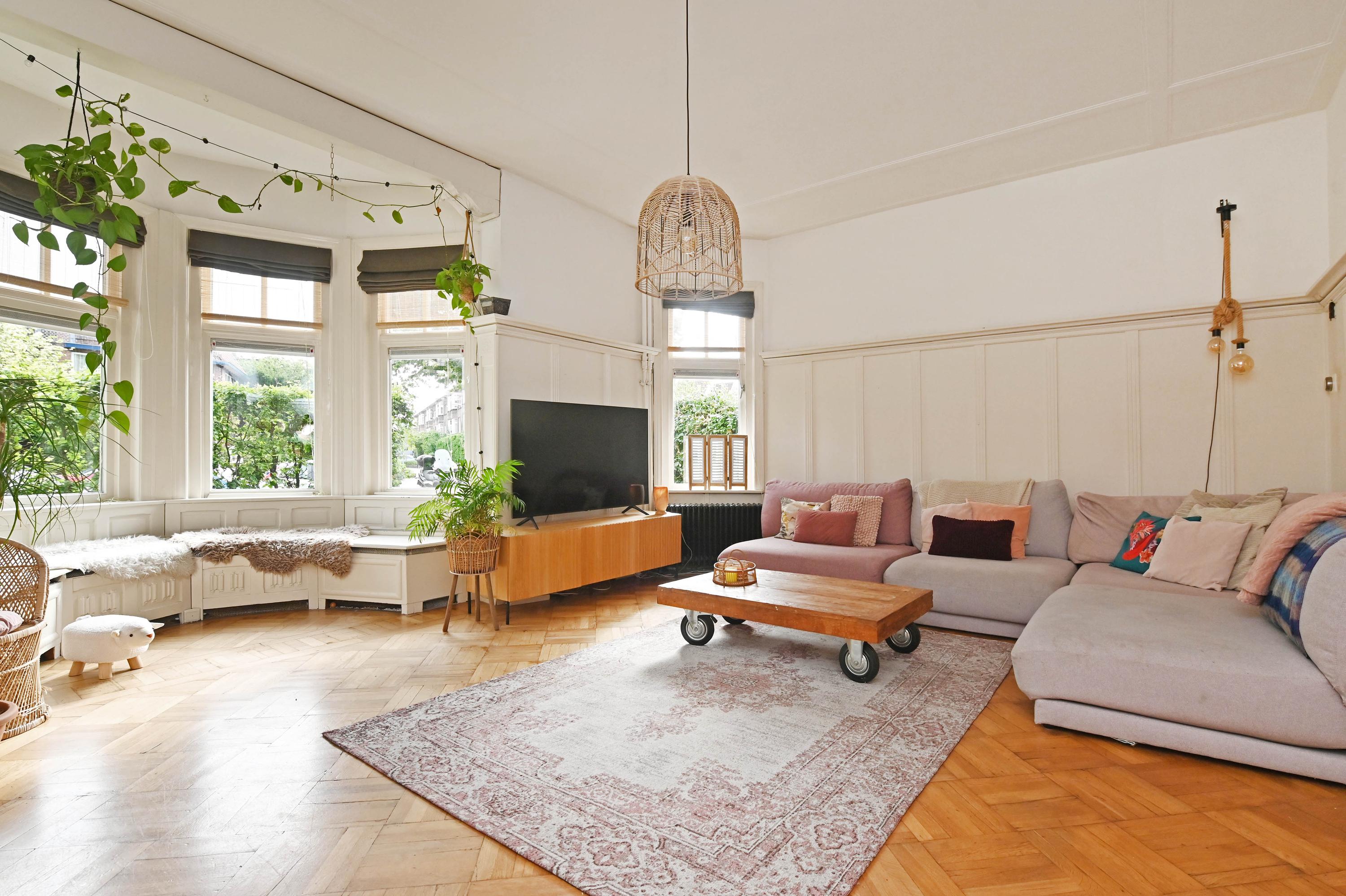 Spacious (ca. 285m2) end-of-terrace house with 7 bedrooms, 2 bathrooms, garden on 3 sides, and a driveway set on a wide, tree-lined street in historic Voorburg.