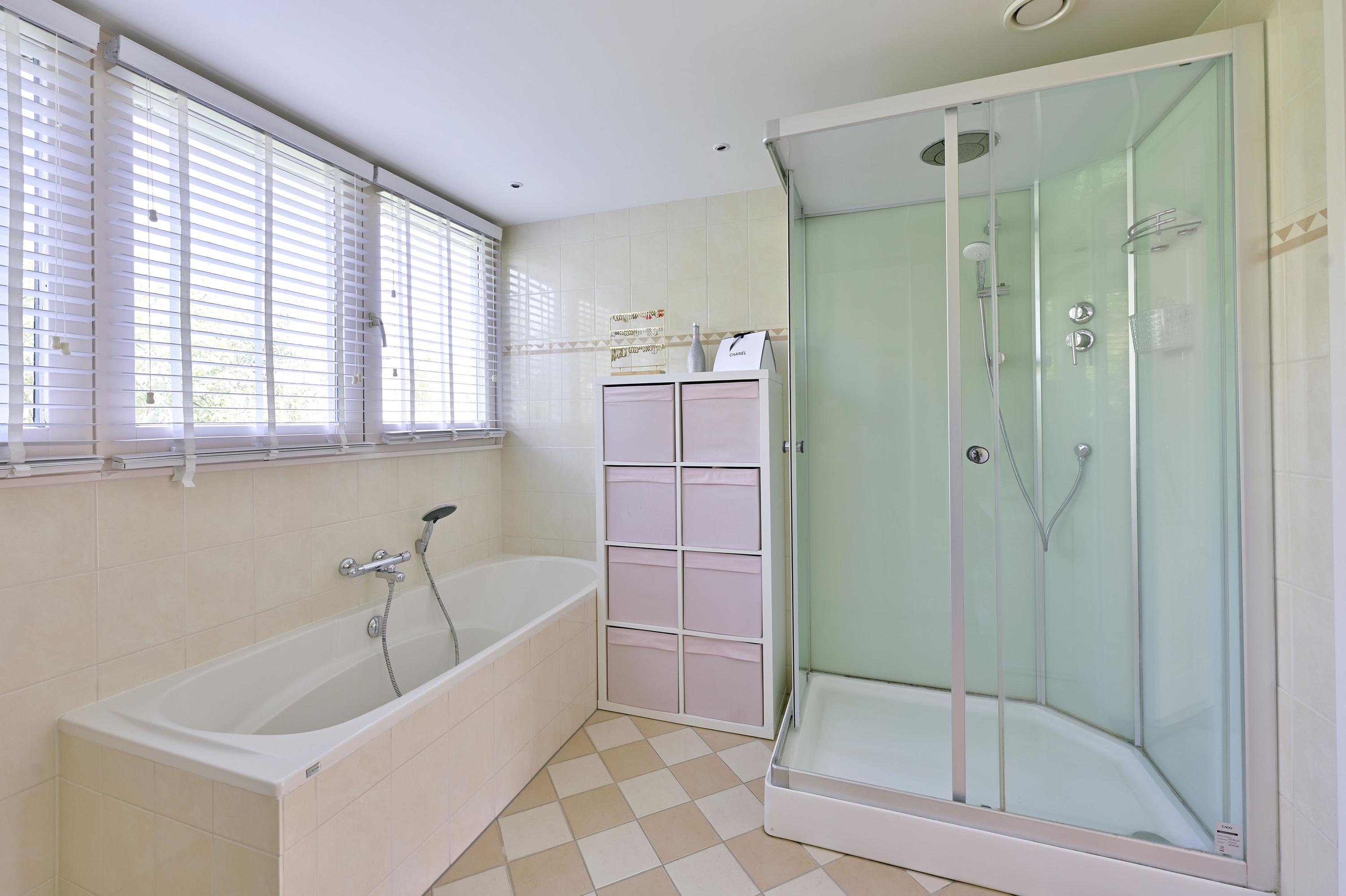 Outside, the spacious driveway accommodates up to four cars, and the garage is easily accessible. Sustainability has also been taken into account: the villa is fully insulated, fitted with 29 solar panels, and equipped with an electric vehicle charging point.