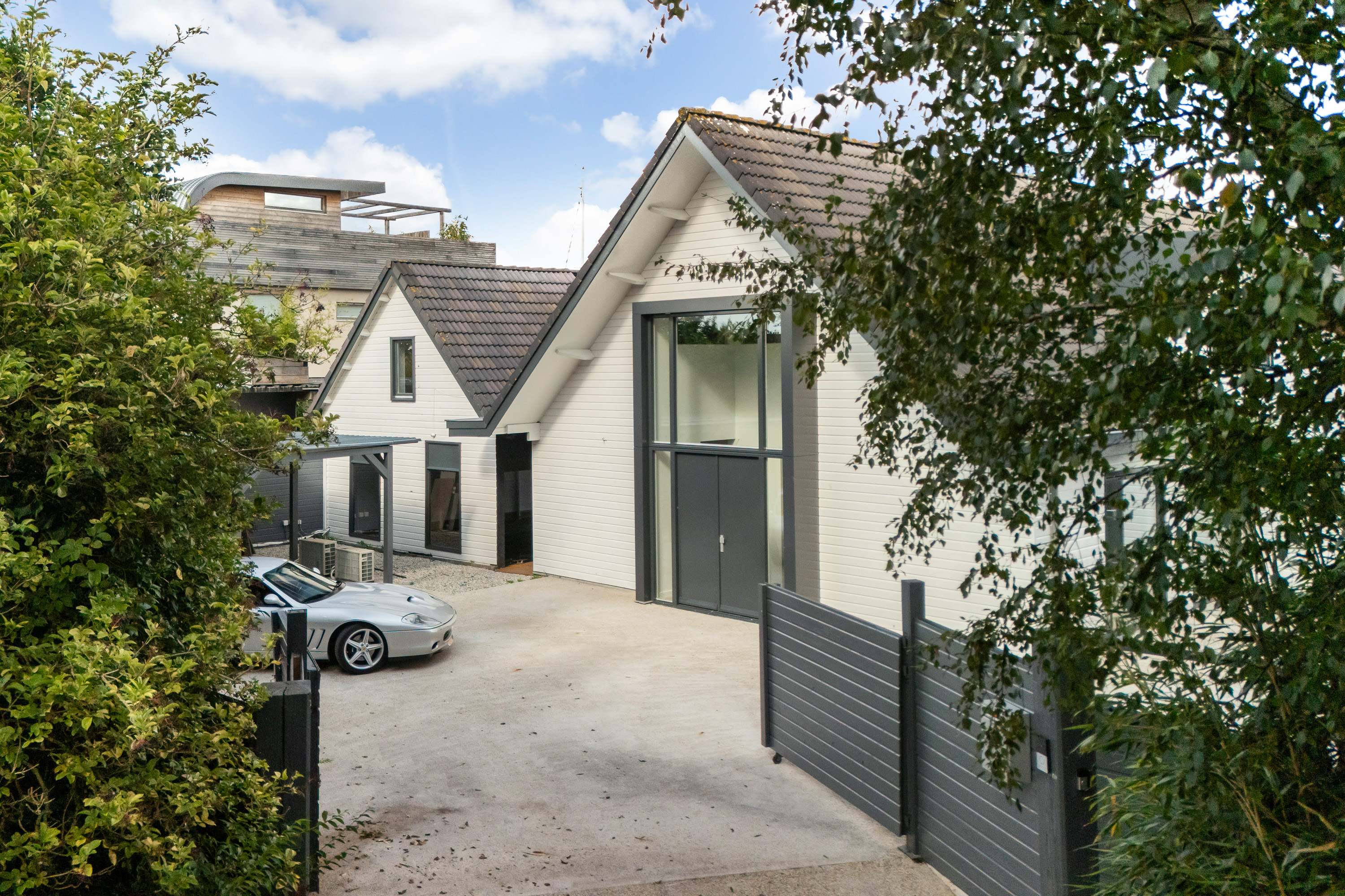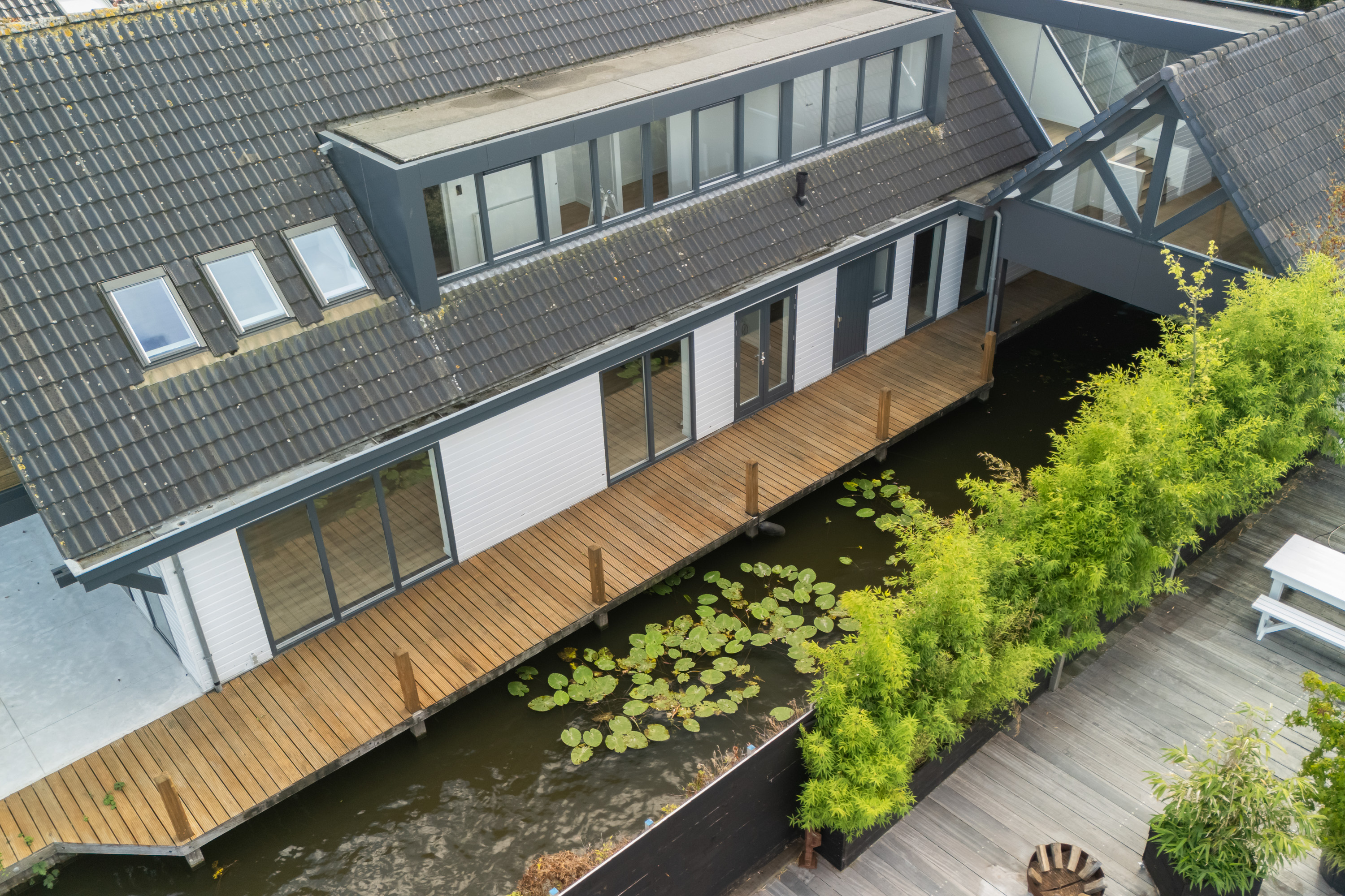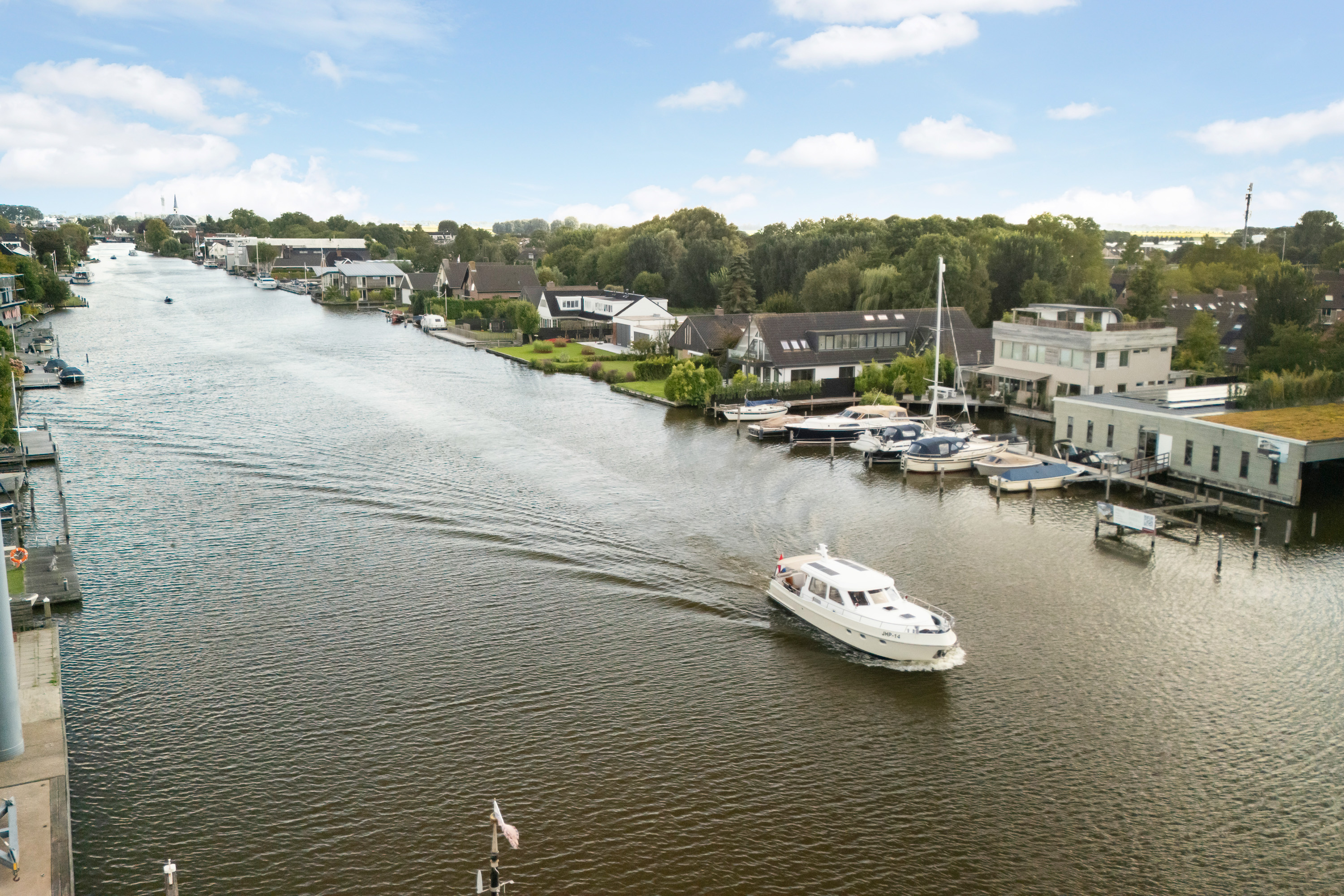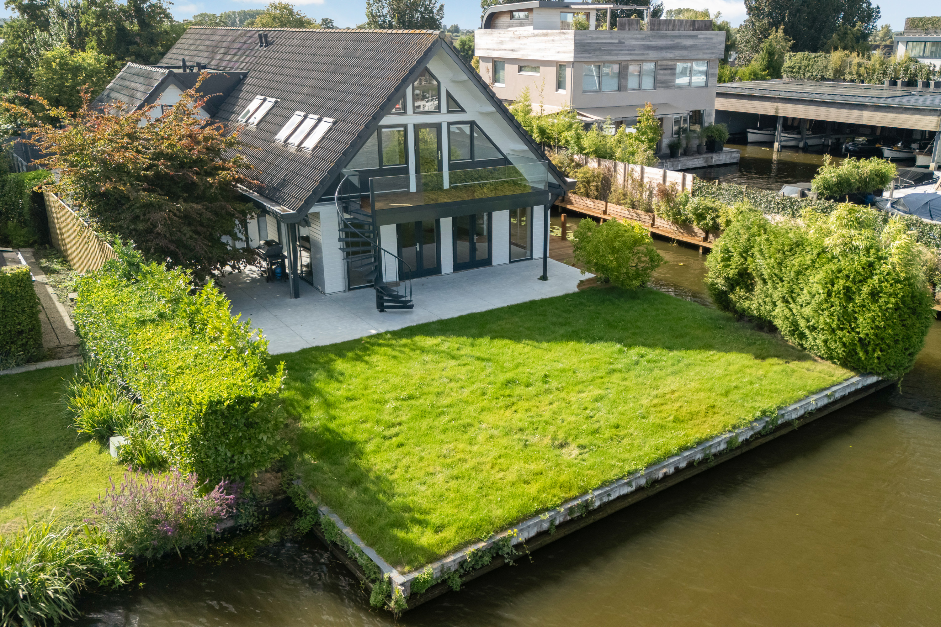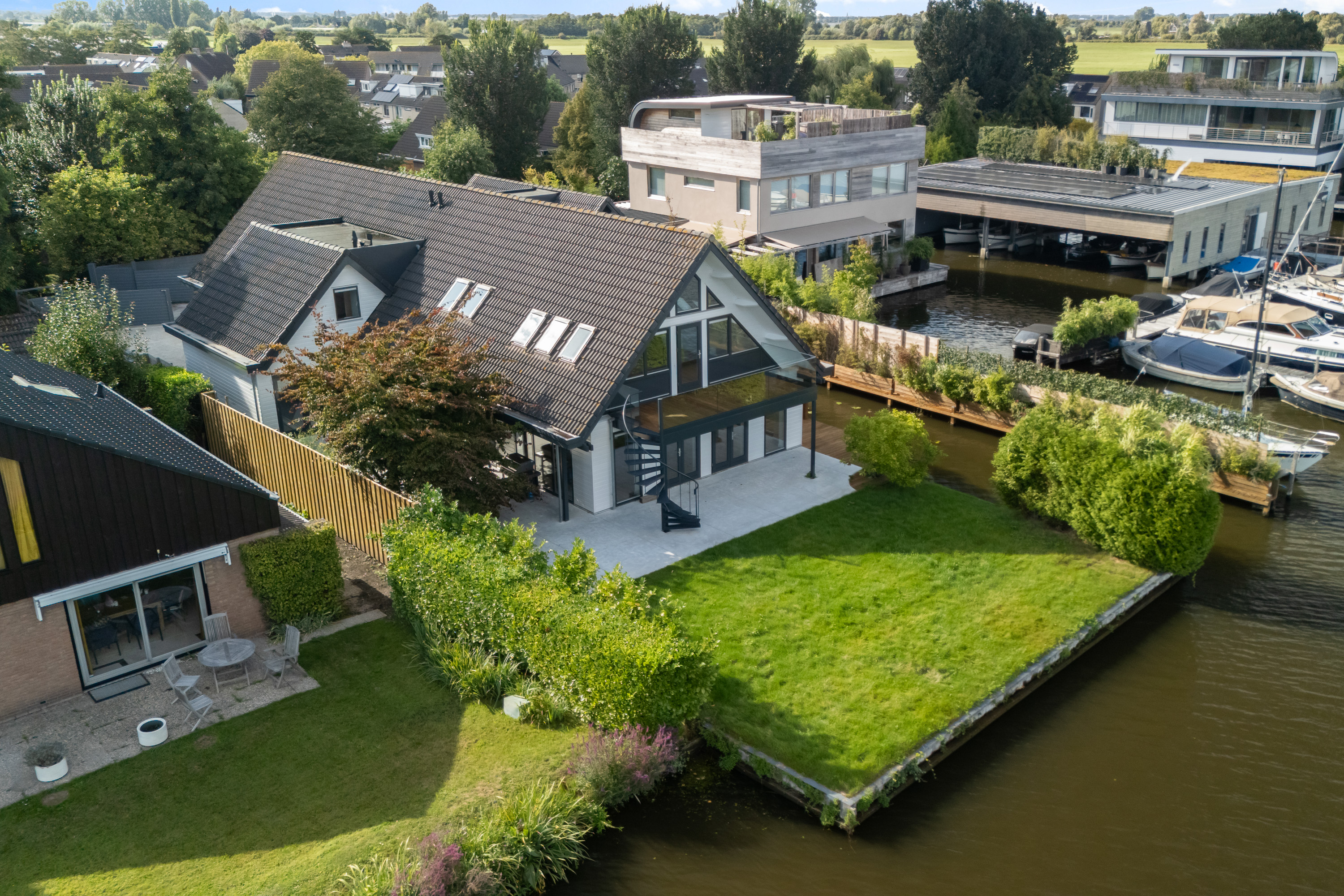 On the banks of the Woudwetering, in the idyllic village of Woubrugge, you will find this exclusive detached villa with boathouse and private waterfront. A unique location in the heart of the Green Heart, surrounded by peace, greenery, and water, yet surprisingly central to major cities such as Leiden, Amsterdam, and The Hague. Schiphol International Airport can be reached in less than 30 minutes, making this an ideal base for international professionals and frequent travelers.