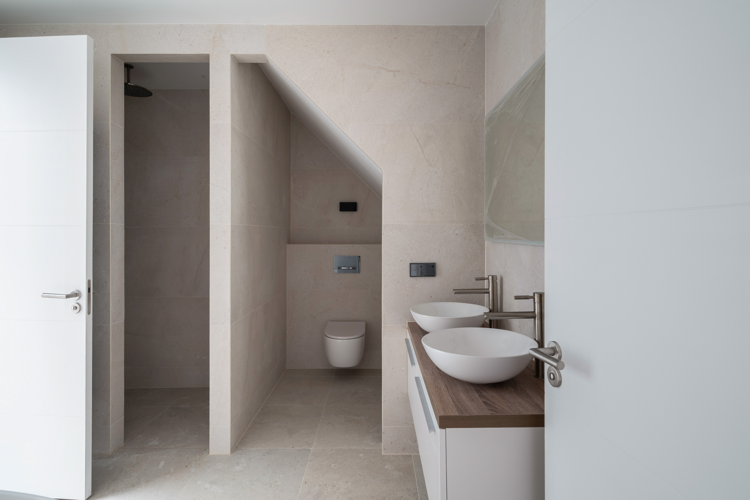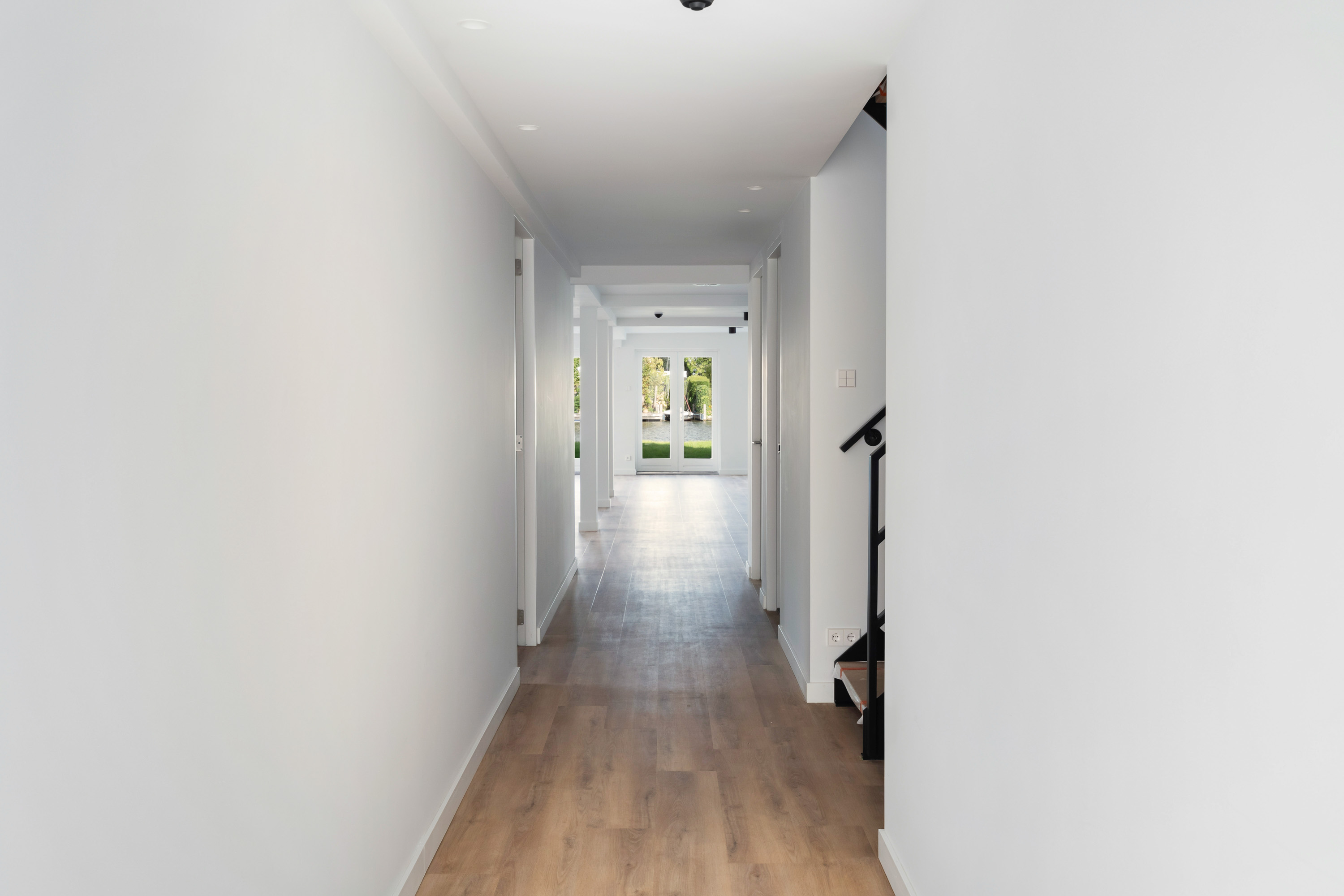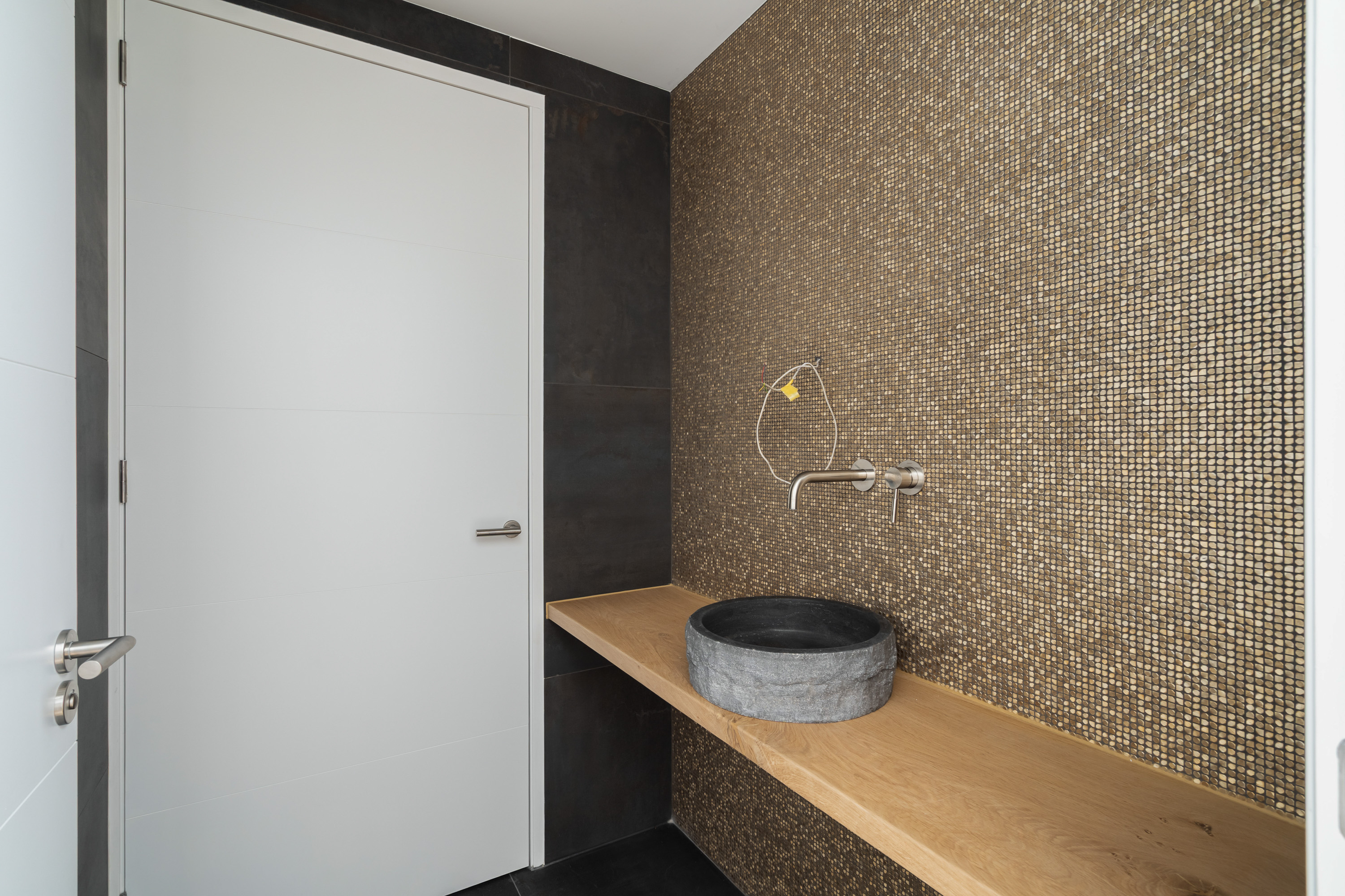The spacious hall gives access to several rooms, with a cloakroom and toilet. The use of high-quality materials and sleek finishes immediately reflect the exclusive character of this villa.