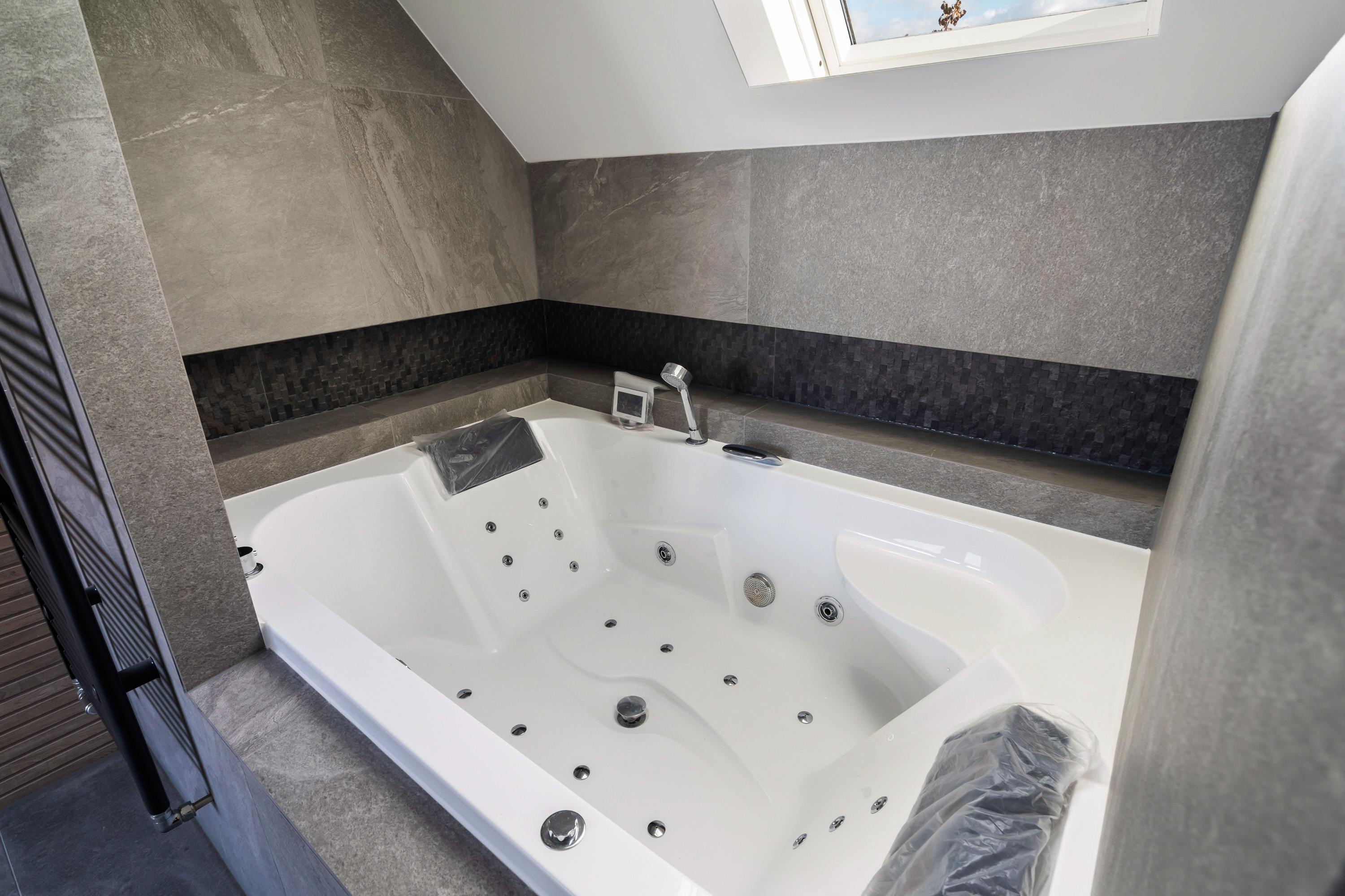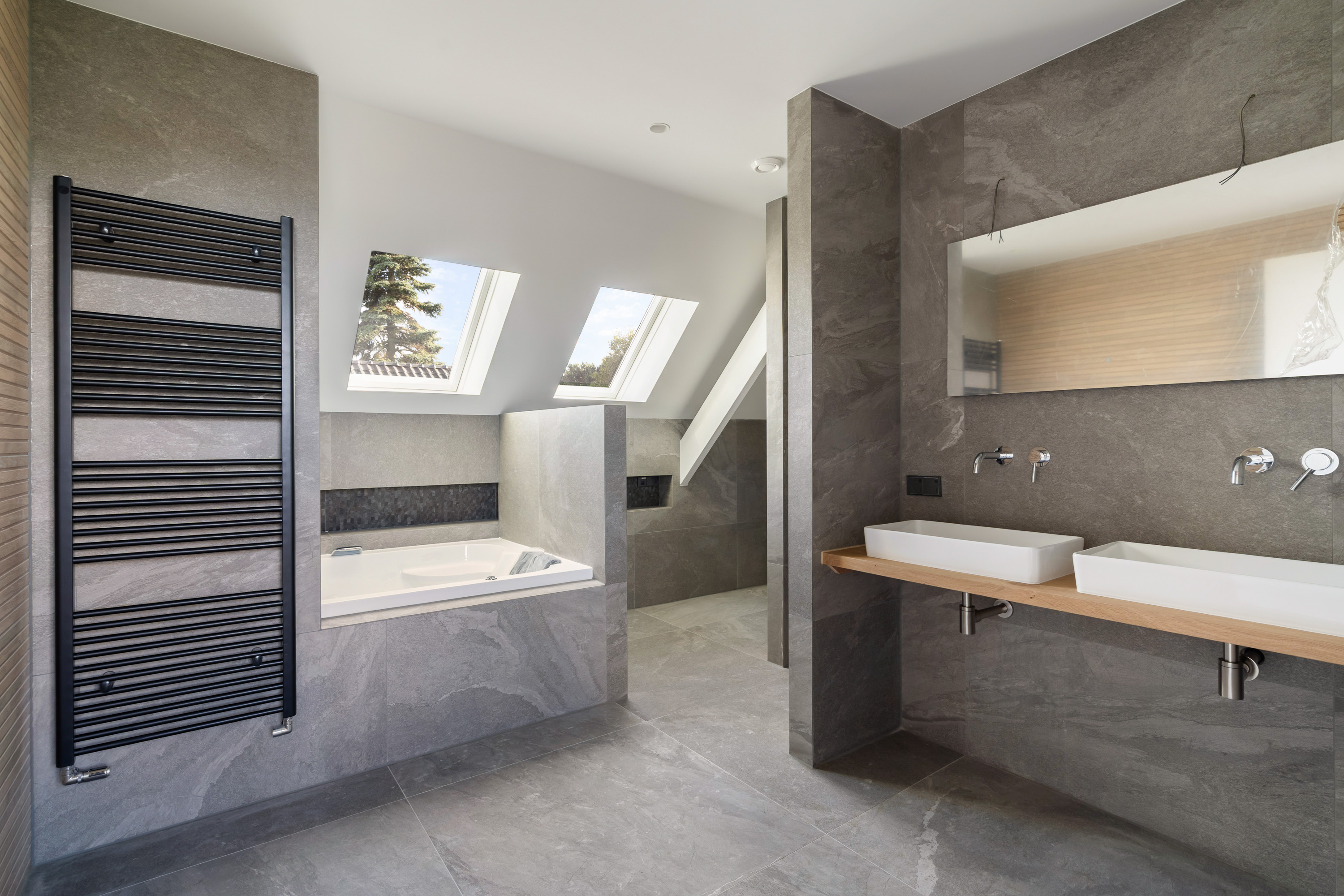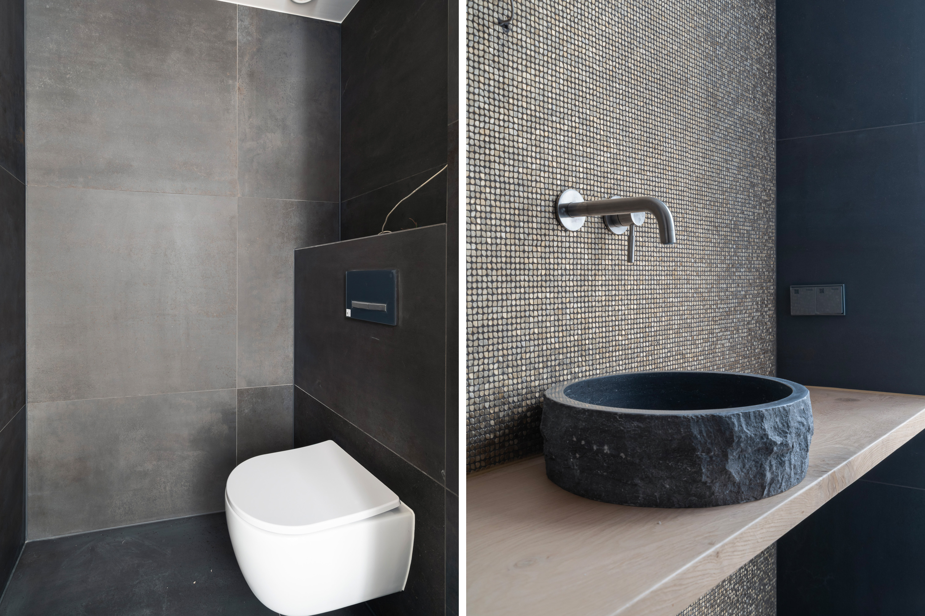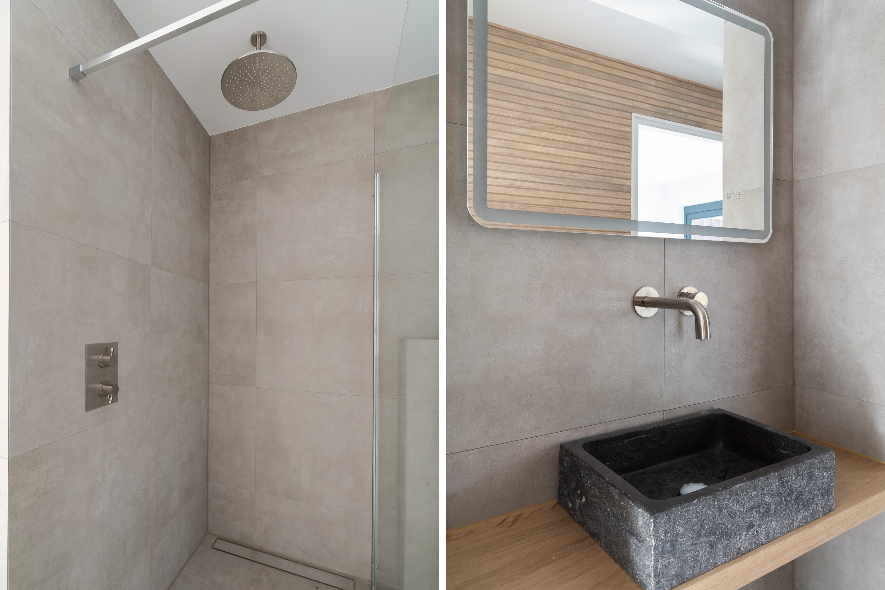 The spacious hall gives access to several rooms, with a cloakroom and toilet. The use of high-quality materials and sleek finishes immediately reflect the exclusive character of this villa.