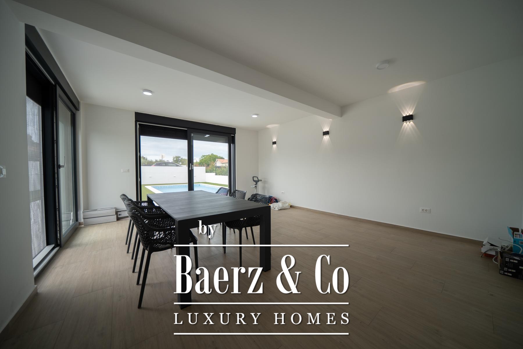 amenities necessary for everyday life are nearby.This luxury villa represents a combination of contemporary design, comfort and elegance.Large glass surfaces allow for plenty of natural light and provide panoramic views of the surroundings.In the courtyard surrounded by greenery there is a swimming pool, ideal for relaxation and enjoyment.This property is the perfect choice for those looking for luxury, privacy and a combination of modern life with nature.For more information, please request.