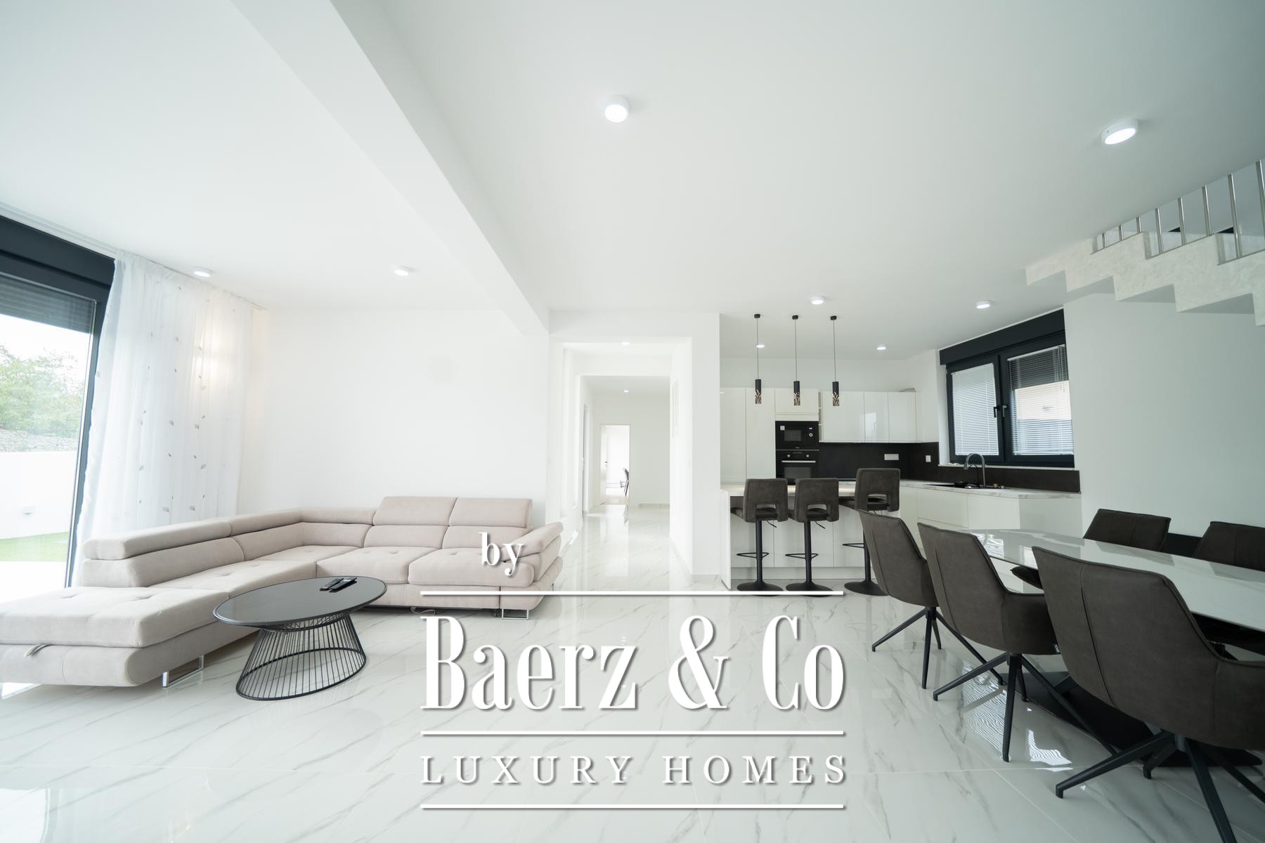 Zadar, Crno, beautiful villa on a plot of land of 623 m2.It extends over two floors connected by an internal staircase, with a total area of 200 m2.On the first floor there is a spacious living room with access to the terrace, kitchen and dining room, bathroom, laundry room and space for a gym.On the second floor there are three bedrooms, two bathrooms and a terrace.The house is fully and modernly furnished.Underfloor heating is installed on both floors, and each room has air conditioning.All