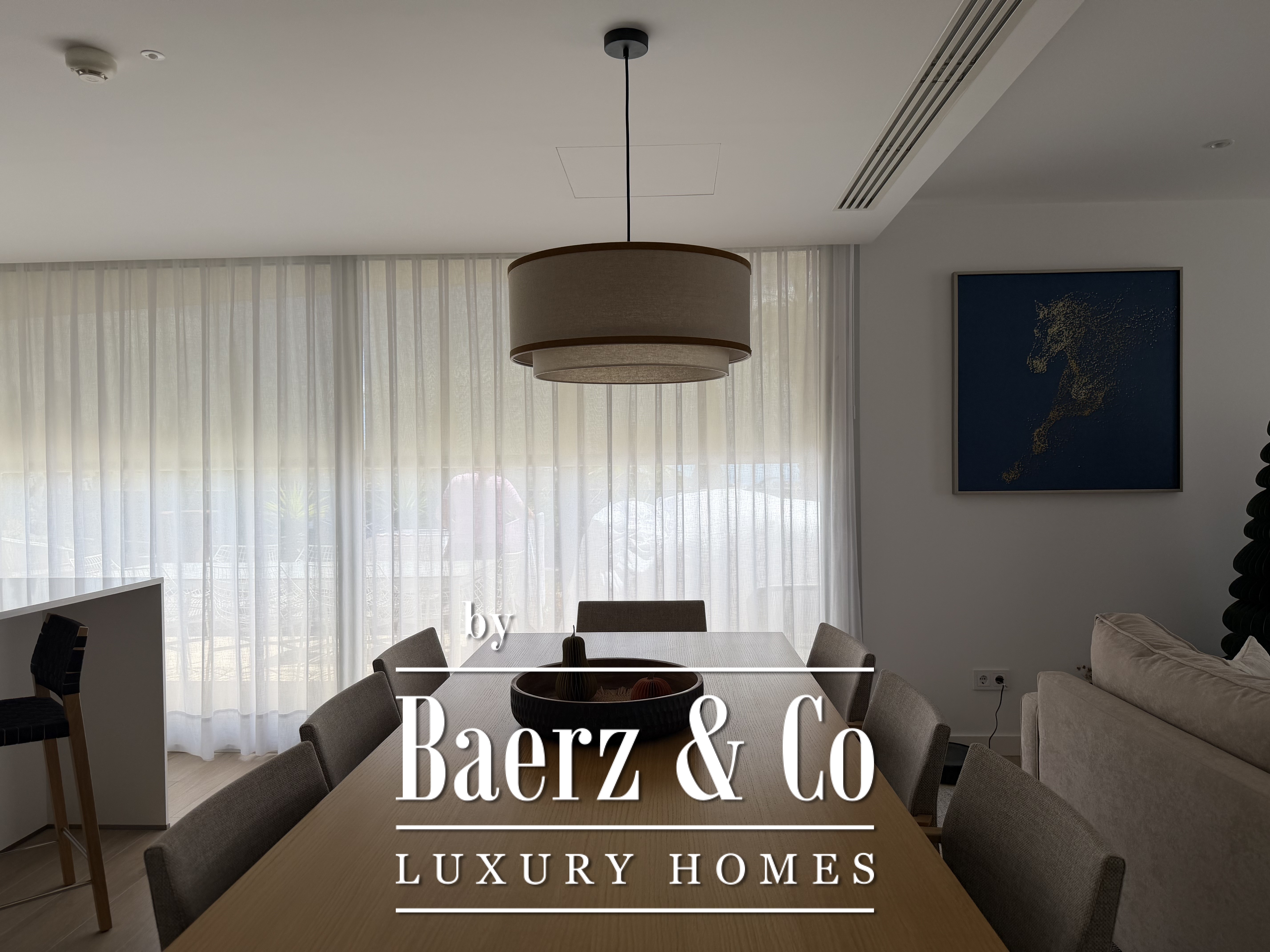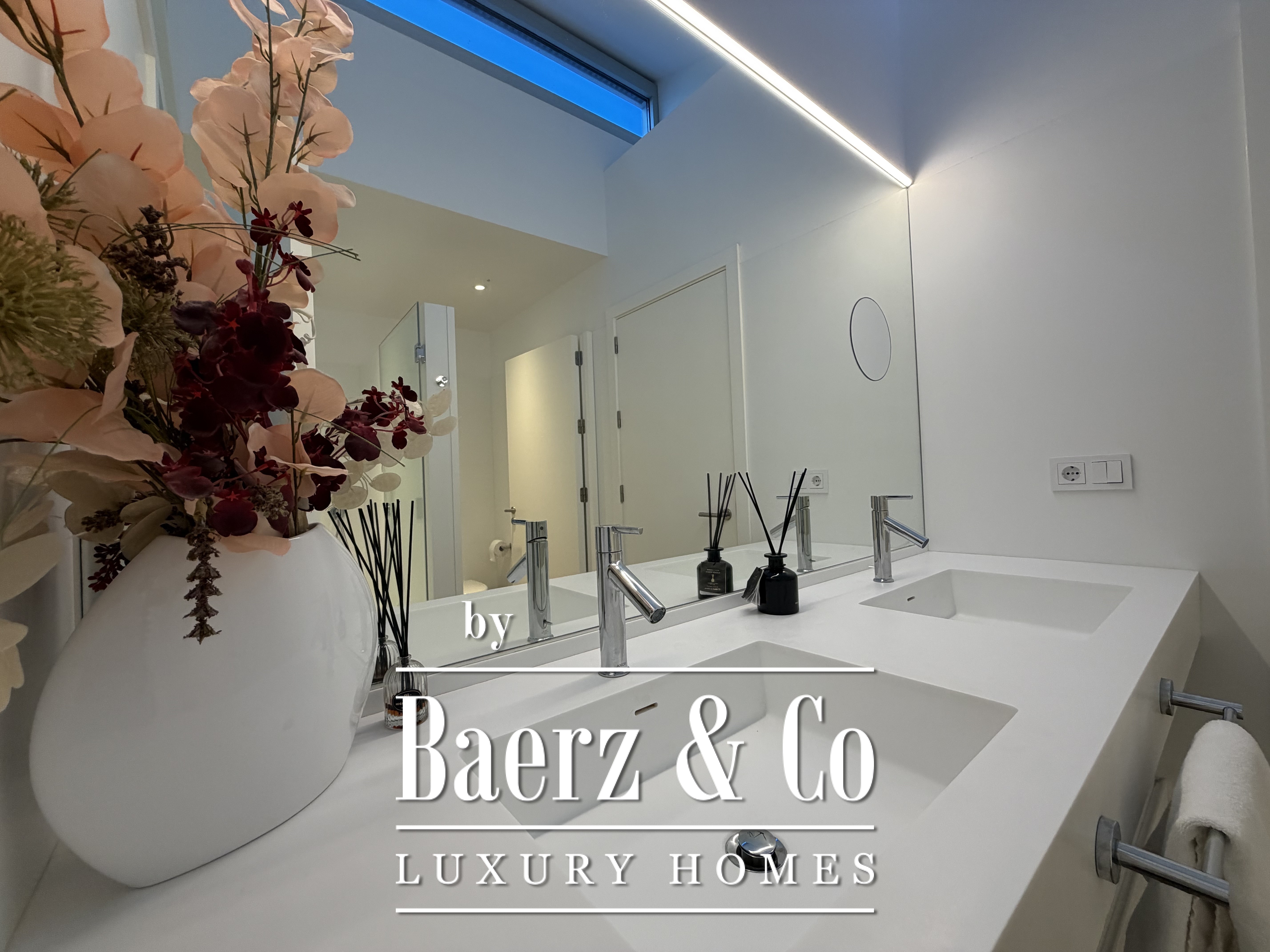 De woning beschikt over een garage voor één auto en een buggy en wordt volledig gemeubileerd verkocht met luxe meubilair, inclusief tuinmeubelen. De ramen zijn voorzien van automatische zonwering die het zonlicht reguleert zonder het natuurlijke licht te verliezen.