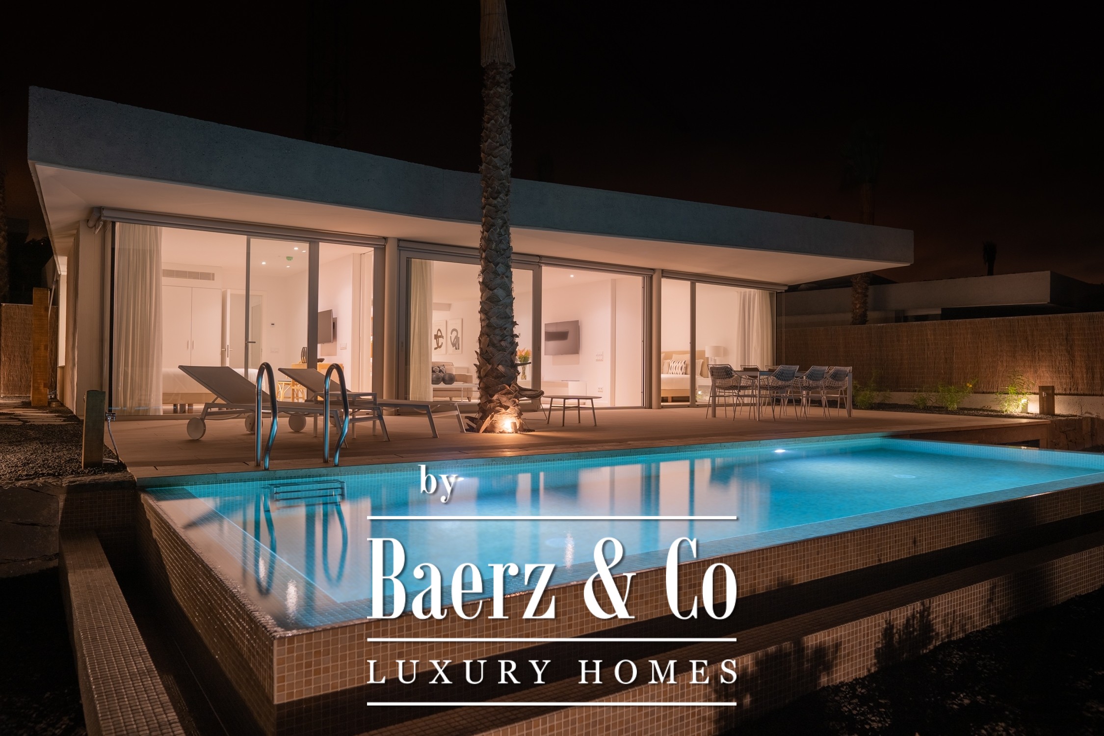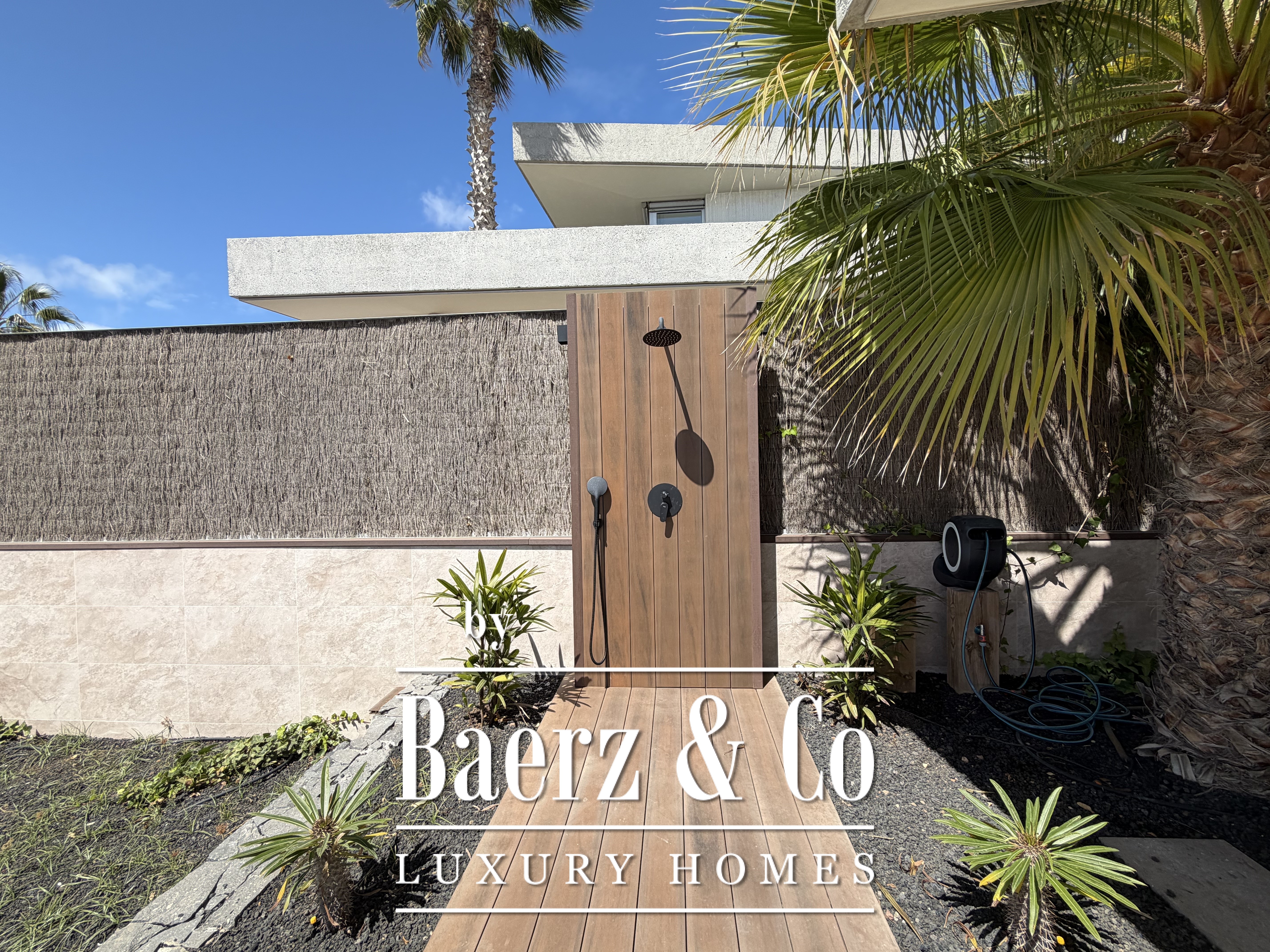 De villa beschikt over drie ruime slaapkamers met kleedkamers, twee moderne badkamers met douches en een lichte woonkamer met grote ramen die uitkomen op het terras en de tuin. Het privé, verwarmde overloopzwembad is perfect om af te koelen en te genieten van het klimaat van Tenerife, terwijl de buitenruimte diverse mogelijkheden biedt om buiten te dineren en te ontspannen.