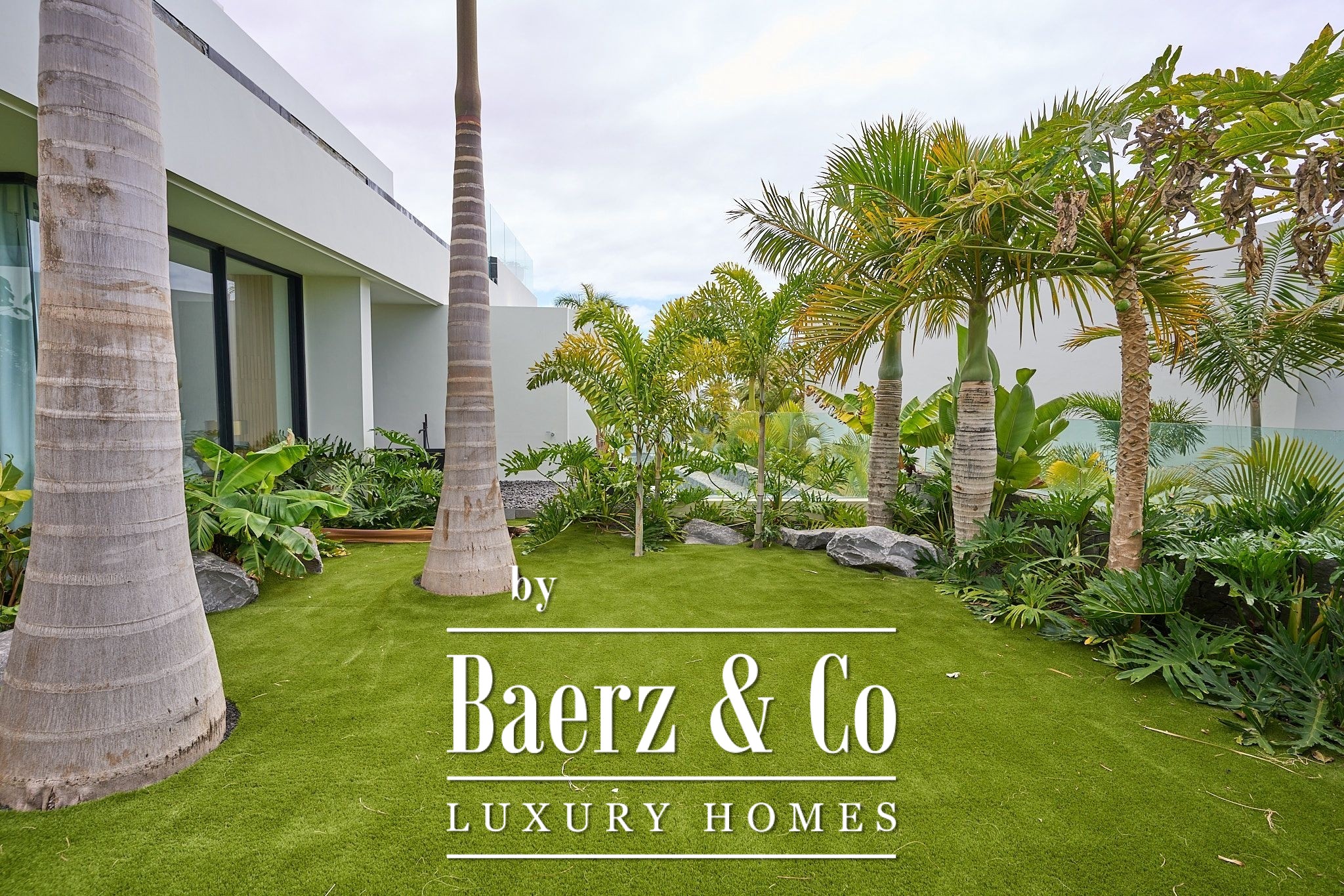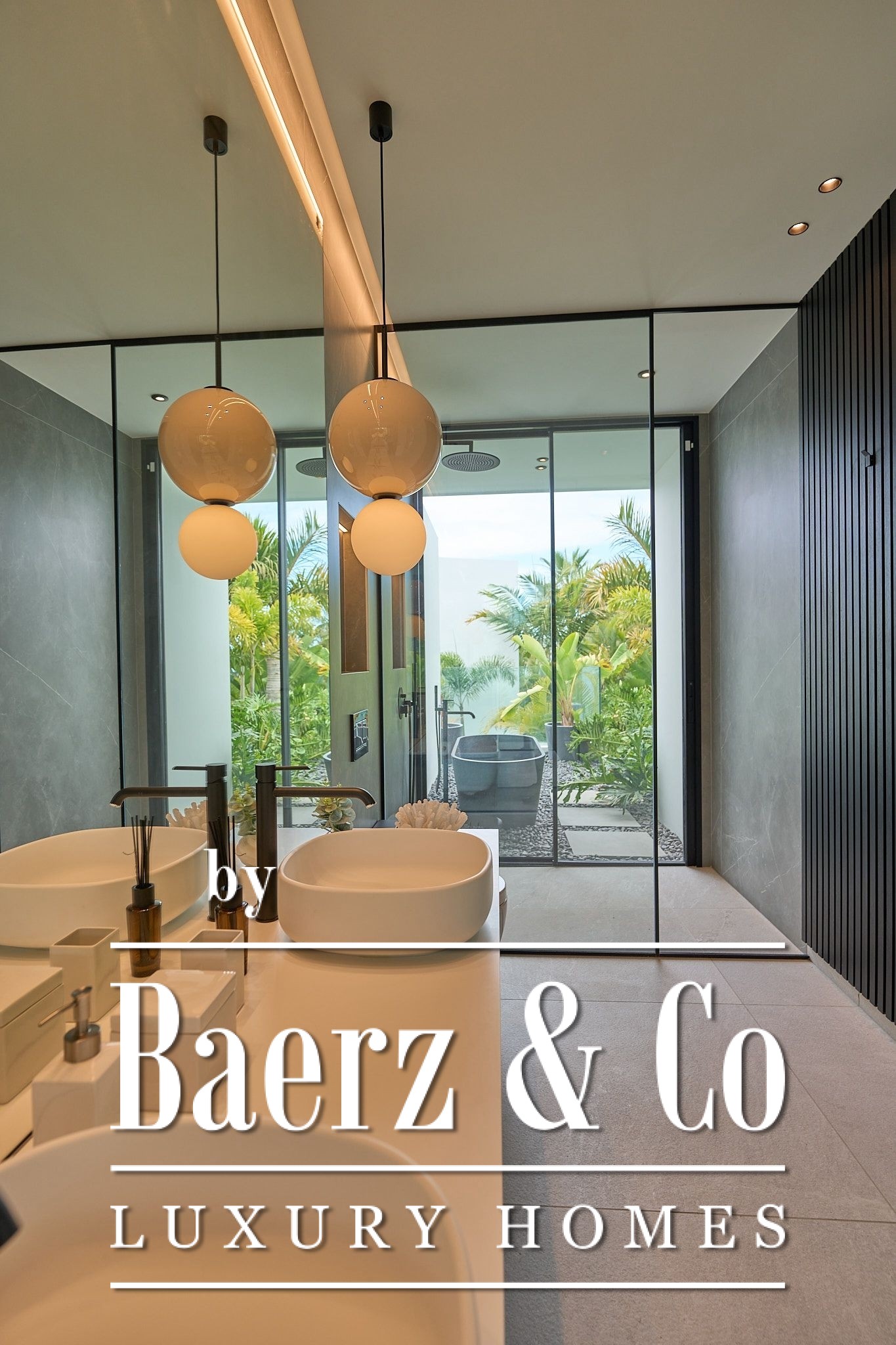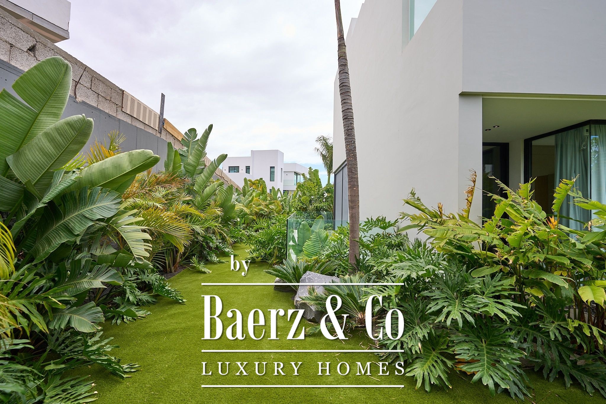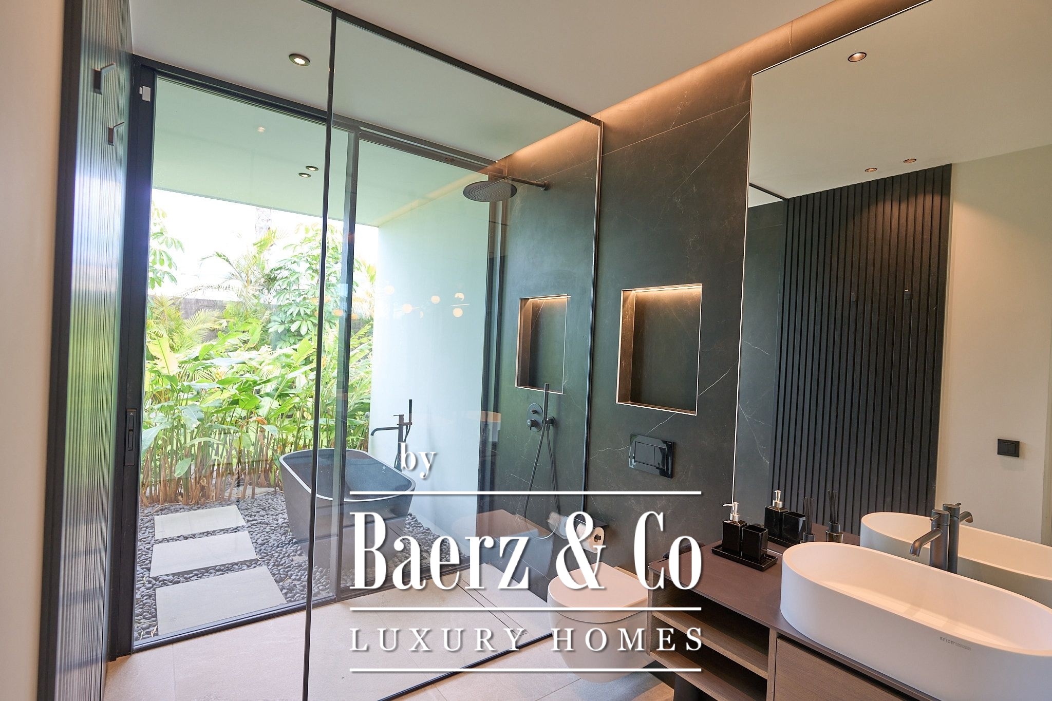 De villa beschikt over vier elegante slaapkamers met eigen badkamer, elk met inbouwkasten en directe toegang tot de tropische tuin, wat zorgt voor een intieme en ontspannen sfeer. Op de bovenverdieping bevindt zich een ruime woon- en eetkamer die uitkomt op een volledig uitgeruste moderne keuken, inclusief een wijnkelder – perfect voor wijnliefhebbers.