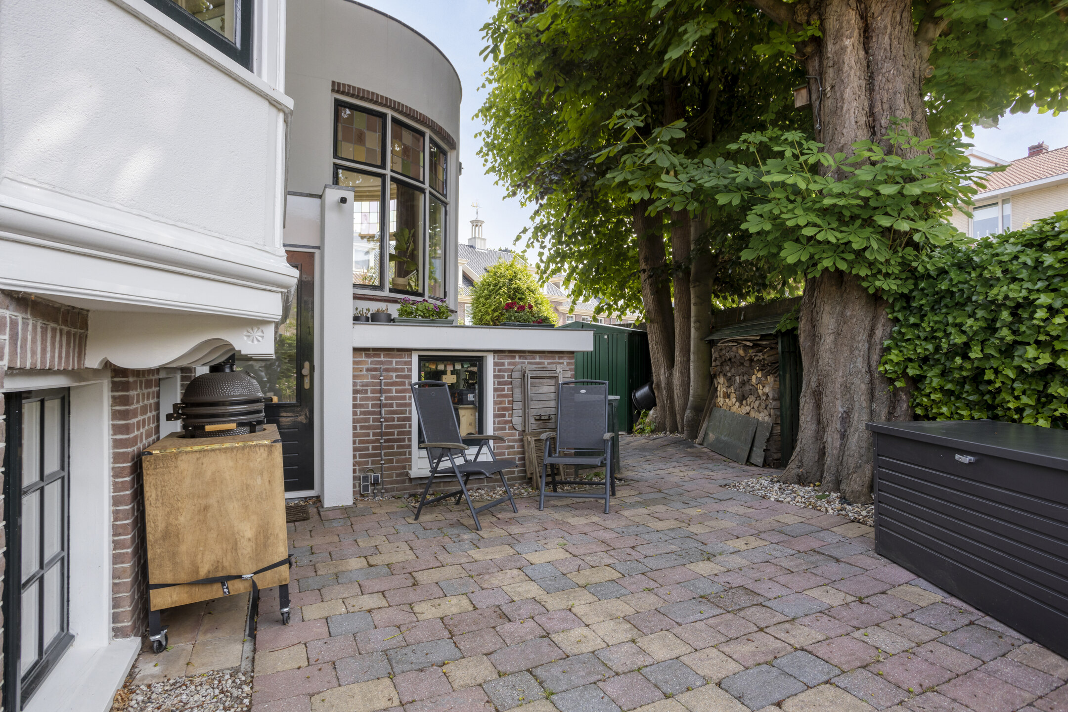 De rondom gelegen tuin is heerlijk zonnig en groen en bied veel privacy. U kunt hier op meerdere plekken genieten van zowel zon als schaduw. De oprit beschikt over een eigen laadpaal en biedt ruimte voor een auto. De combinatie van bestrating, veel groen en prachtige monumentale bomen maken de tuin een heerlijke plek om te vertoeven.