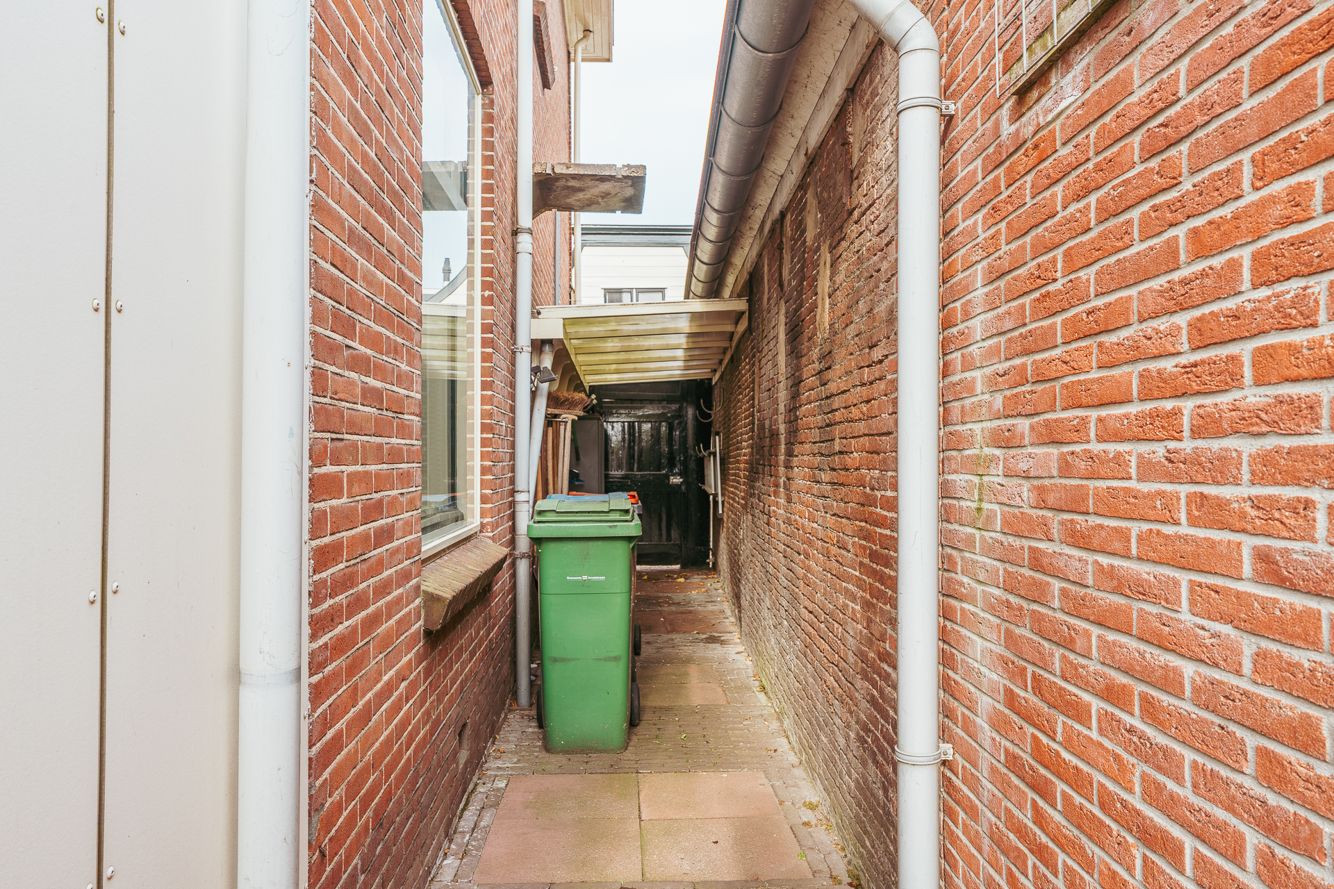 Via de entree aan de autoluwe straatzijde betreedt u de woning in de hal, voorzien van een garderoberuimte en separaat toilet met fontein. Vanuit de hal bereikt u de kamer aan de voorzijde van de woning, die dankzij de hoge ramen veel lichtinval heeft en ideaal kan dienen als kantoor of praktijkruimte. Deze ruimte beschikt tevens over een eigen (tweede) entree.