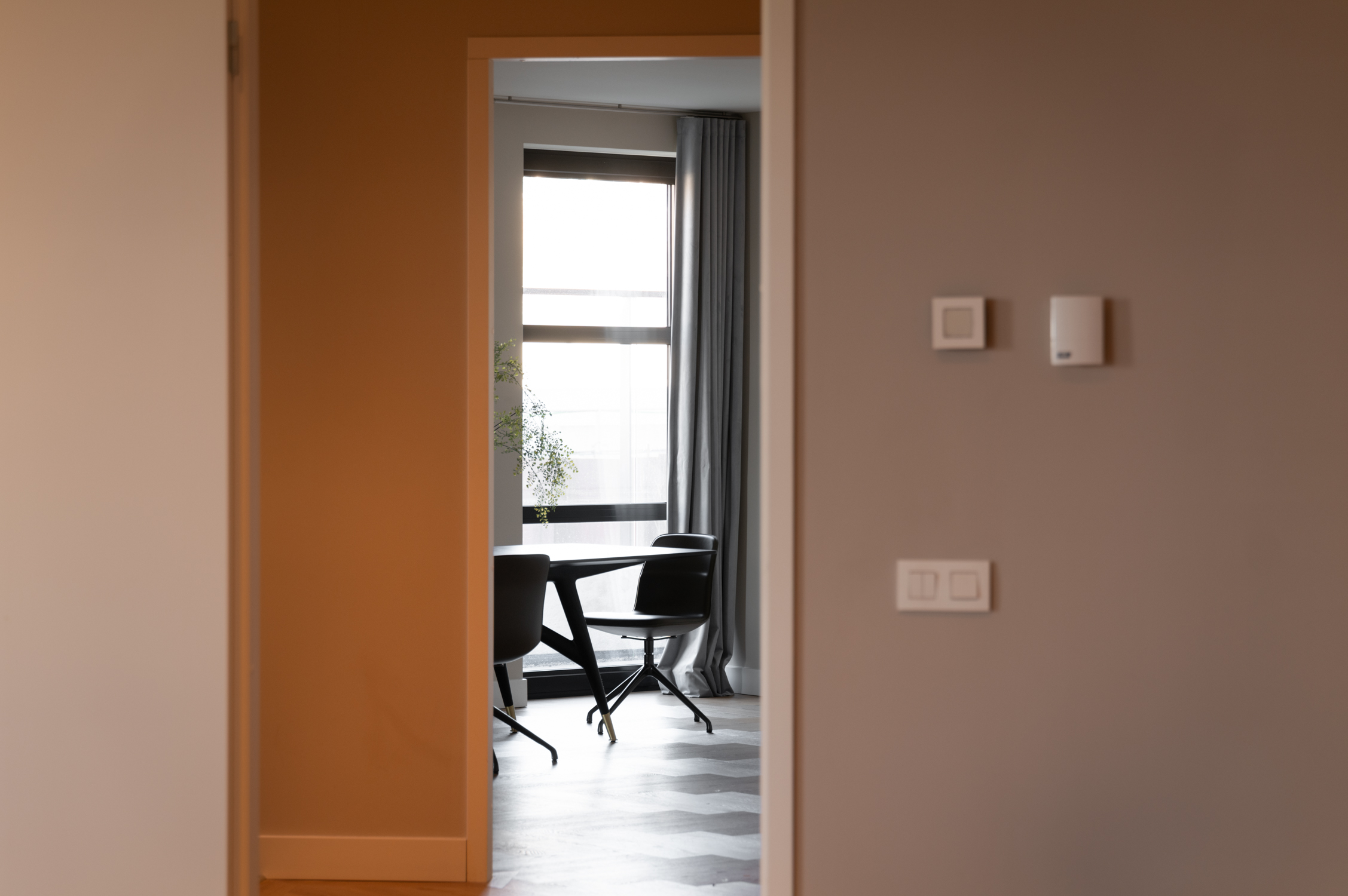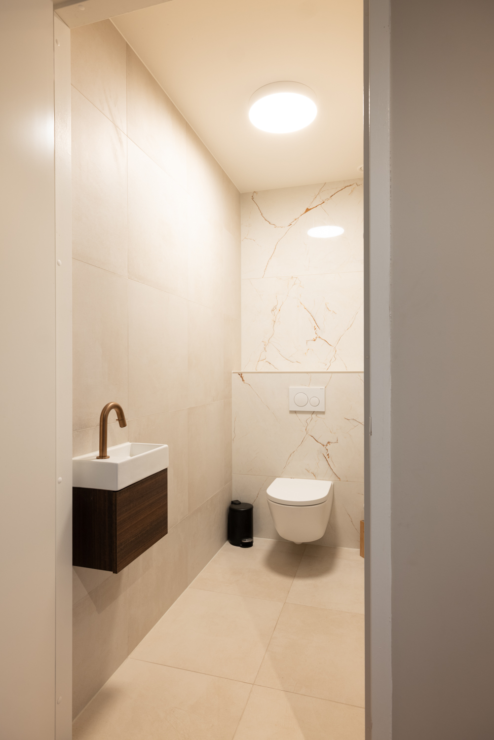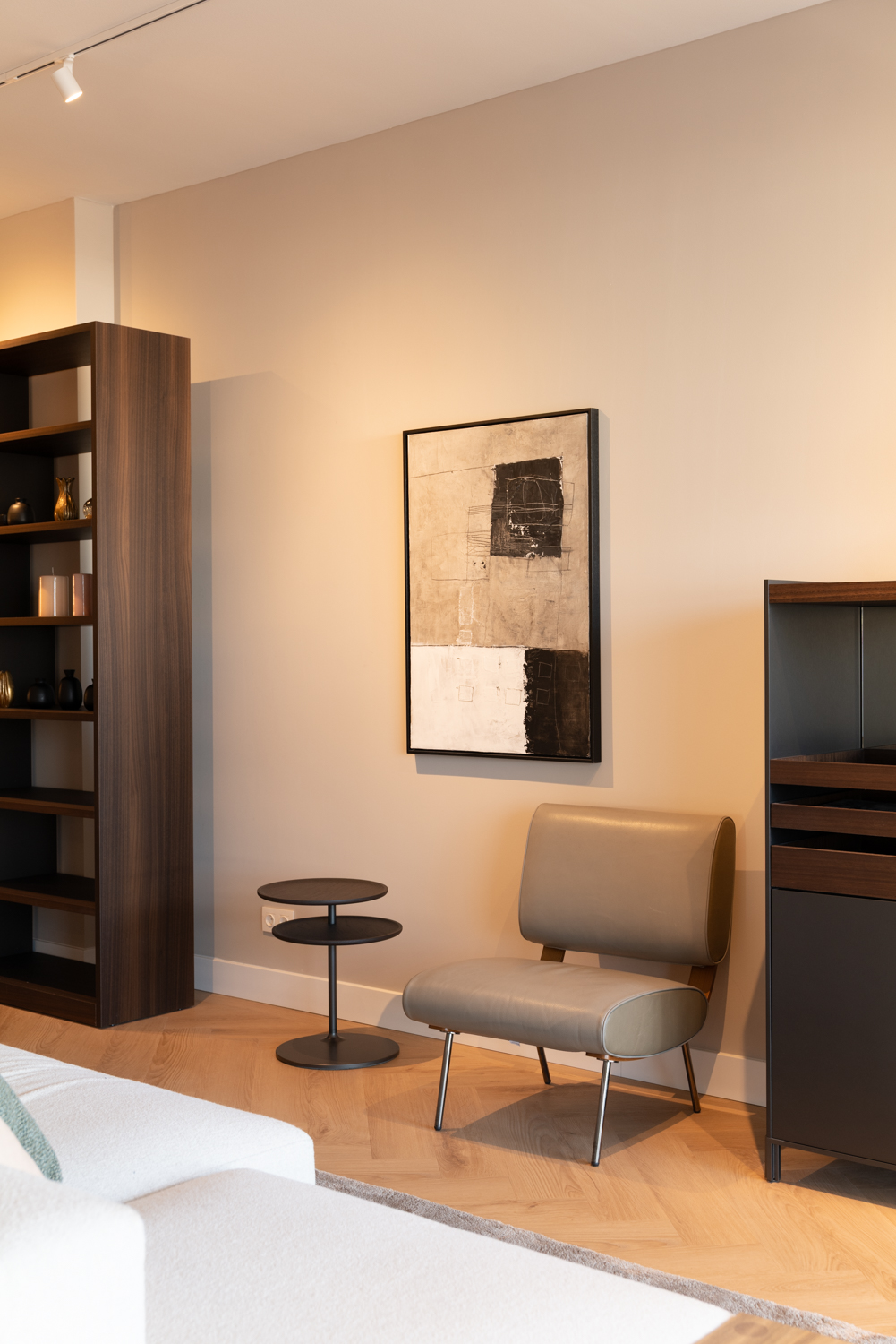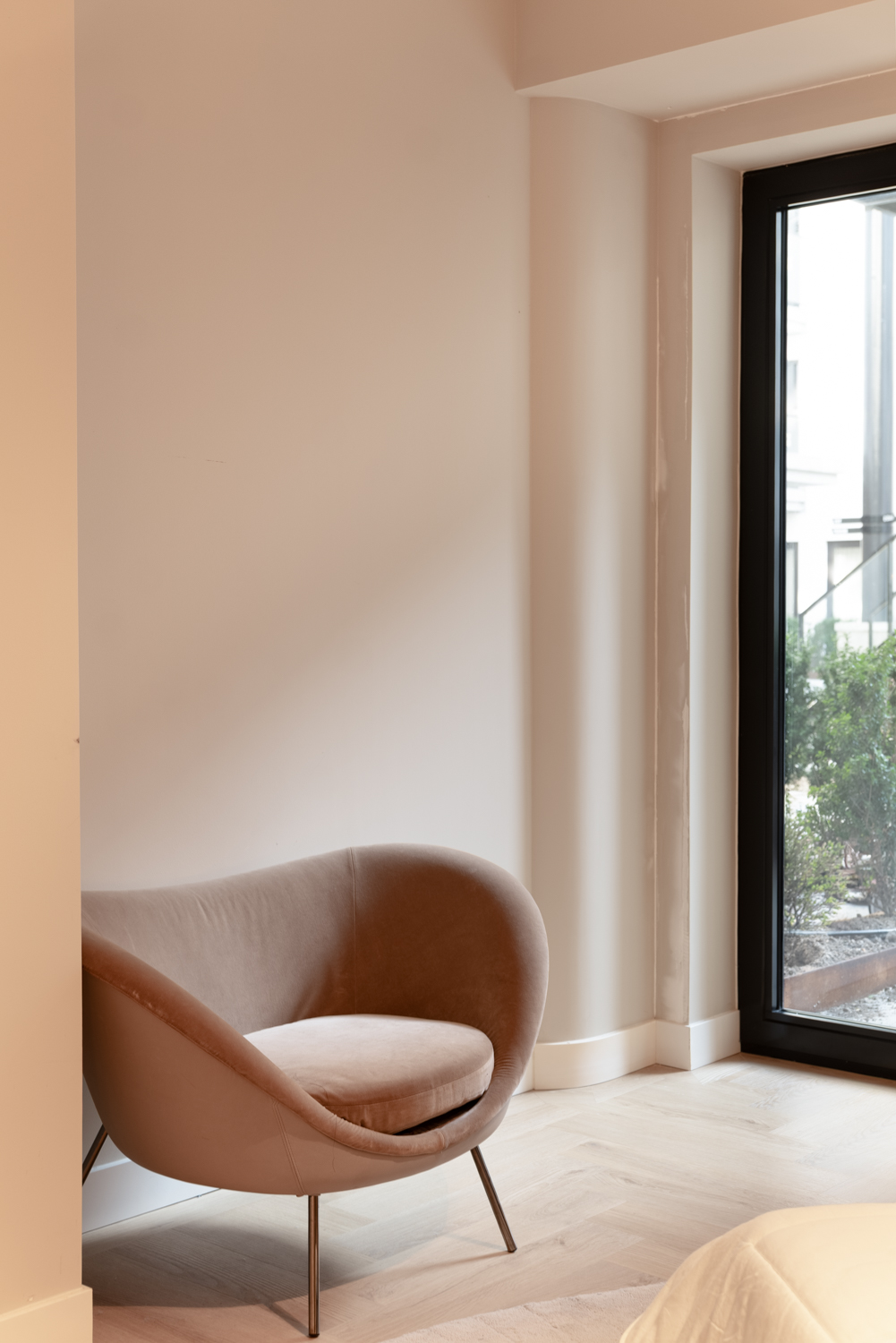 De enorme leefruimte van bijna 90 m² combineert een stijlvolle zithoek, eetkamer en moderne open keuken. Alles is strak gestuukt, voorzien van een prachtige PVC visgraatvloer, luxe raambekleding, maatwerkverlichting en hoogwaardig interieurdesign. De grote raampartijen zorgen voor een overvloed aan daglicht en een directe verbinding met de tuin.